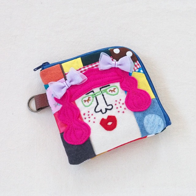 【sold out】41 顔刺繍の丸っとポーチ 41