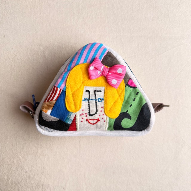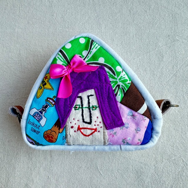 カオ刺繍のおにぎりポーチ