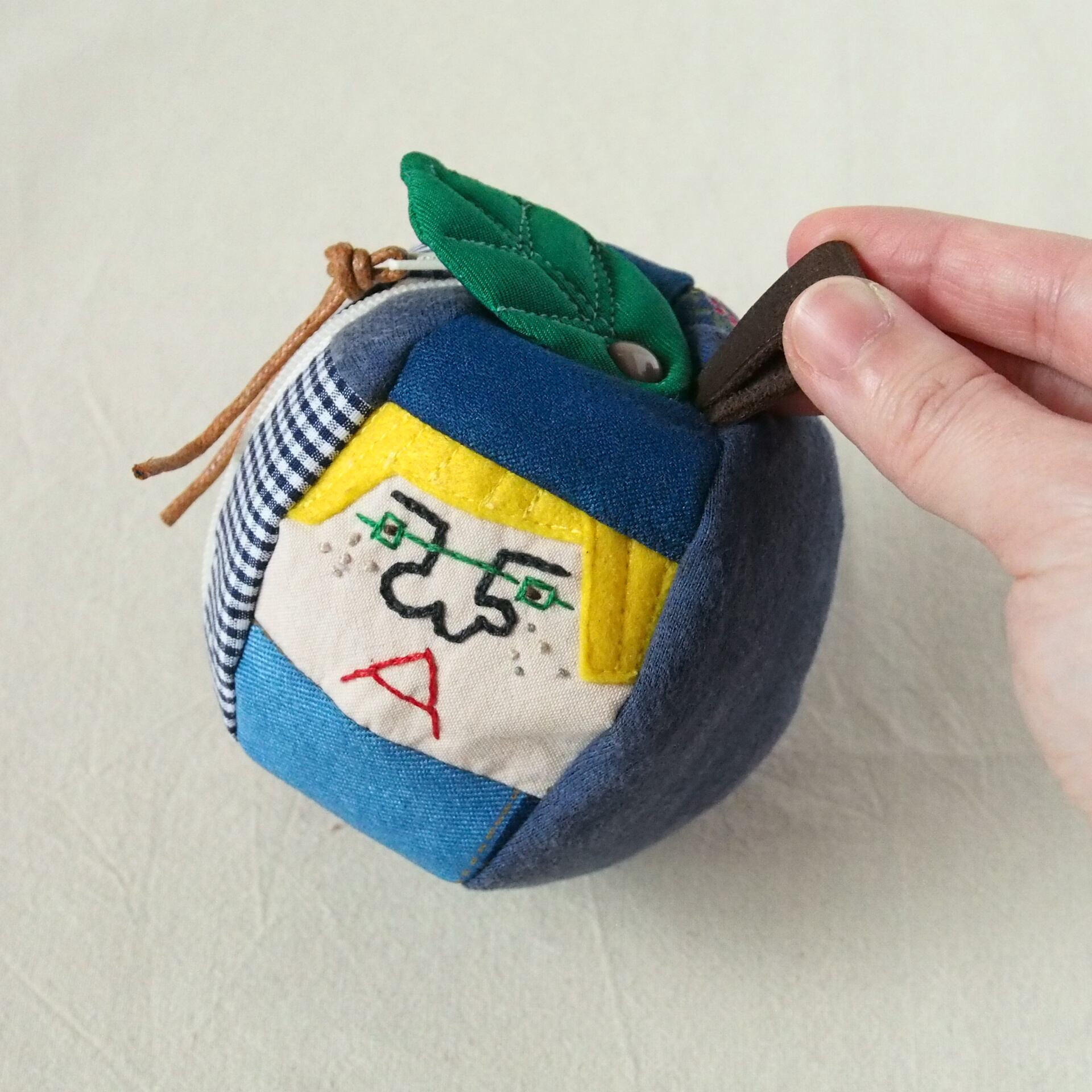 【売り切れ】カオ刺繍の青リンゴポーチ