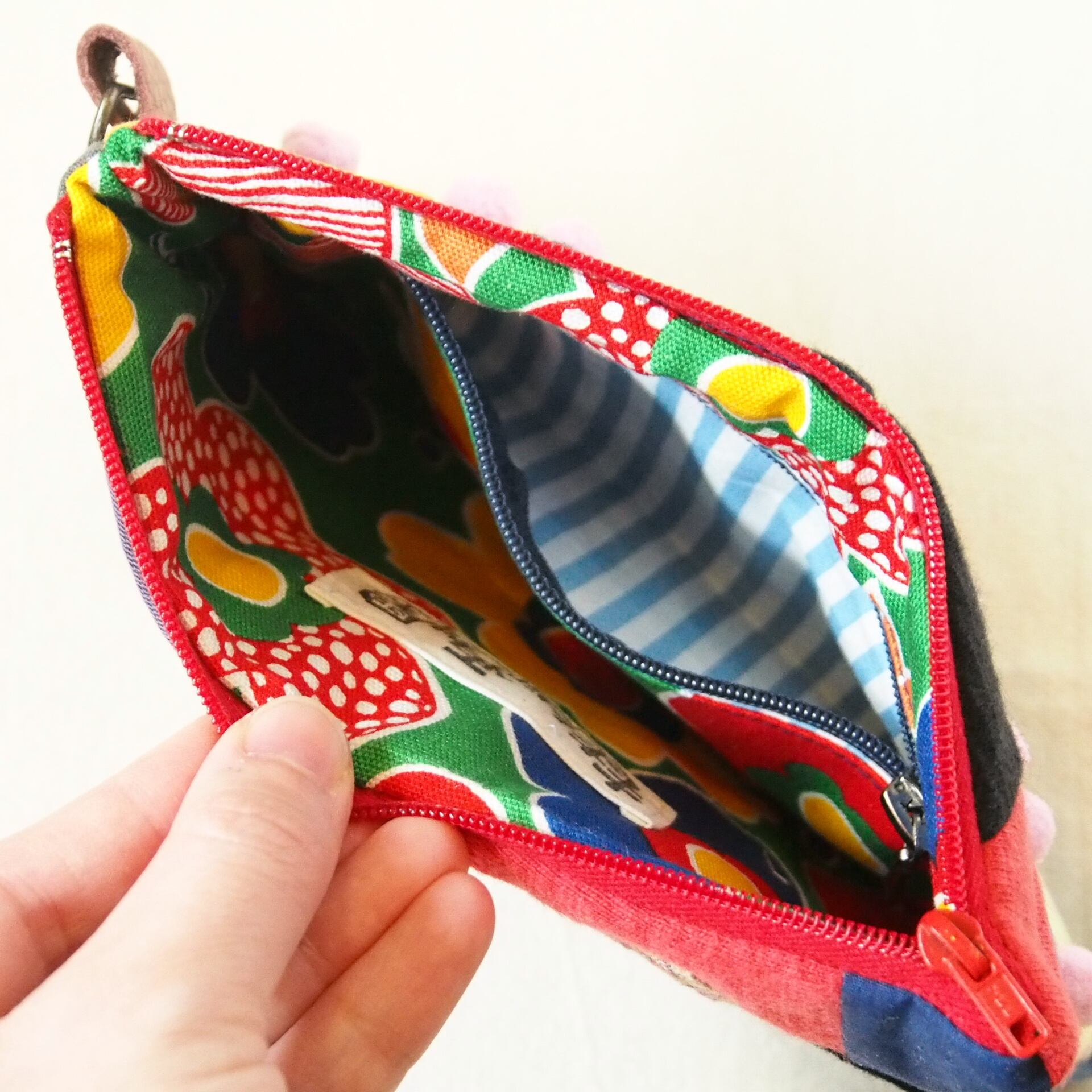 【売り切れ】カオ刺繍のリボンぺたんこポーチ