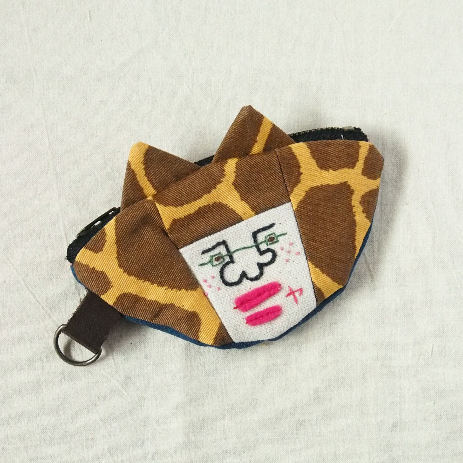 【売り切れ】お顔刺繡の猫耳小銭入れ(キリン)