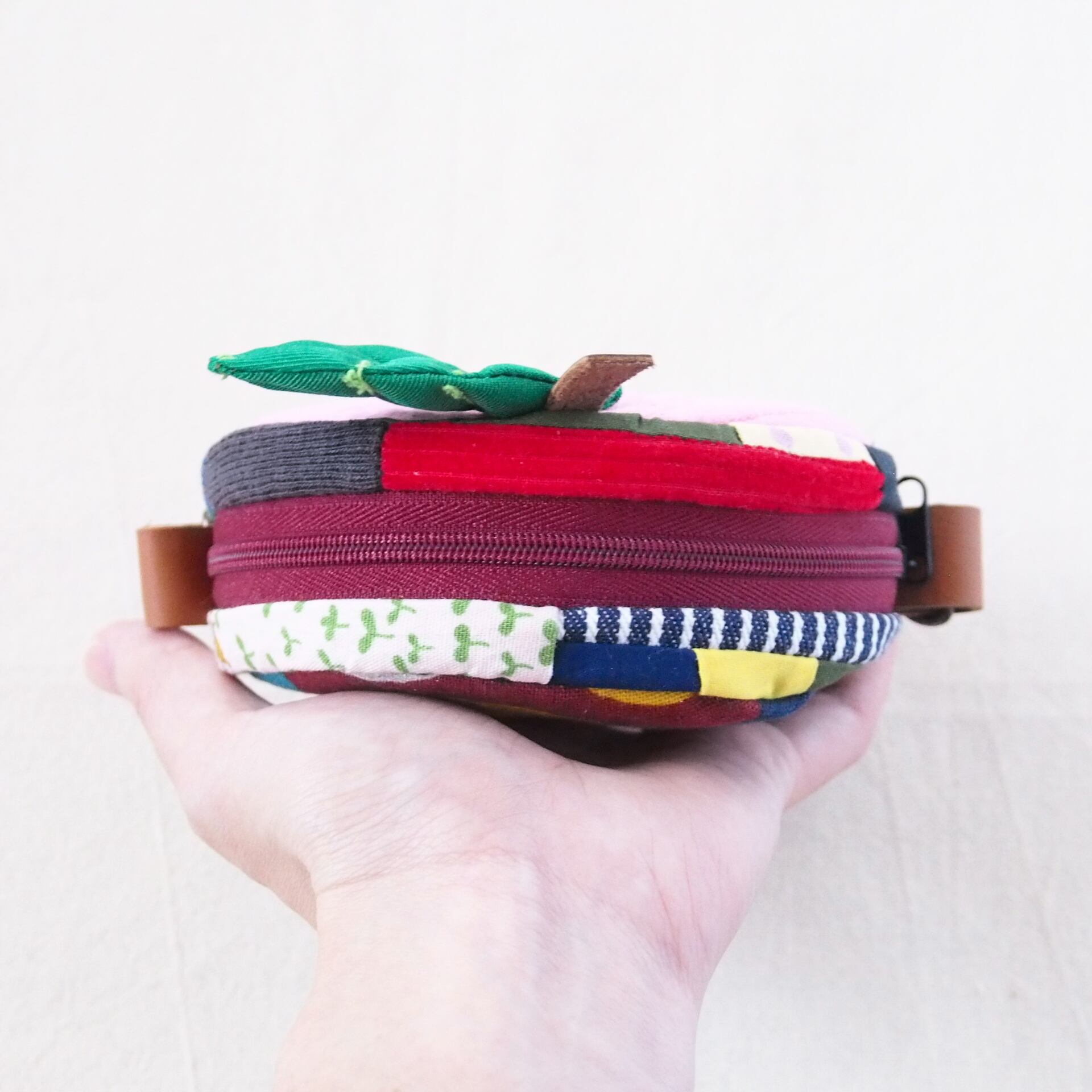 【sold out】1 顔刺繍の丸っとポーチ リンゴ 1