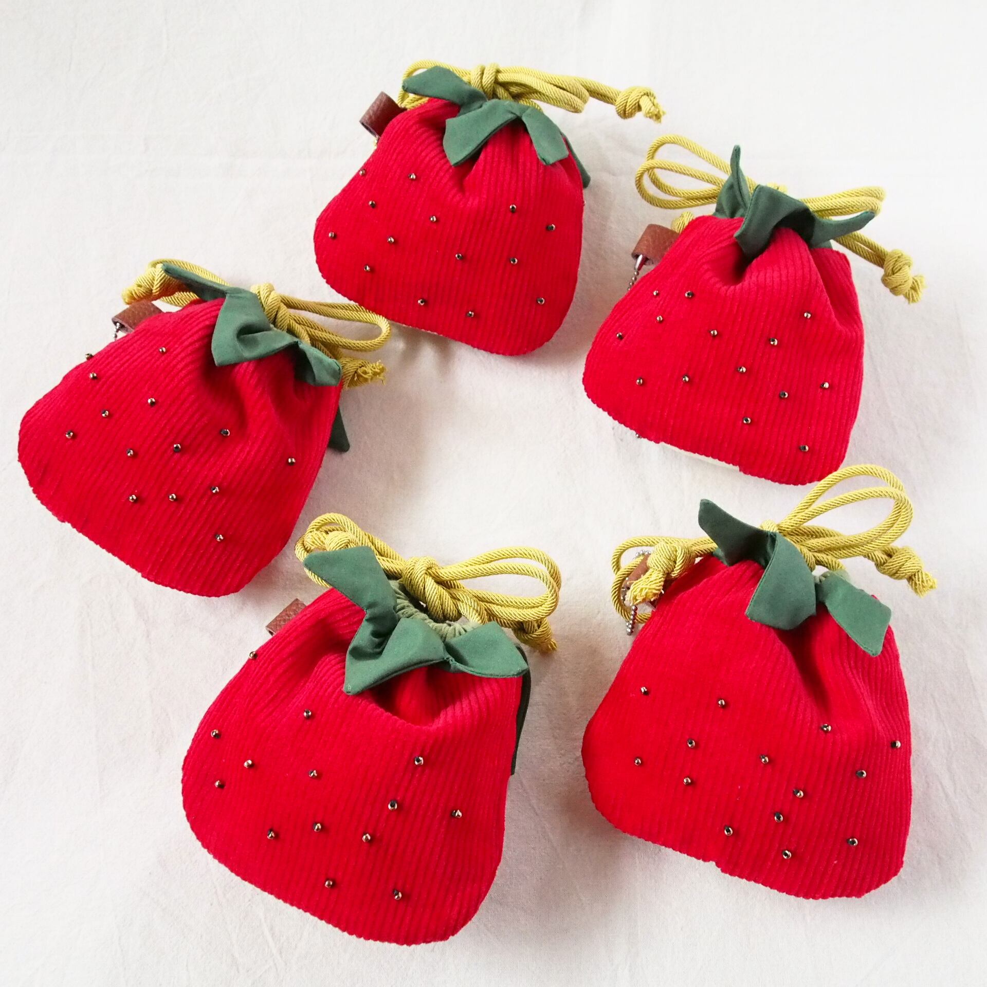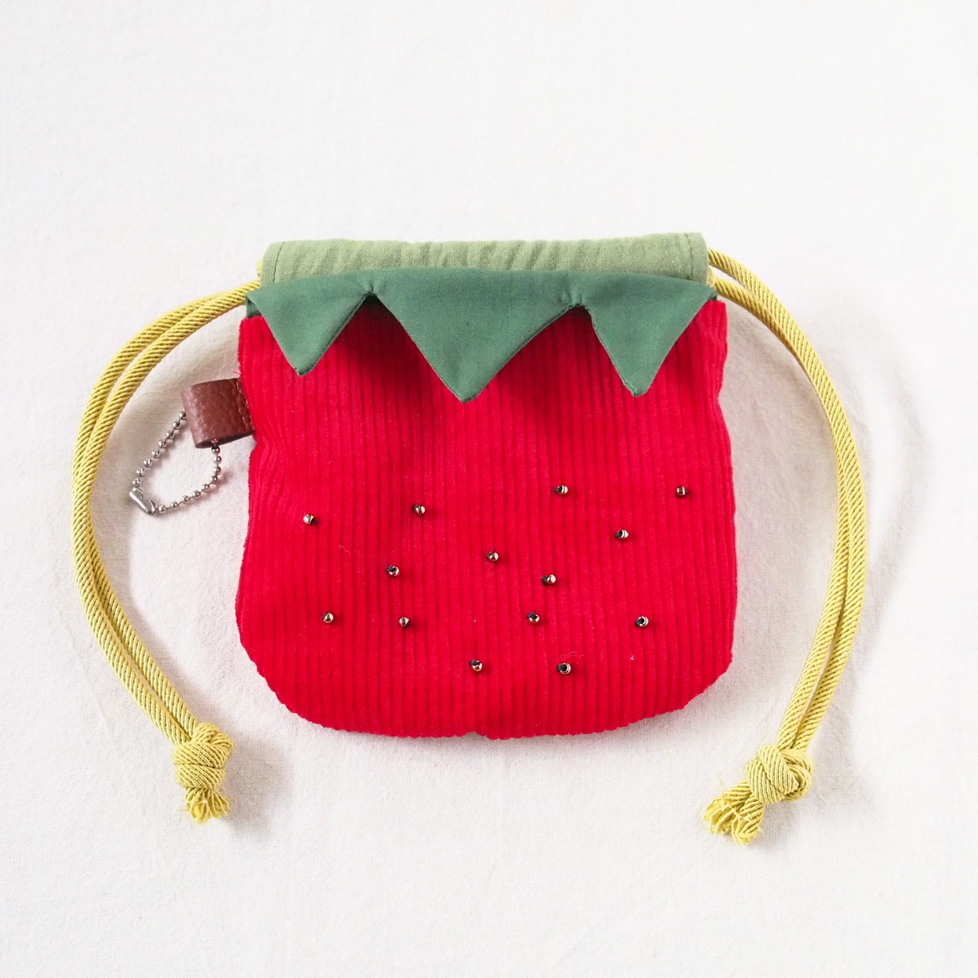 イチゴのデザインがとってもキュートな巾着袋。小物を入れてお出かけするのにピッタリです♪