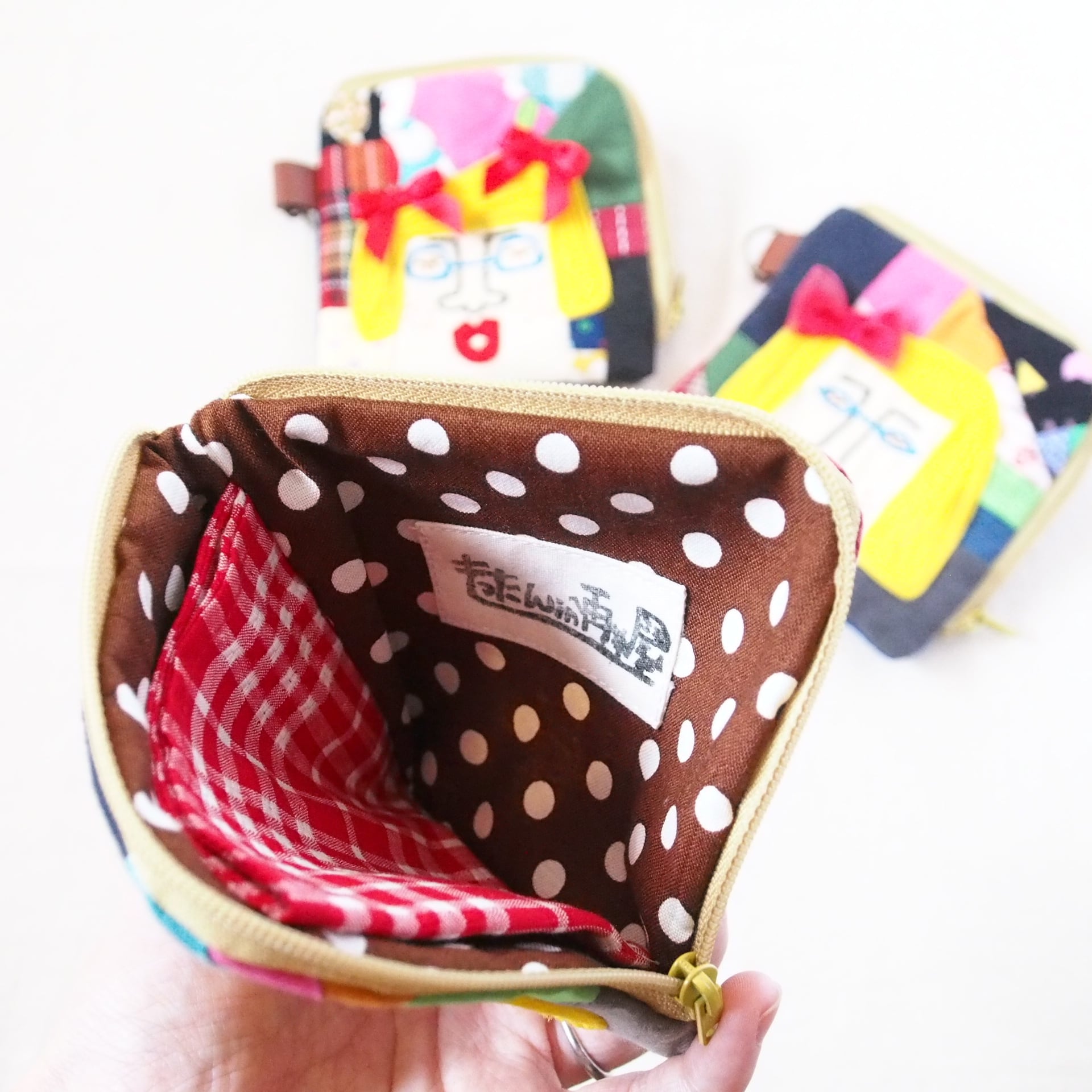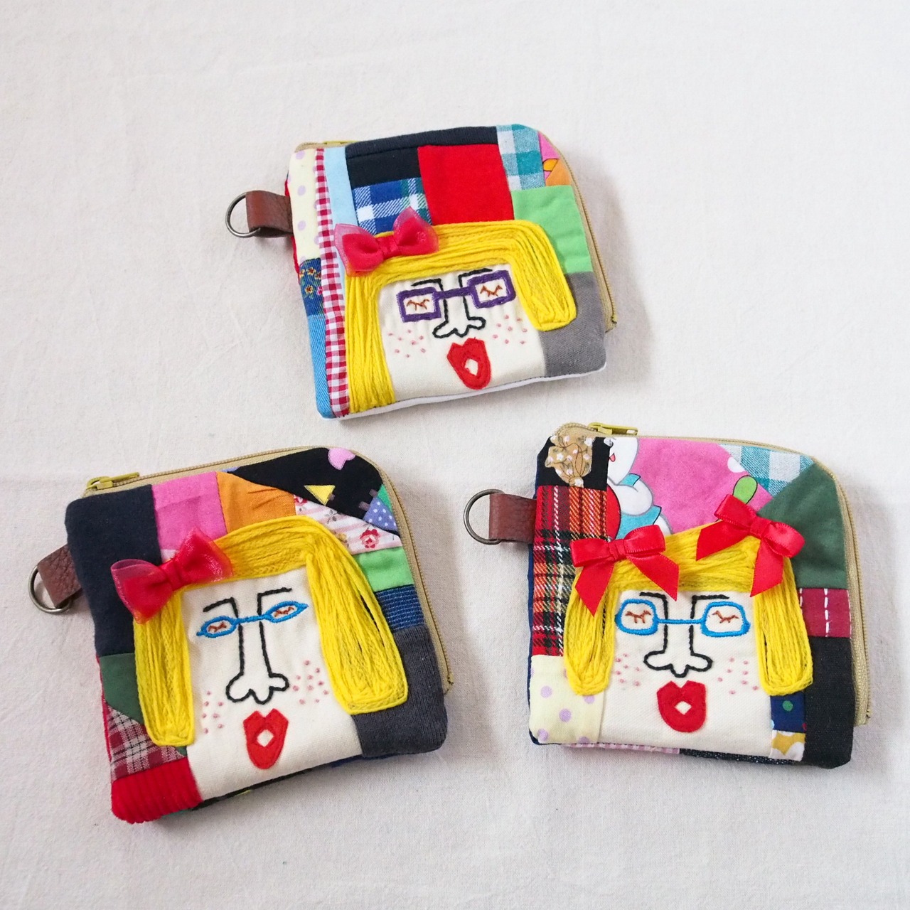 【sold out】29-31 カオ刺繡のL字ジップお財布ポーチ 29-31