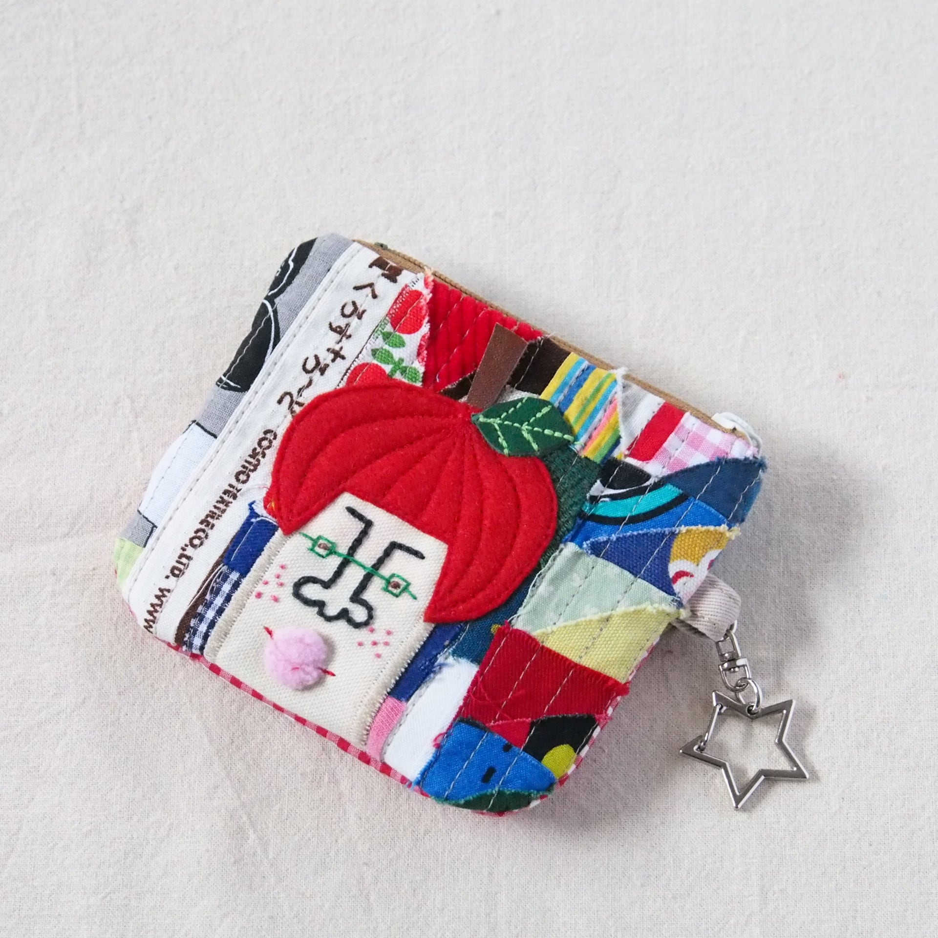 【sold out】22 カオ刺繍のダブルポケットポーチ ピンクリンゴ 22