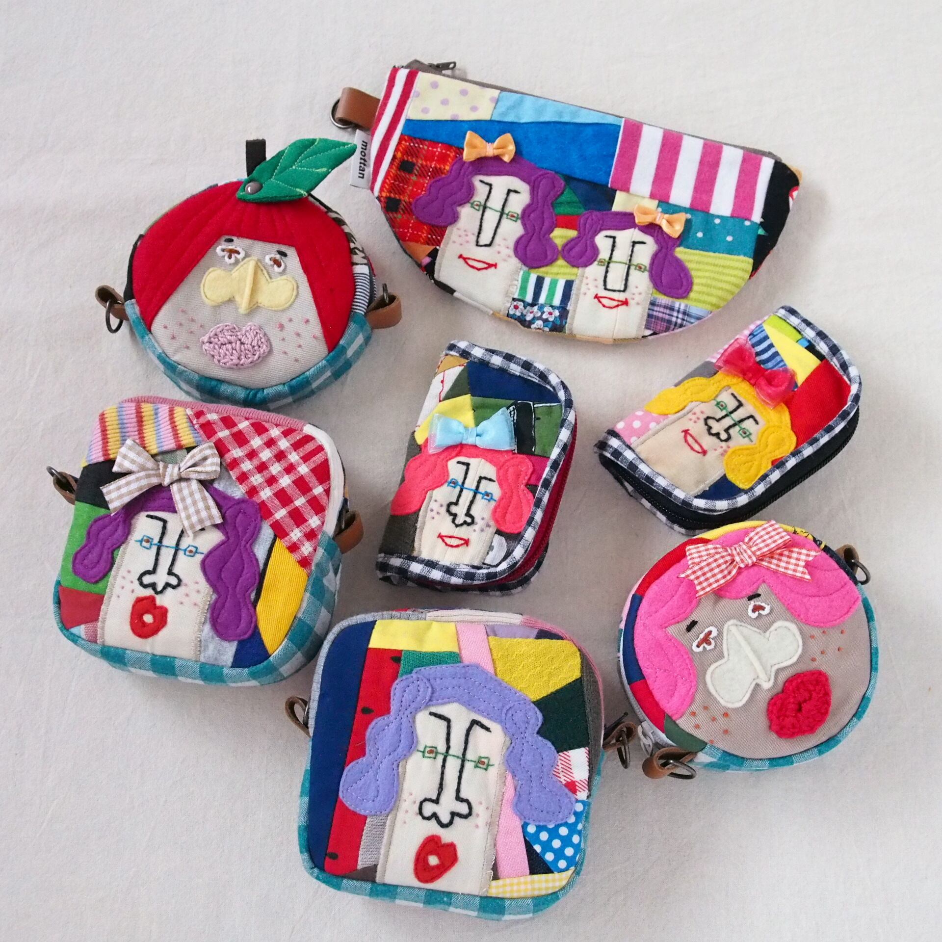 【sold out】カオ刺繍のしかく1-2 リンゴ11 半月ポーチ11 セット販売☆