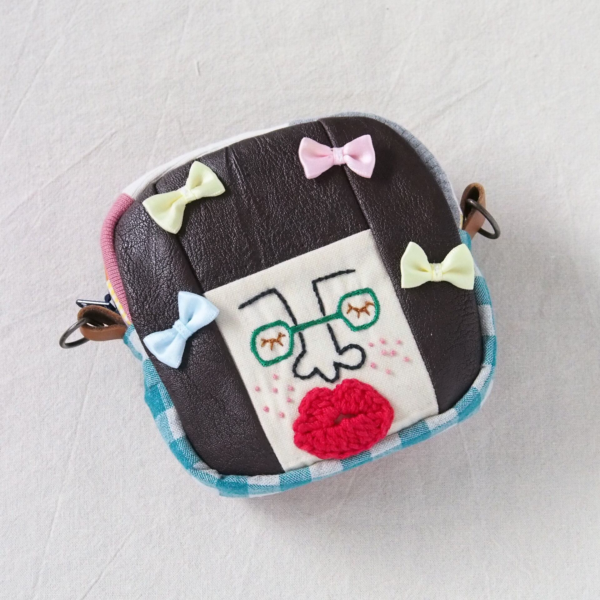 # カオ刺繍のポーチ リボン髪