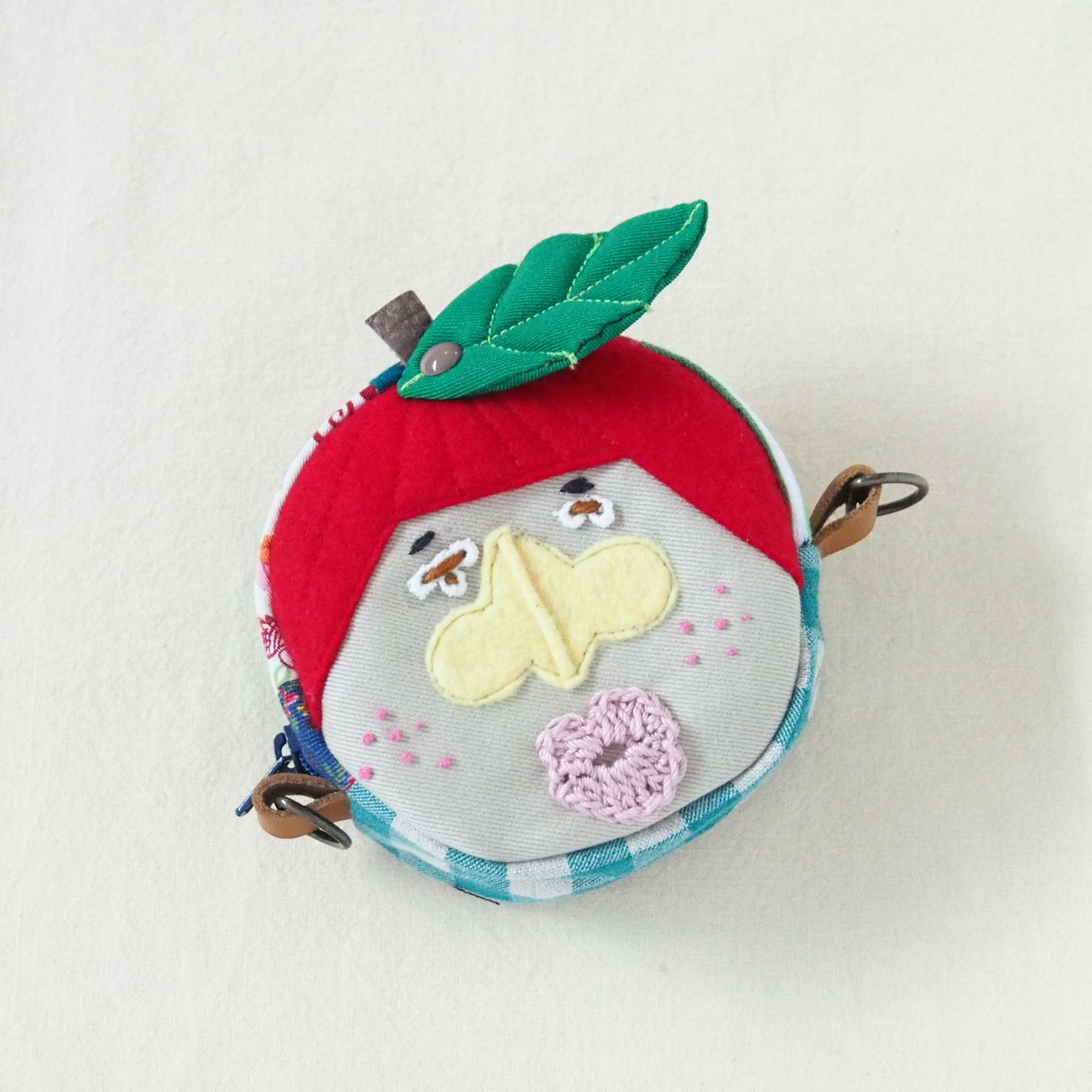【sold out】17 顔刺繍の丸っとポーチ リンゴ 17
