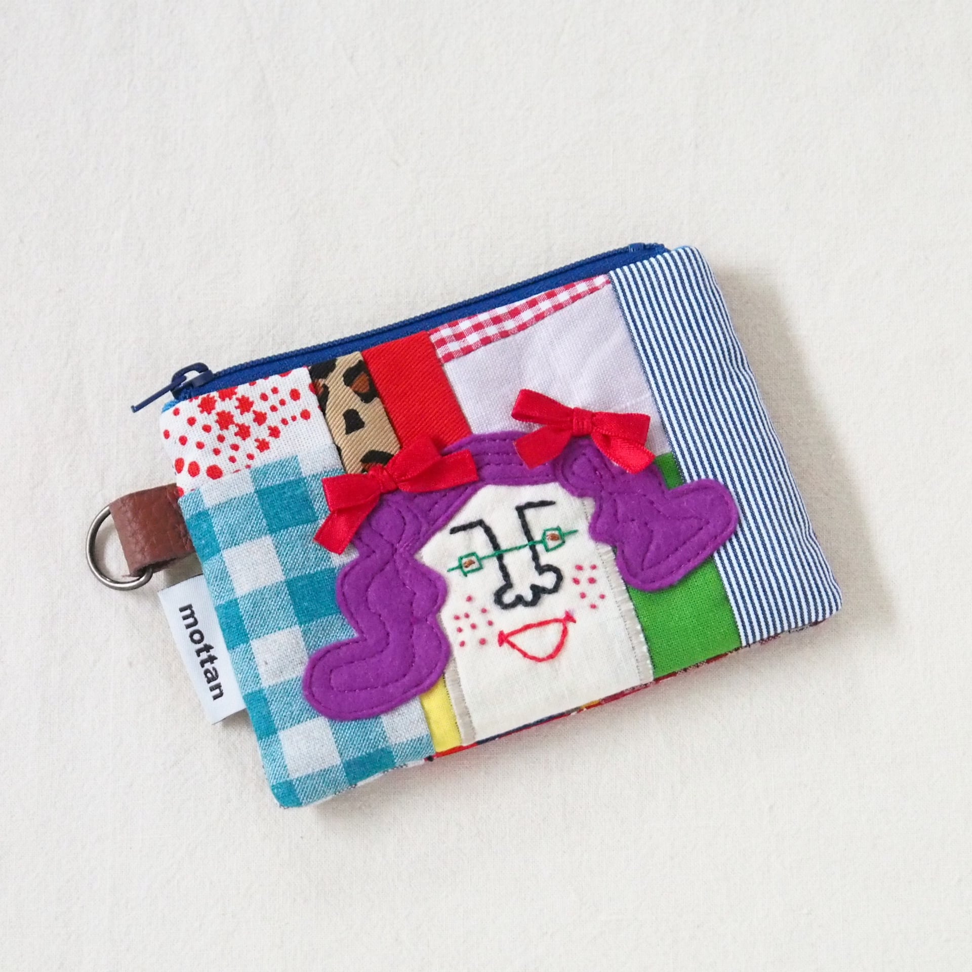 【sold out】カオ刺繍のヨコ型ジップパスケース