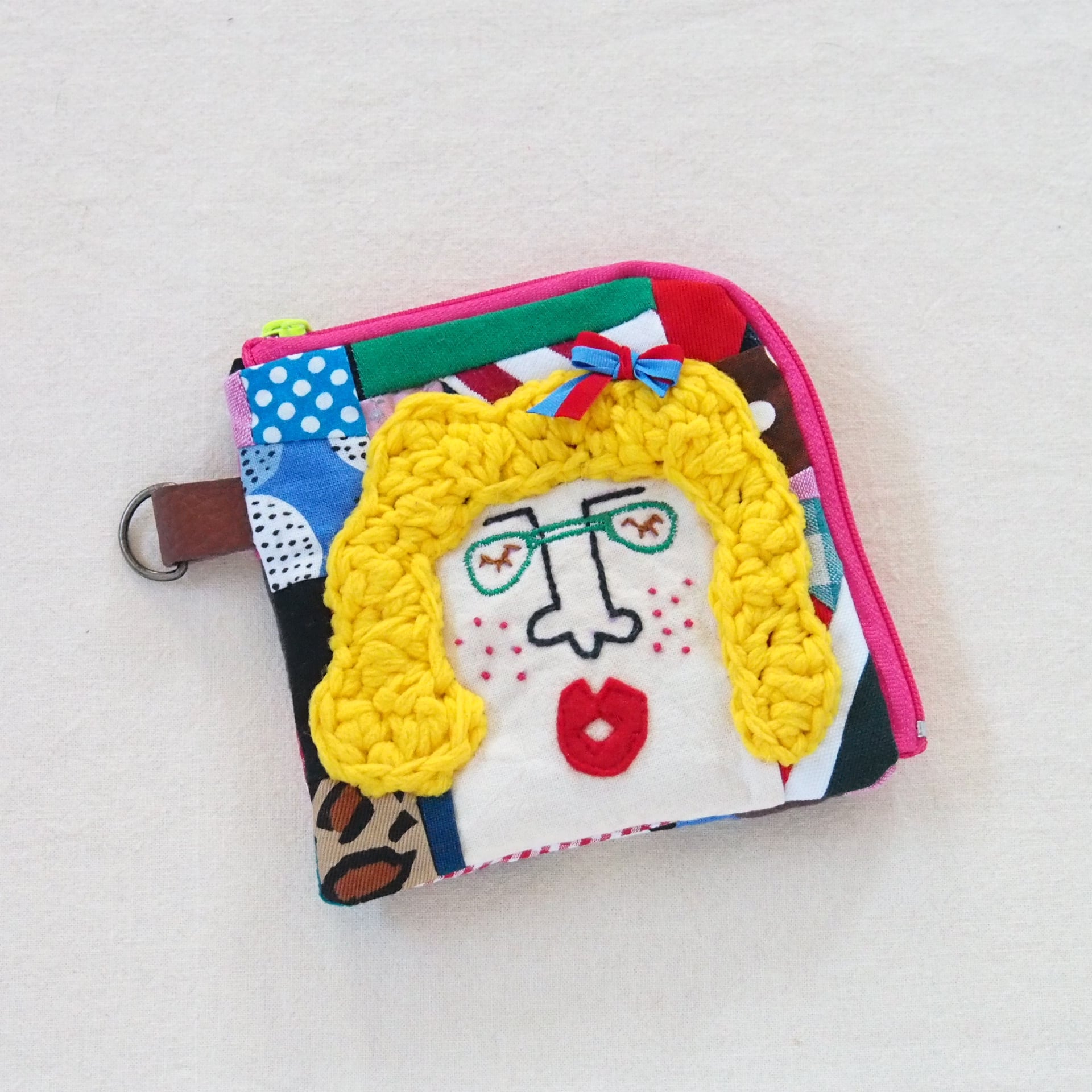 【sold out】93 カオ刺繡のL字ジップお財布ポーチ 93