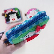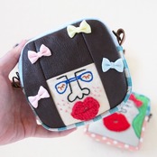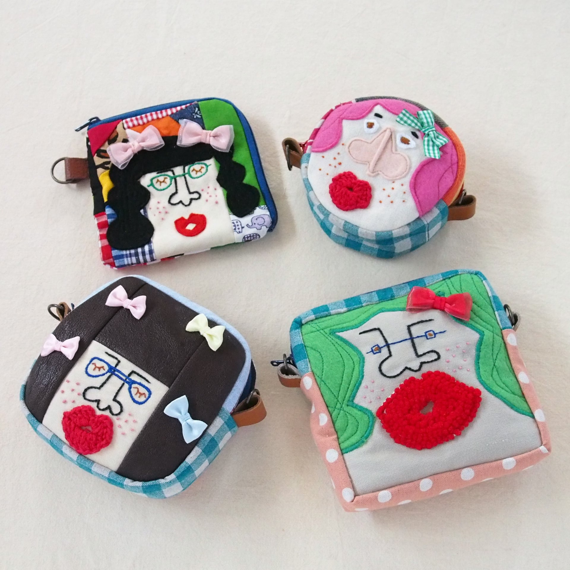【sold out】【セット販売】L字ジップお財布ポーチ96 丸っとポーチ39 レザー調リボン髪 7 カオ刺繍の四角ポーチ4