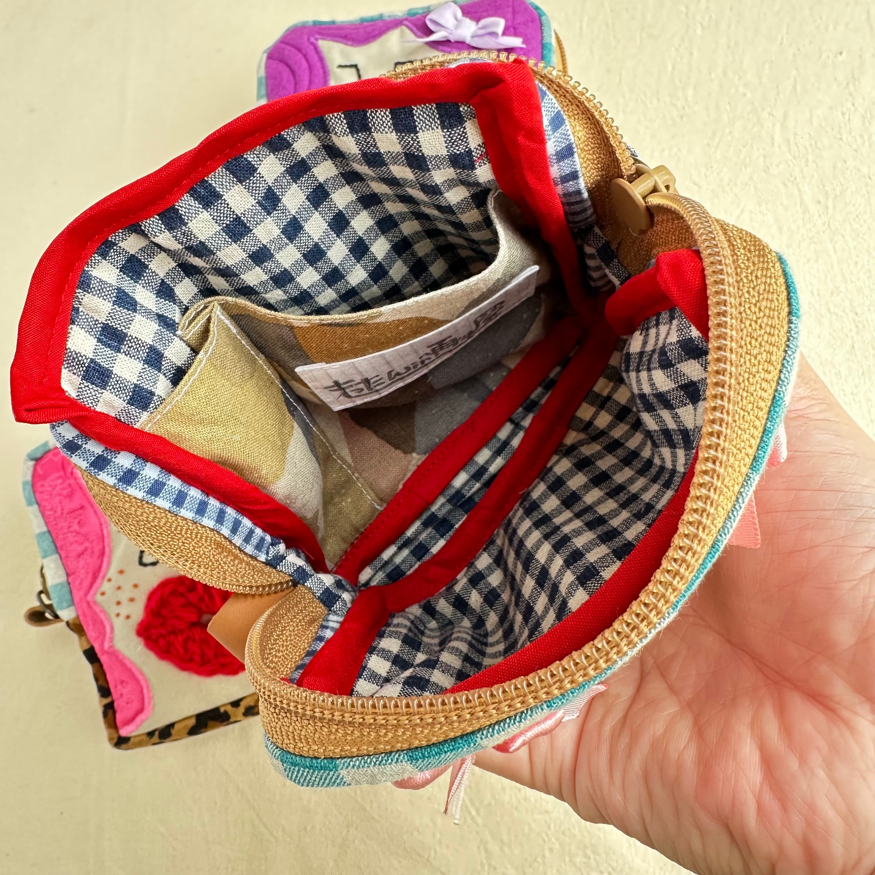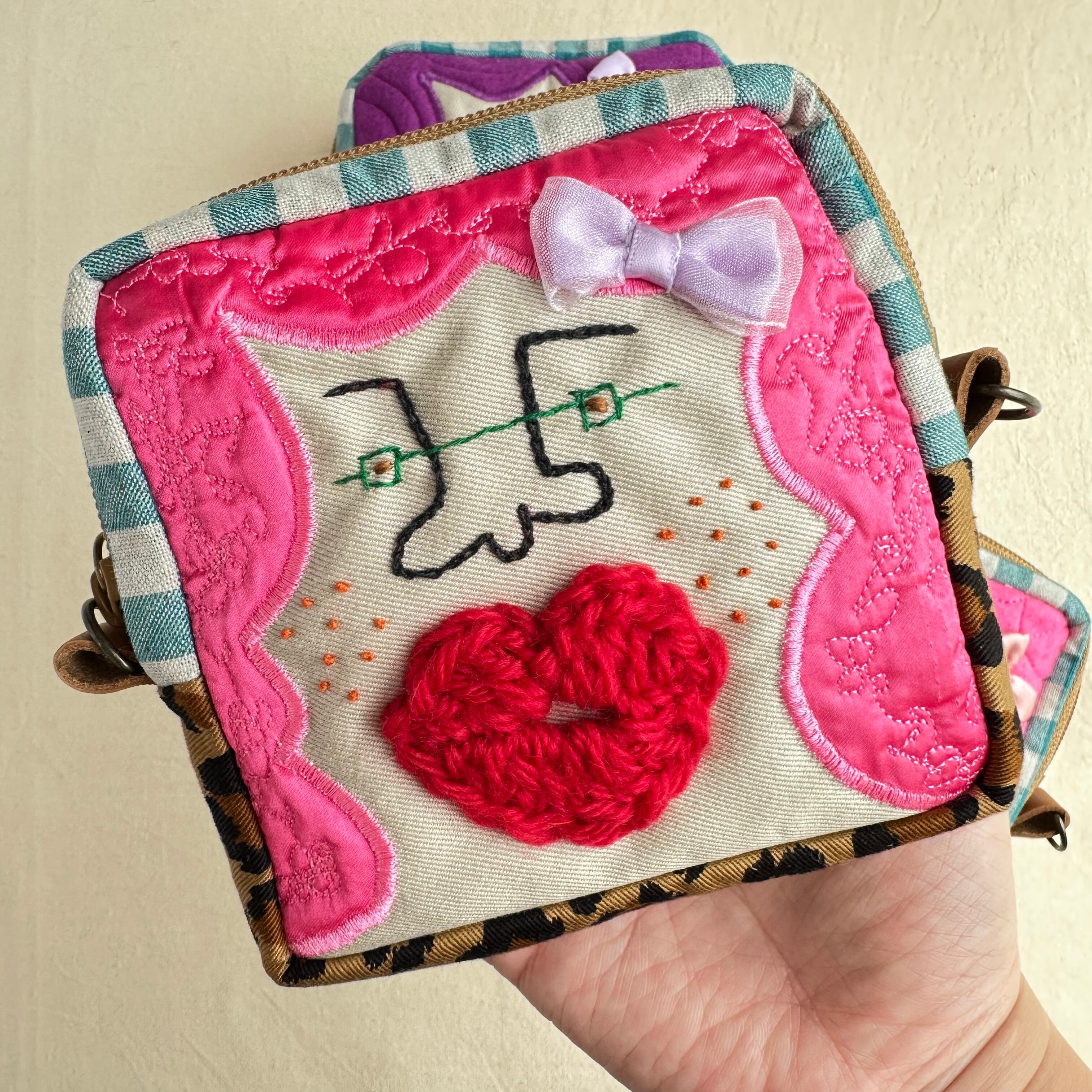 カオ刺繍の四角ポーチ