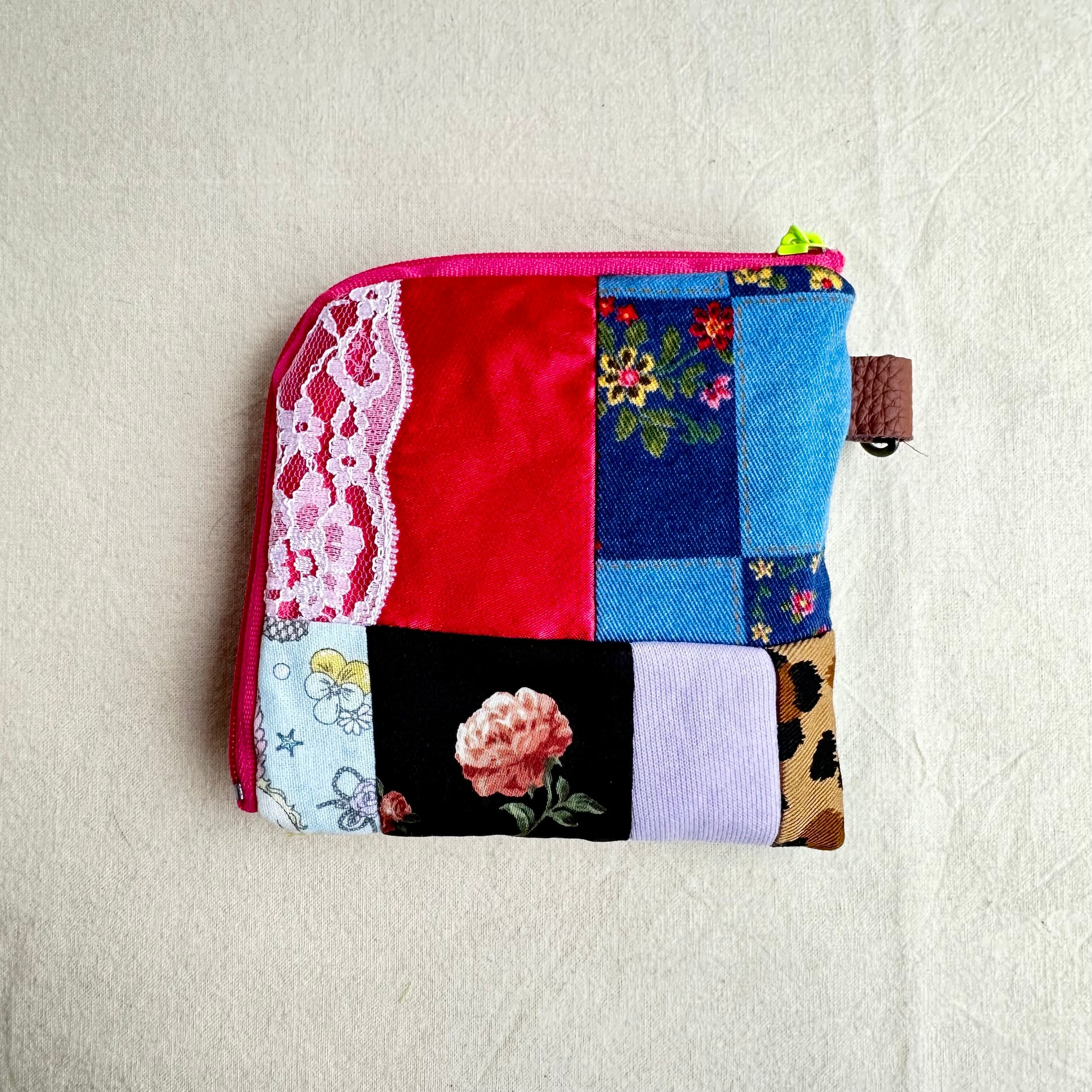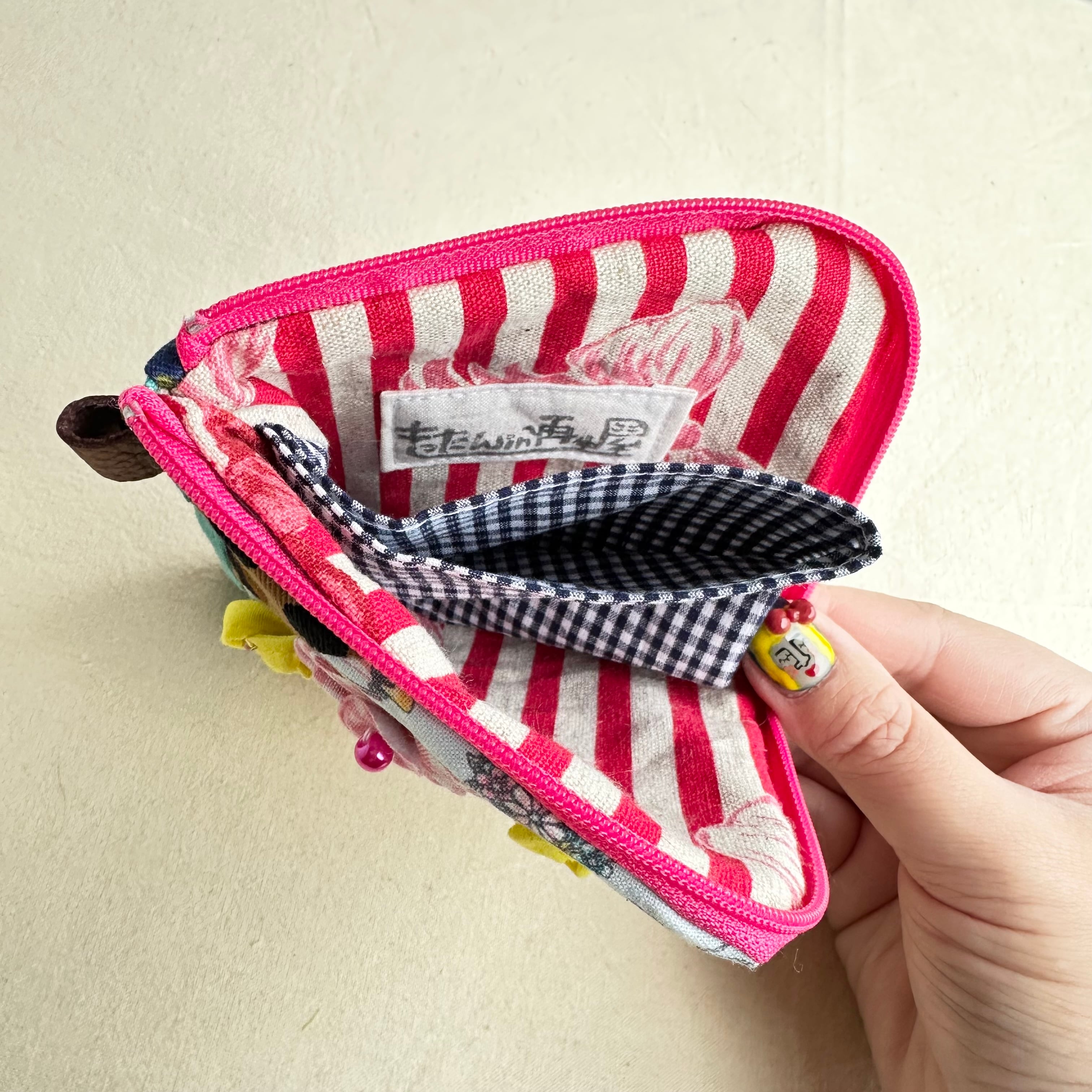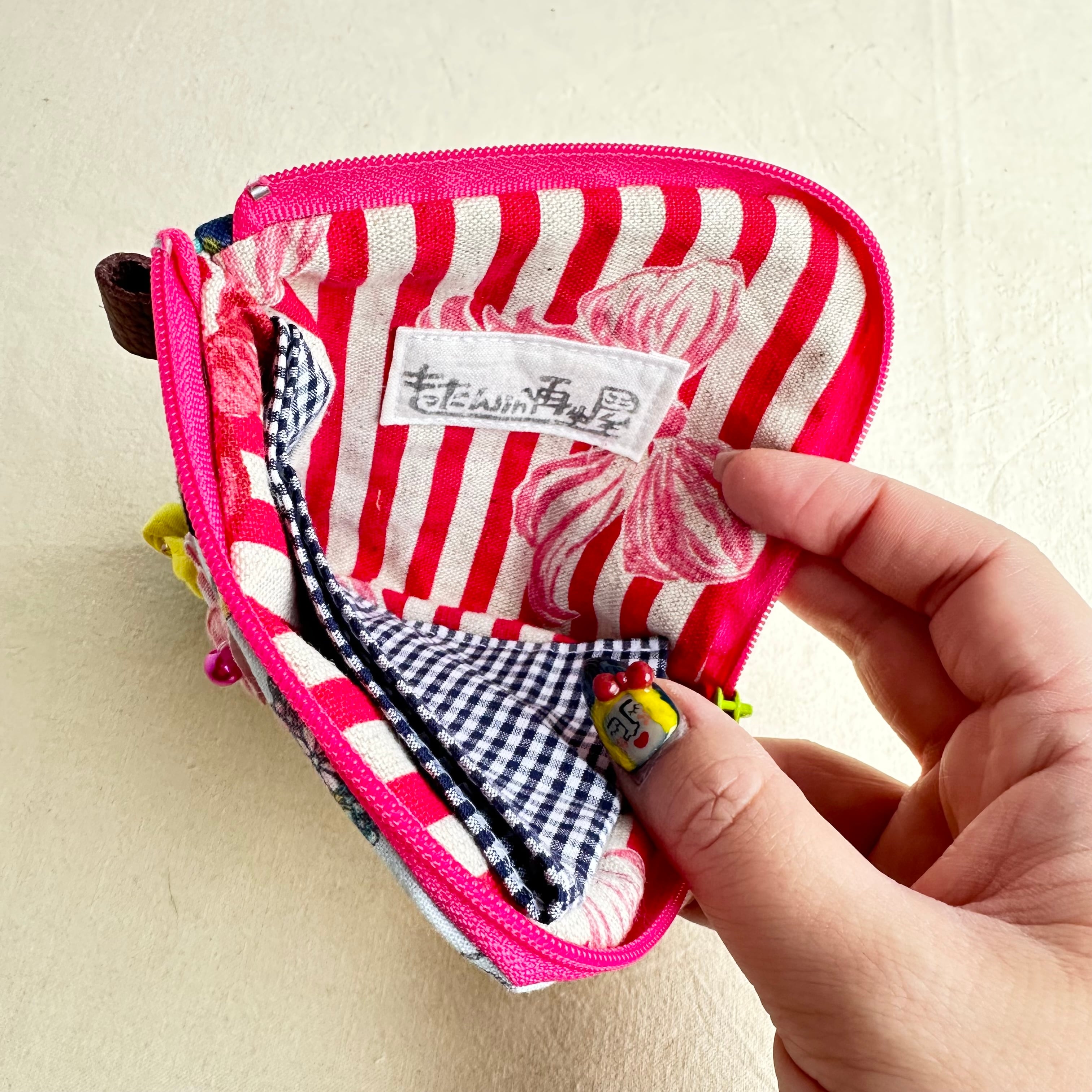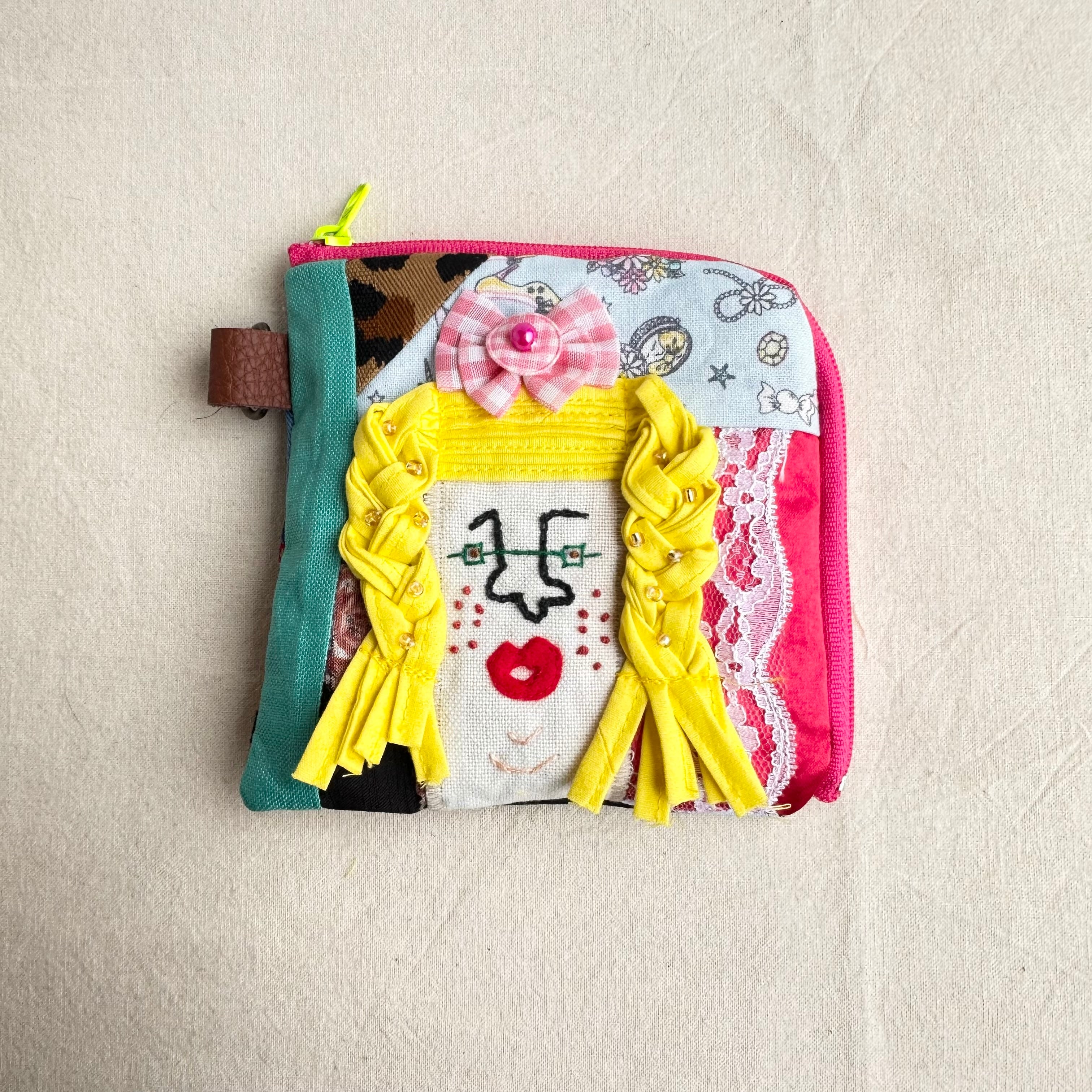 111 カオ刺繡のL字ジップお財布ポーチ 111