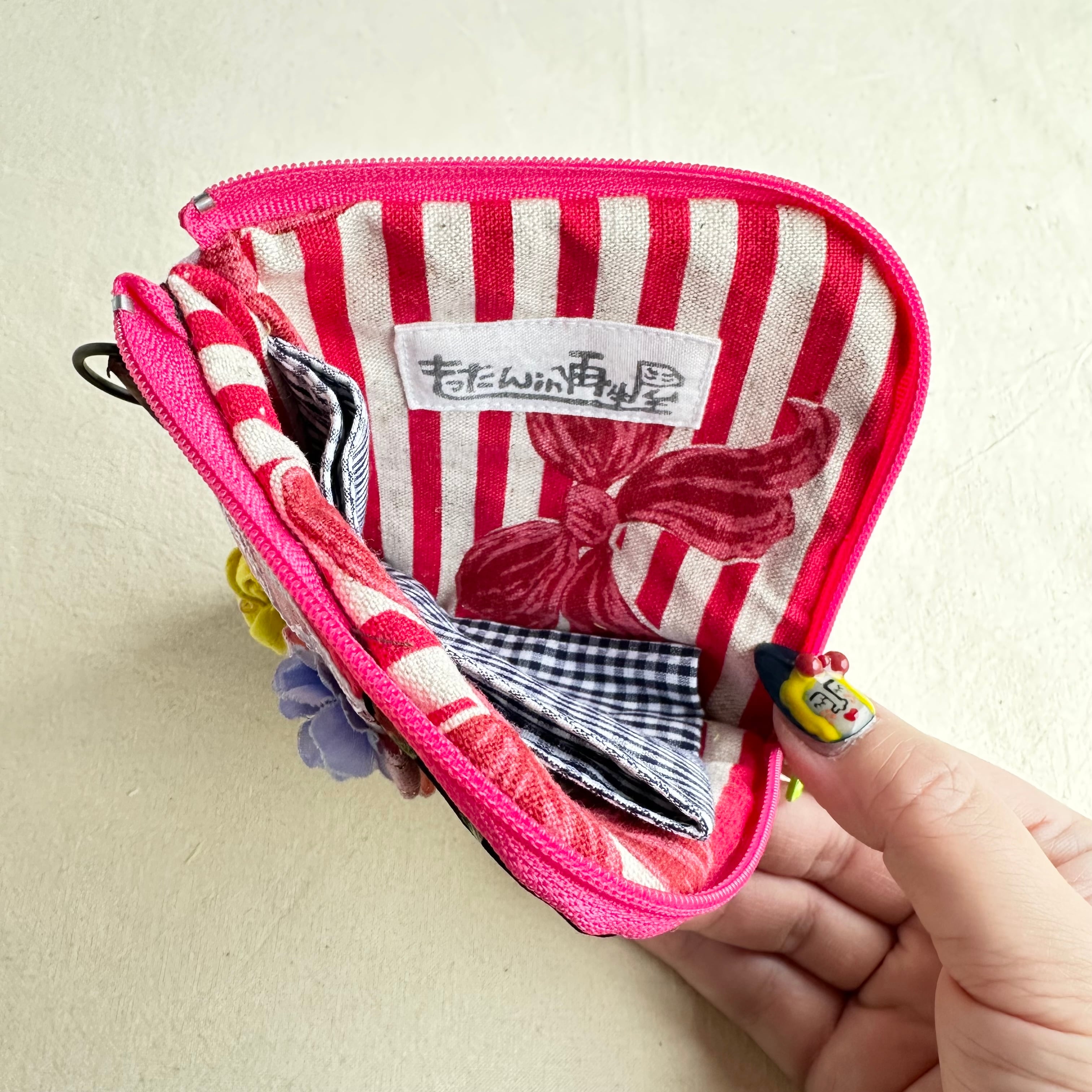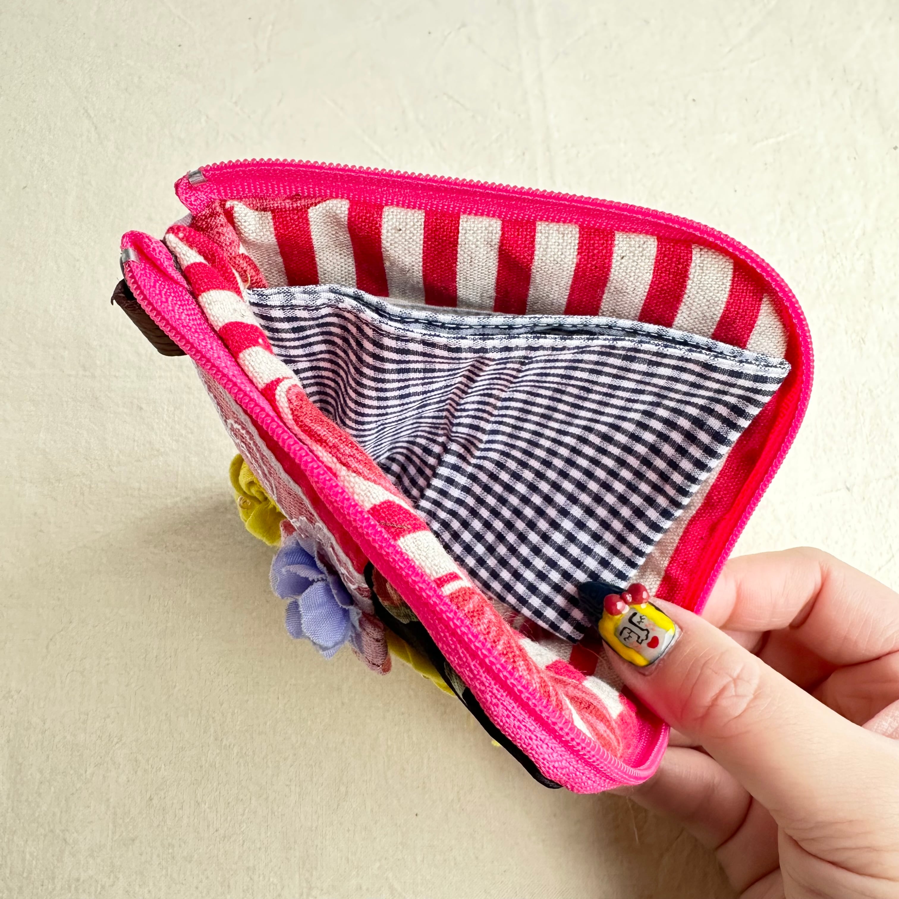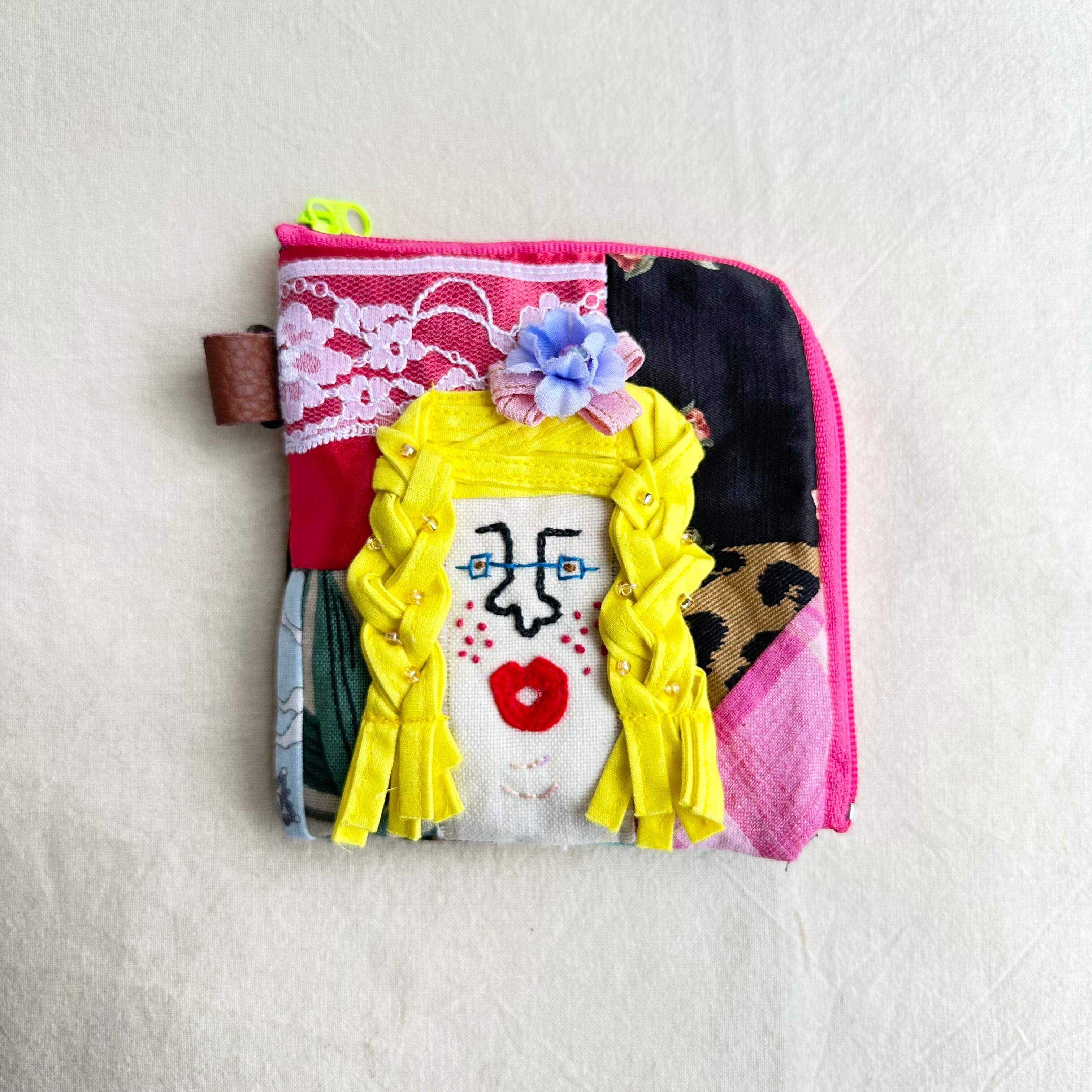 115 カオ刺繡のL字ジップお財布ポーチ 115