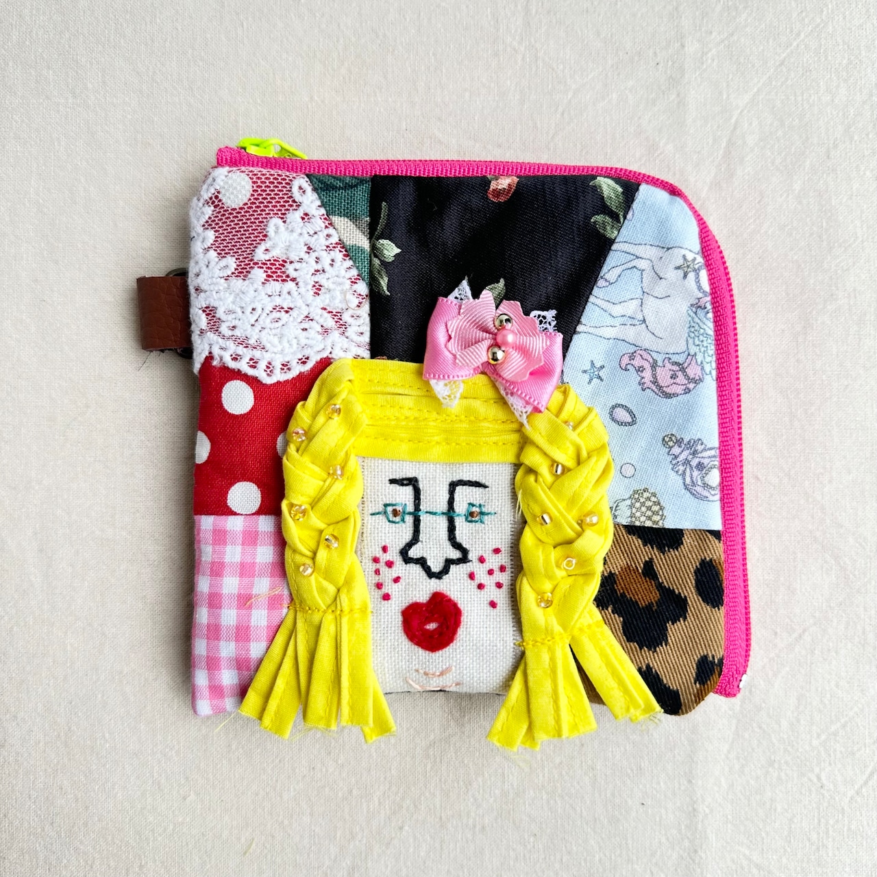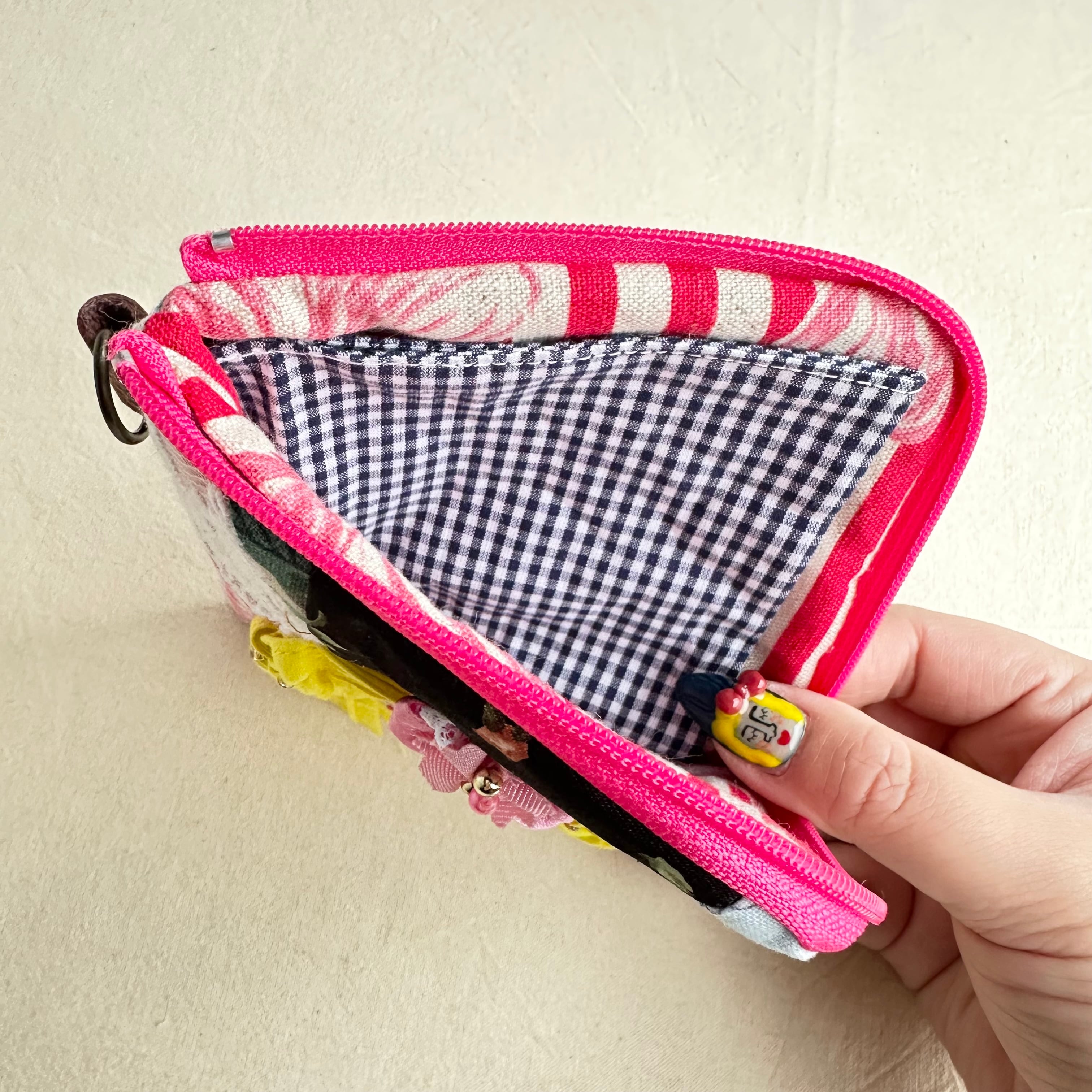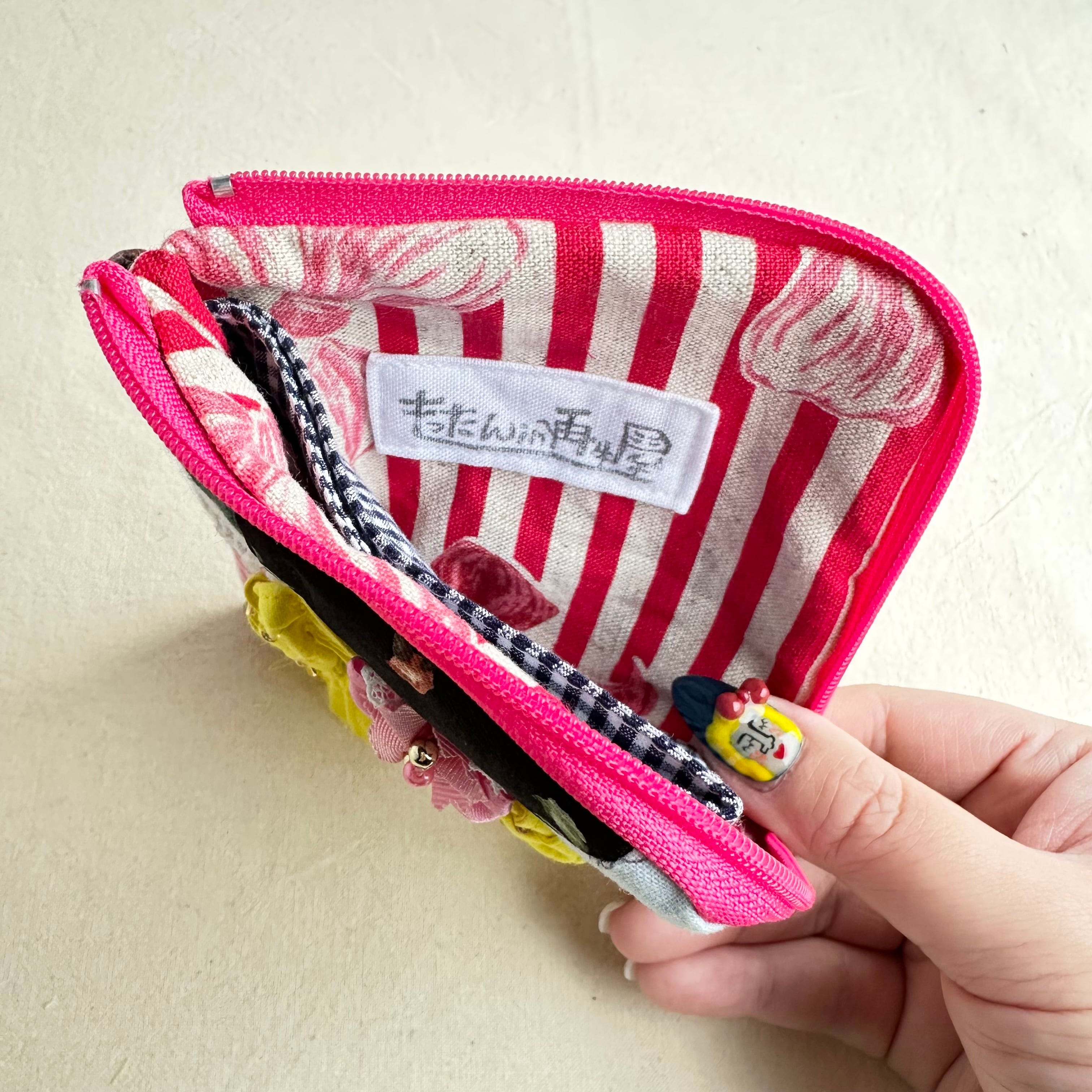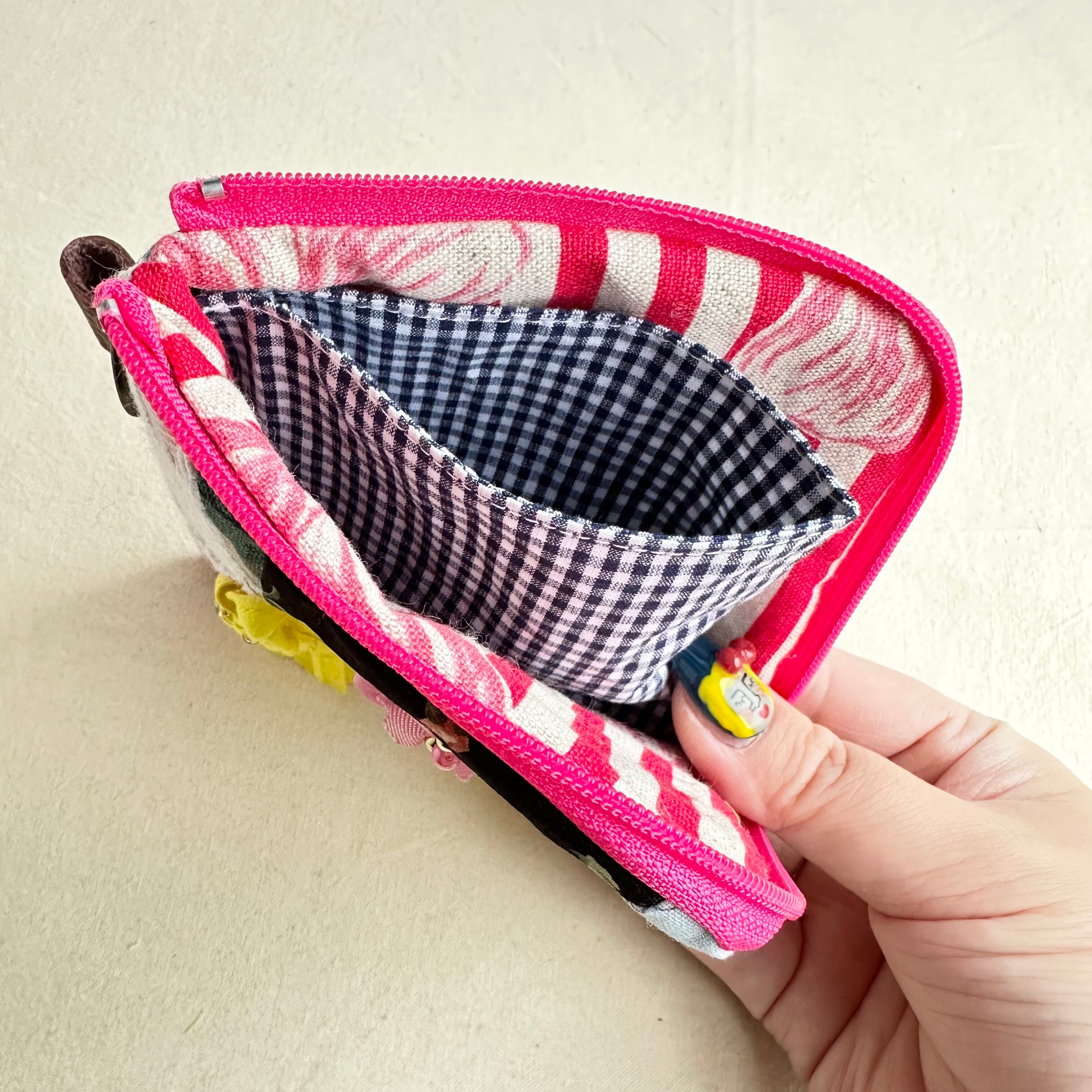 120 カオ刺繡のL字ジップお財布ポーチ 120