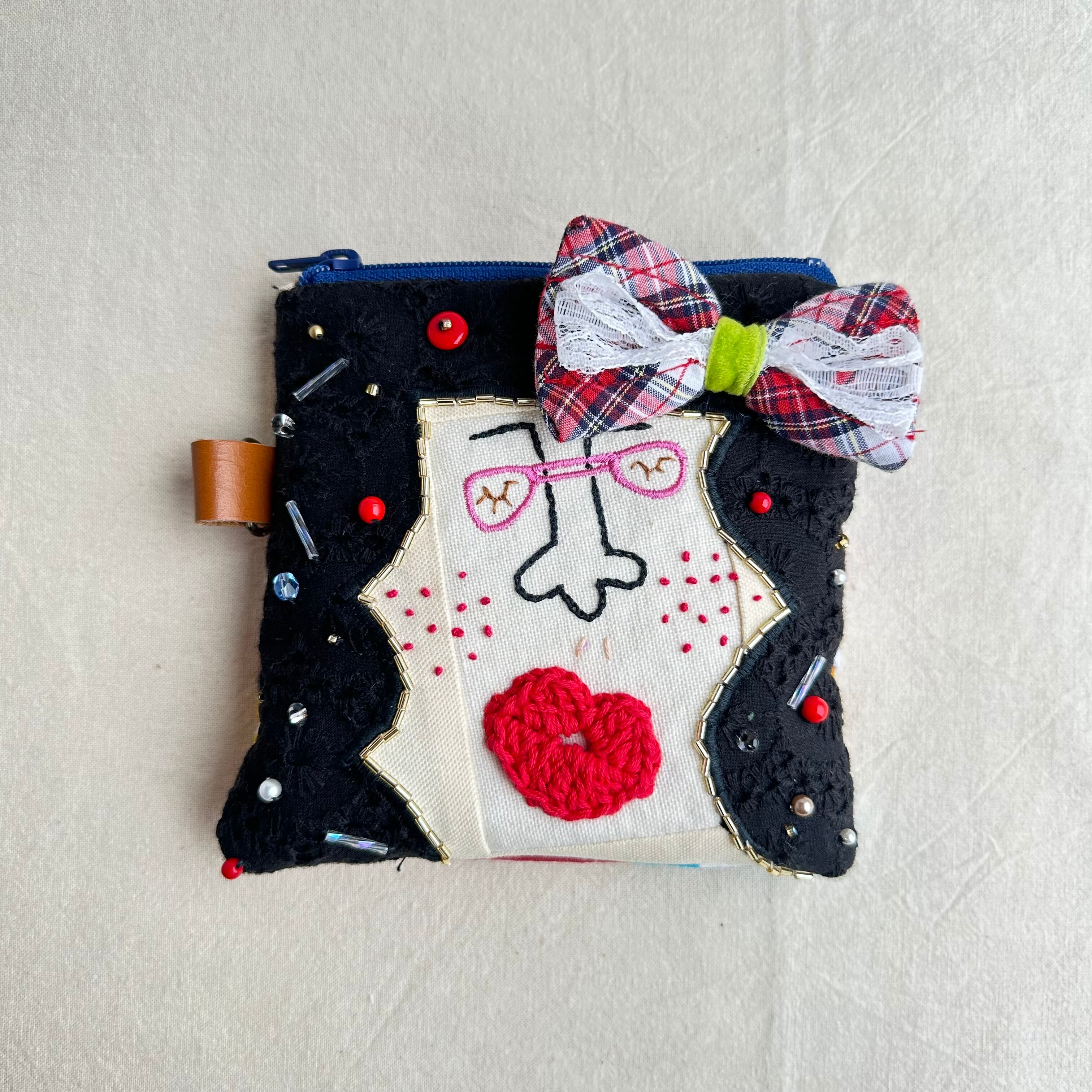 カオ刺繍のリボンぺたんこポーチは、個性的で魅力あふれるデザインが特徴で、様々なシーンで活躍します。ぜひこのキュートなアイテムをあなたのコレクションに加え、毎日をもっと楽しくしてみてはいかがでしょうか?