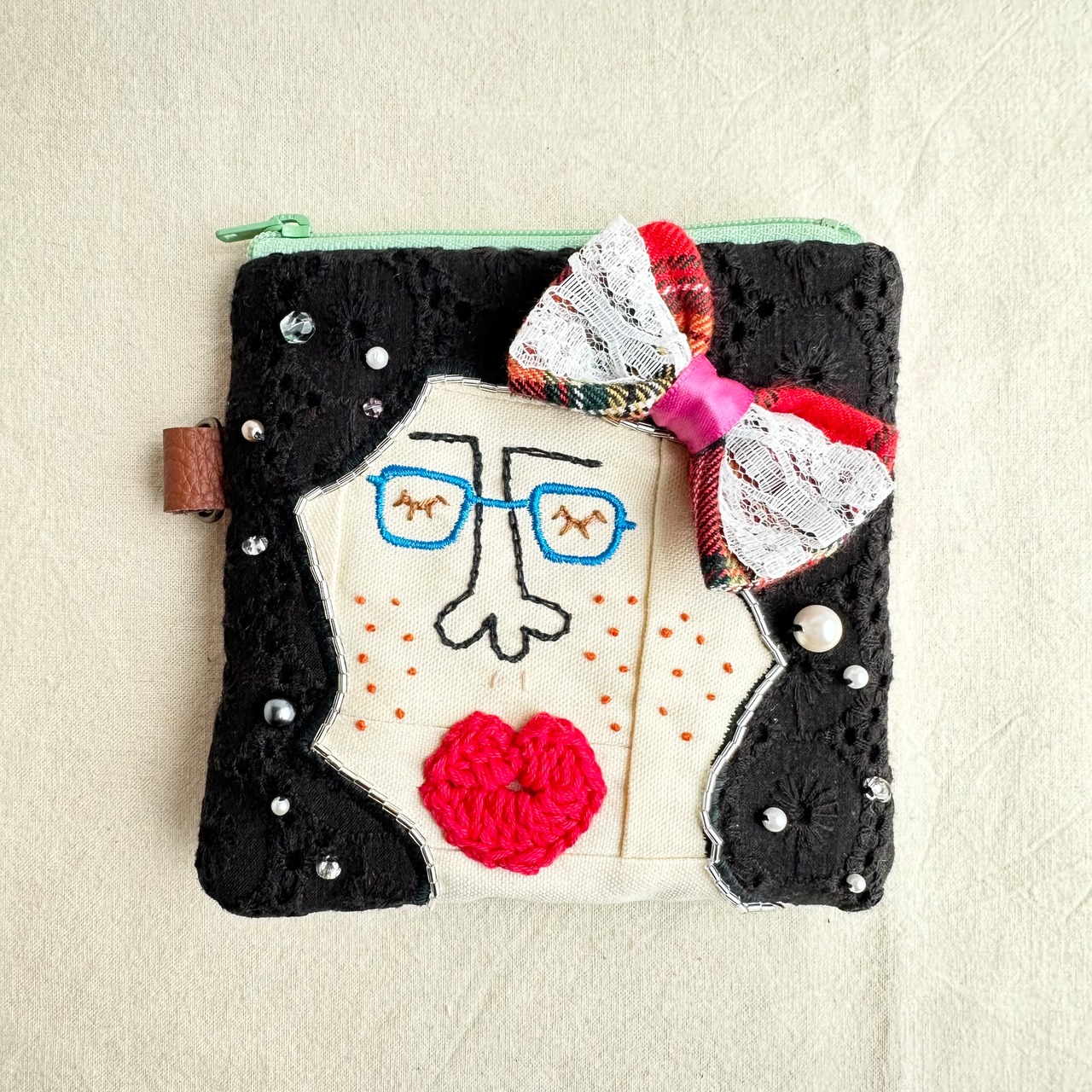 5 カオ刺繍の真四角ぺたんこポーチ 5