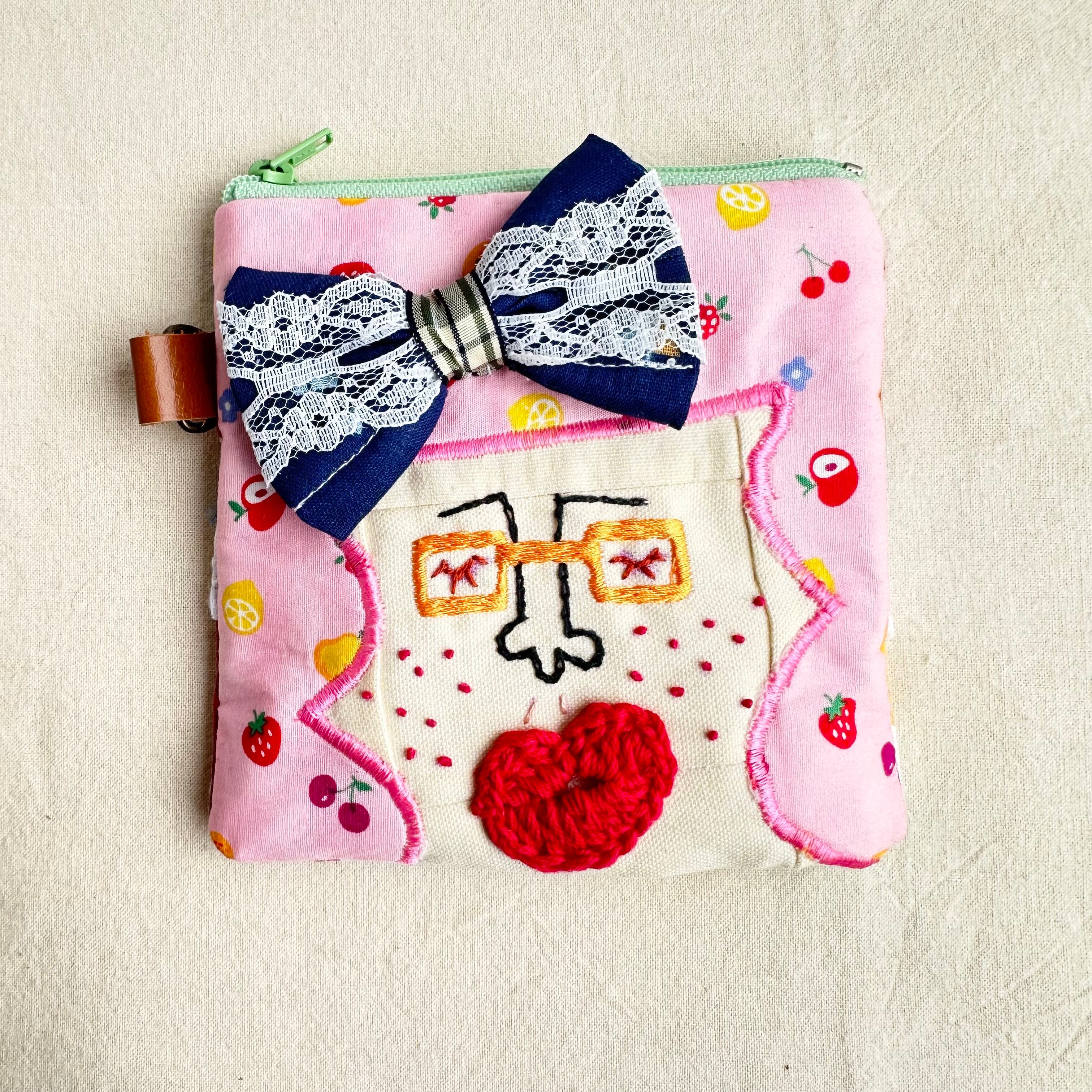 カオ刺繍のリボンぺたんこポーチは、個性的で魅力あふれるデザインが特徴で、様々なシーンで活躍します。ぜひこのキュートなアイテムをあなたのコレクションに加え、毎日をもっと楽しくしてみてはいかがでしょうか?