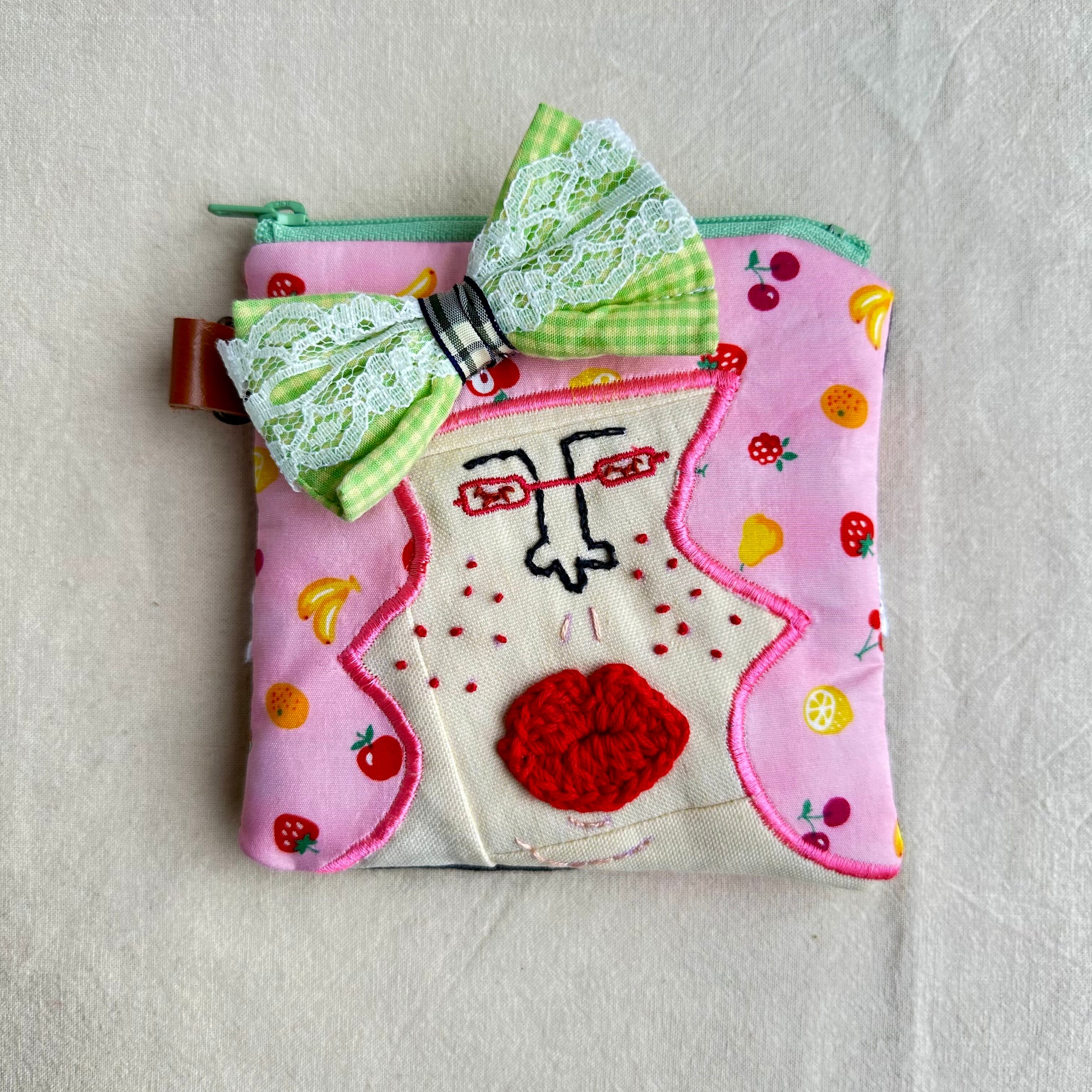 11 カオ刺繍の真四角ぺたんこポーチ 11