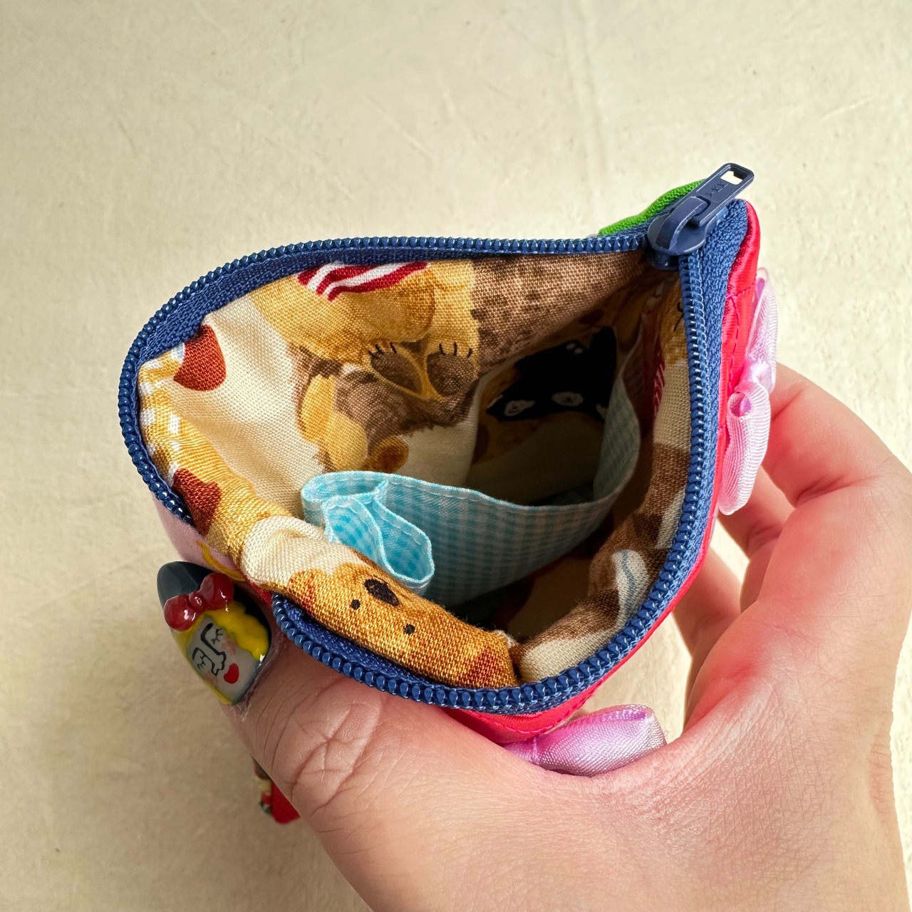 カオ刺繍のリボンぺたんこポーチは、個性的で魅力あふれるデザインが特徴で、様々なシーンで活躍します。ぜひこのキュートなアイテムをあなたのコレクションに加え、毎日をもっと楽しくしてみてはいかがでしょうか?