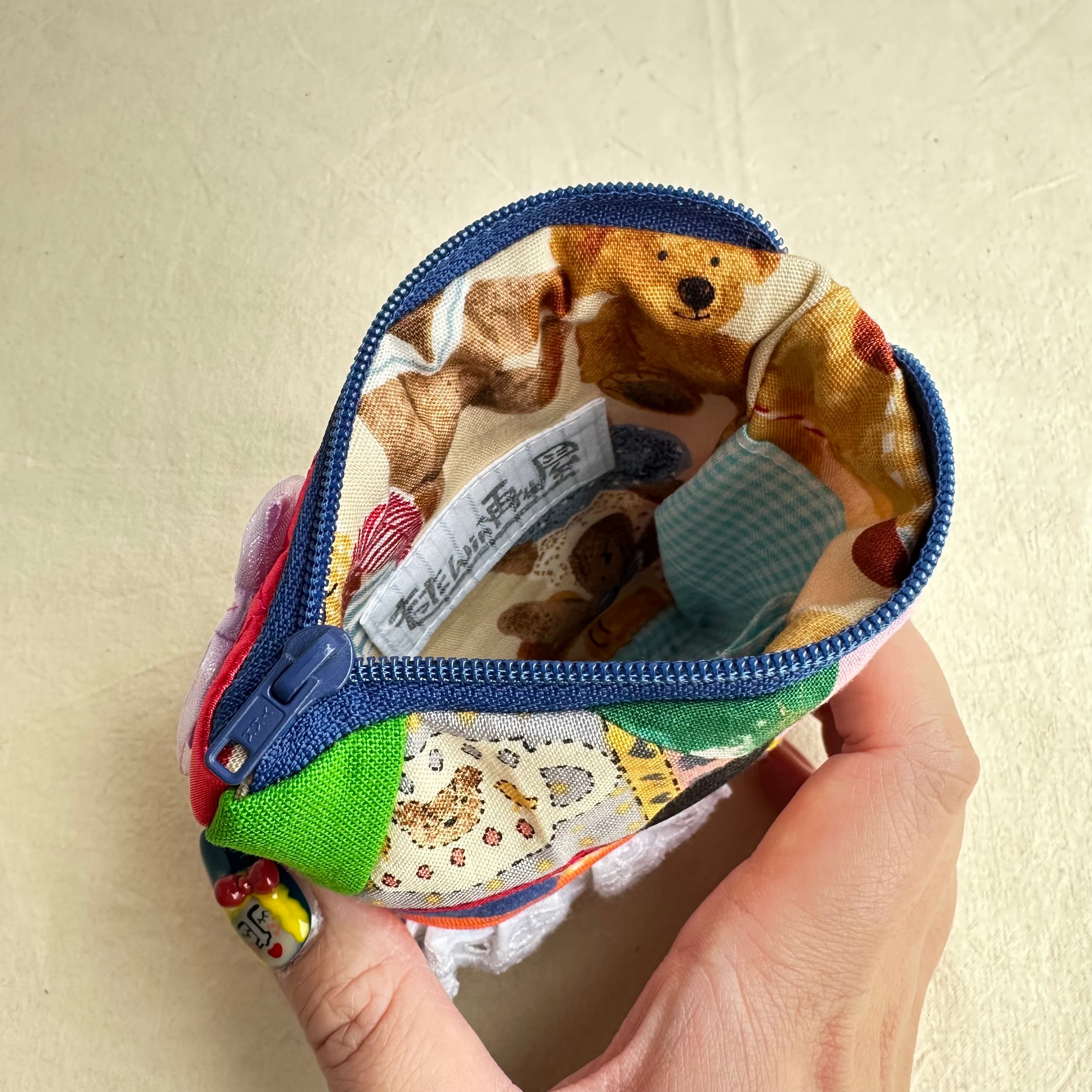 13 カオ刺繍の真四角ぺたんこポーチ 13