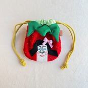 24 カオ刺繍のイチゴ キンチャク小袋 24