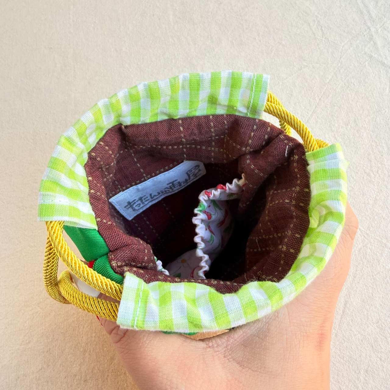 **カオ刺繍のイチゴ キンチャク袋で、日常に楽しい彩りを!**