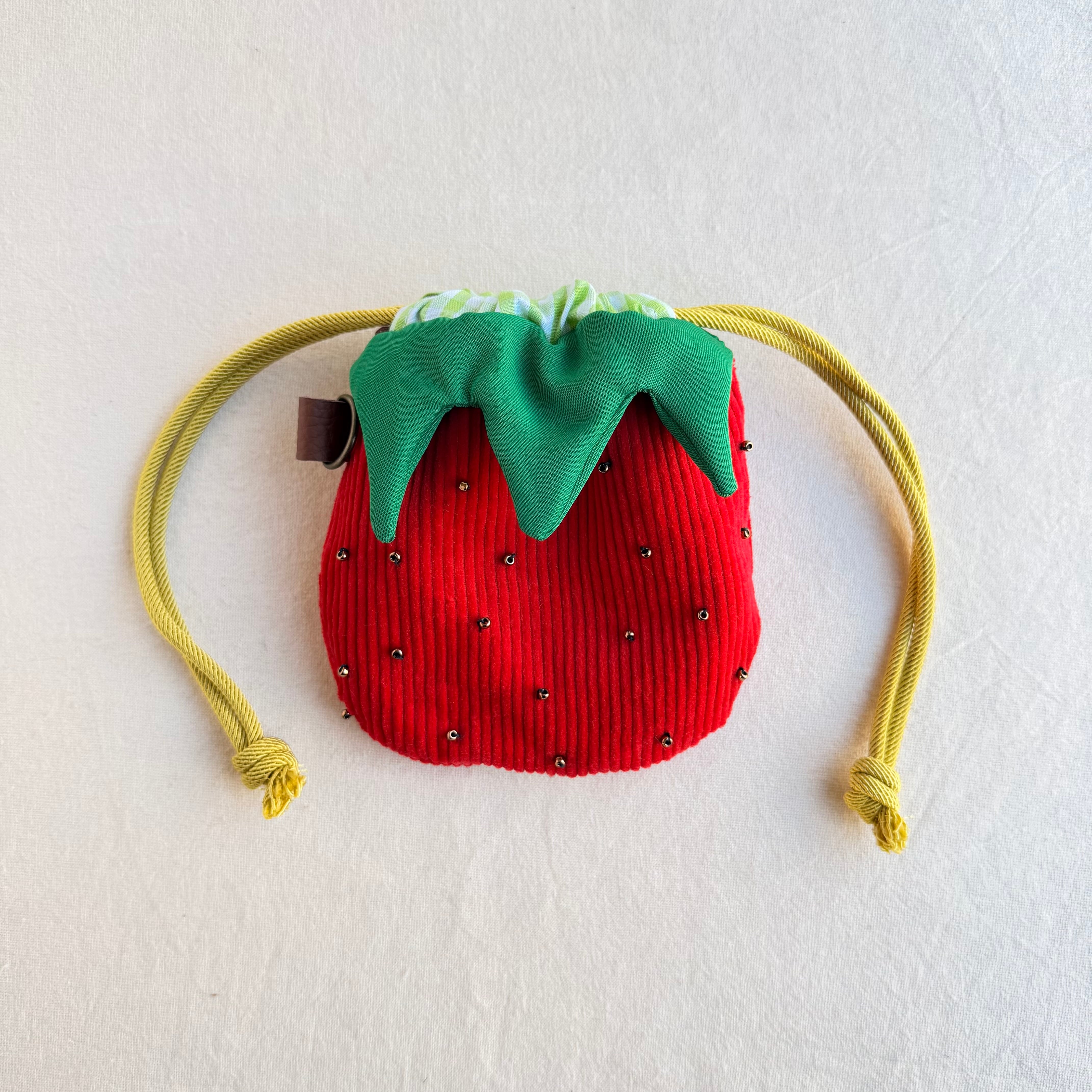 イチゴのデザインがとってもキュートな巾着袋。小物を入れてお出かけするのにピッタリです♪