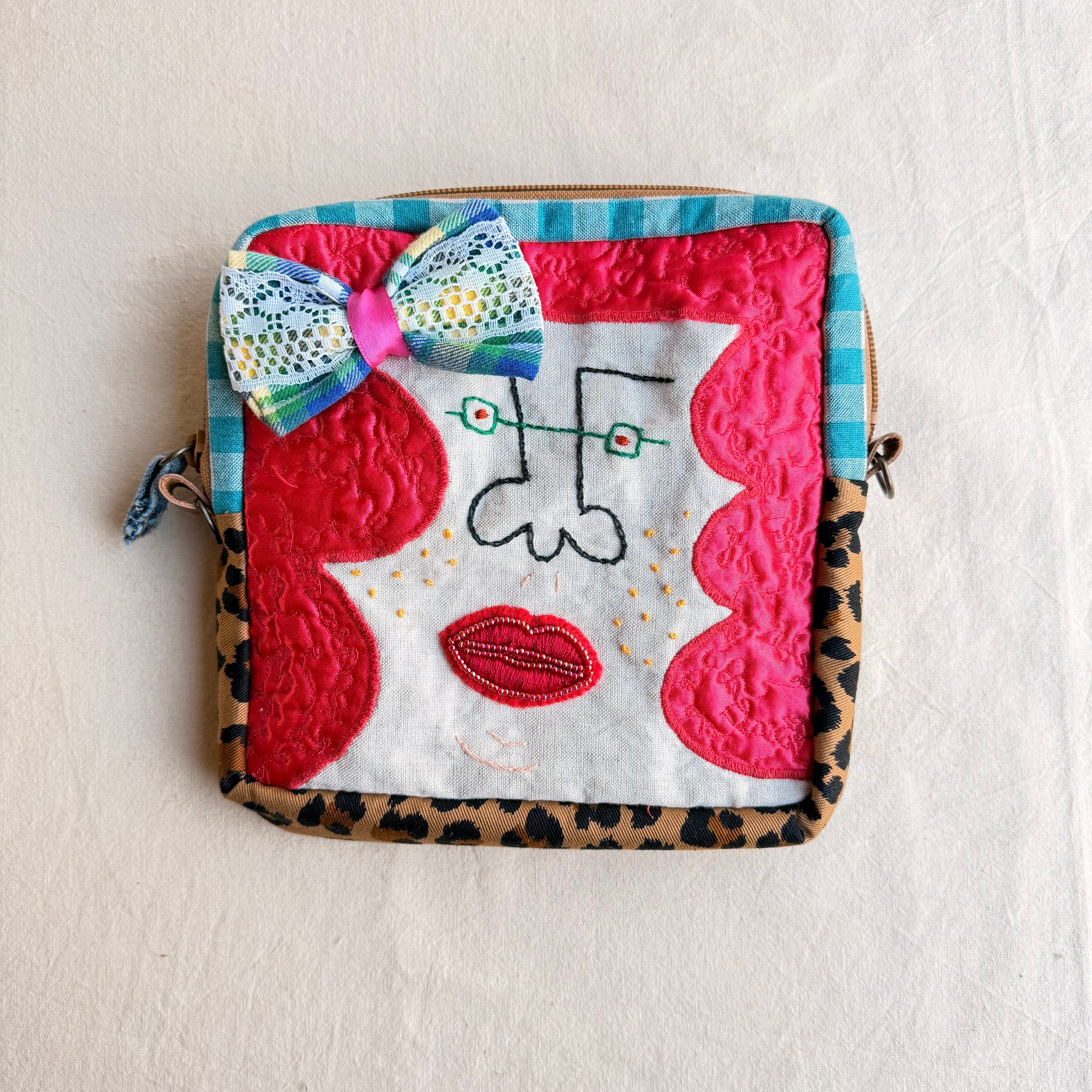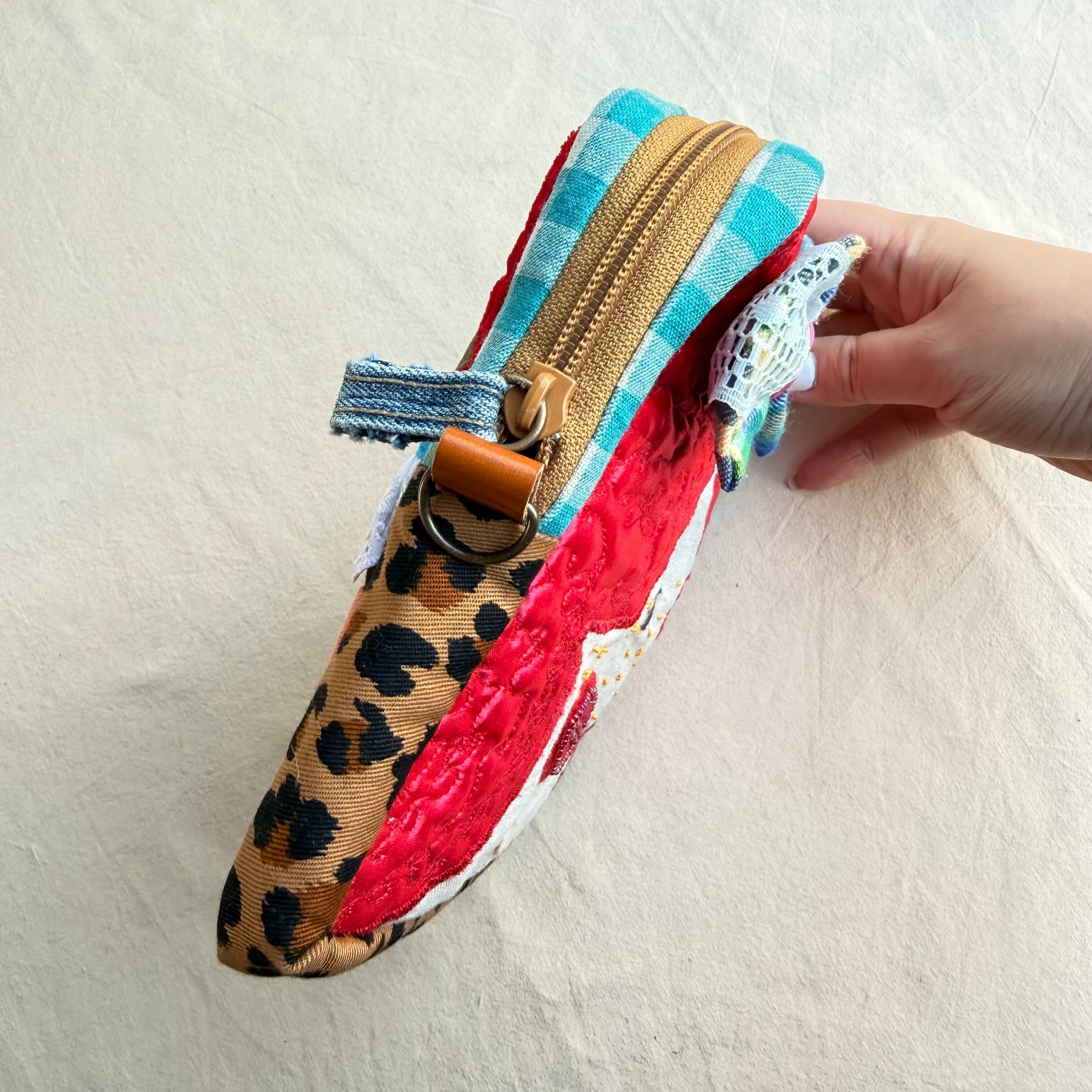 1 カオ刺繍の四角ポーチ〈ビッグサイズ〉 1