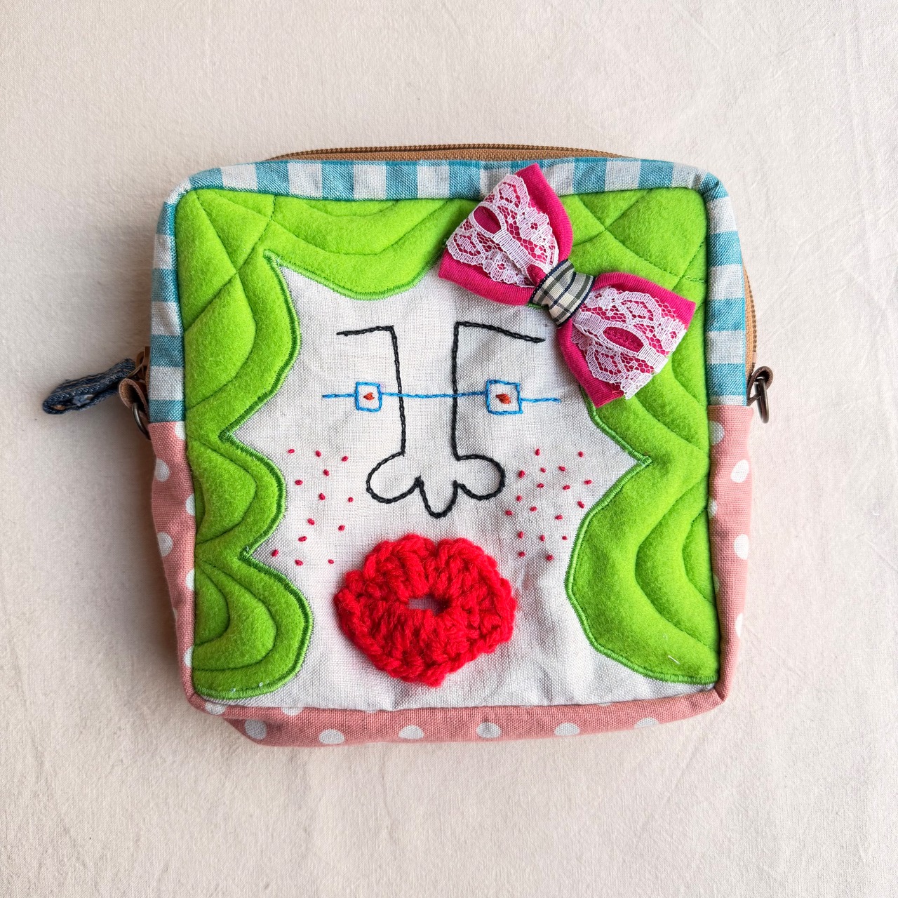 【オーダーメイドsold out】カオ刺繍の四角ポーチからビッグサイズが登場♪