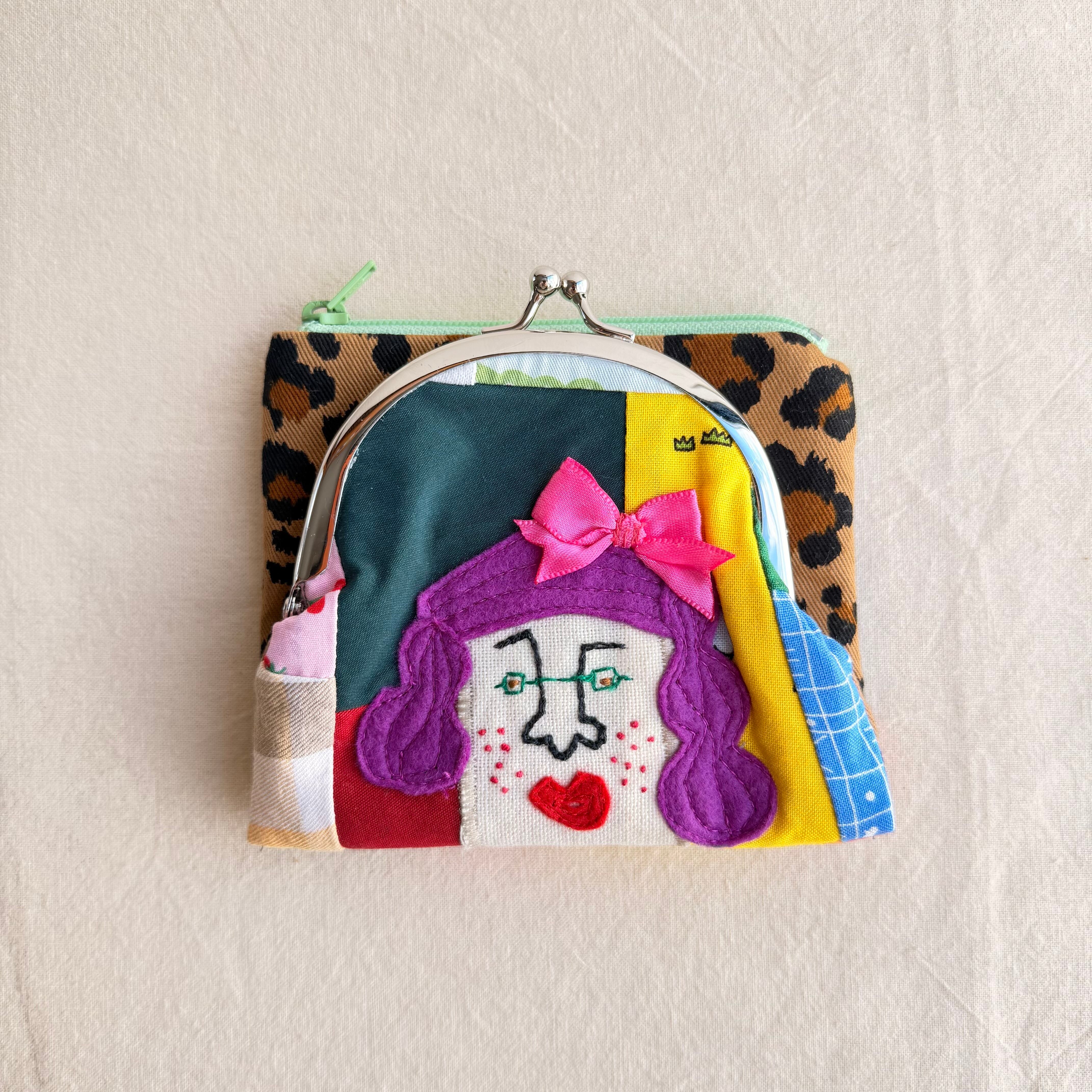 カオ刺繍二つ折りがま口財布
