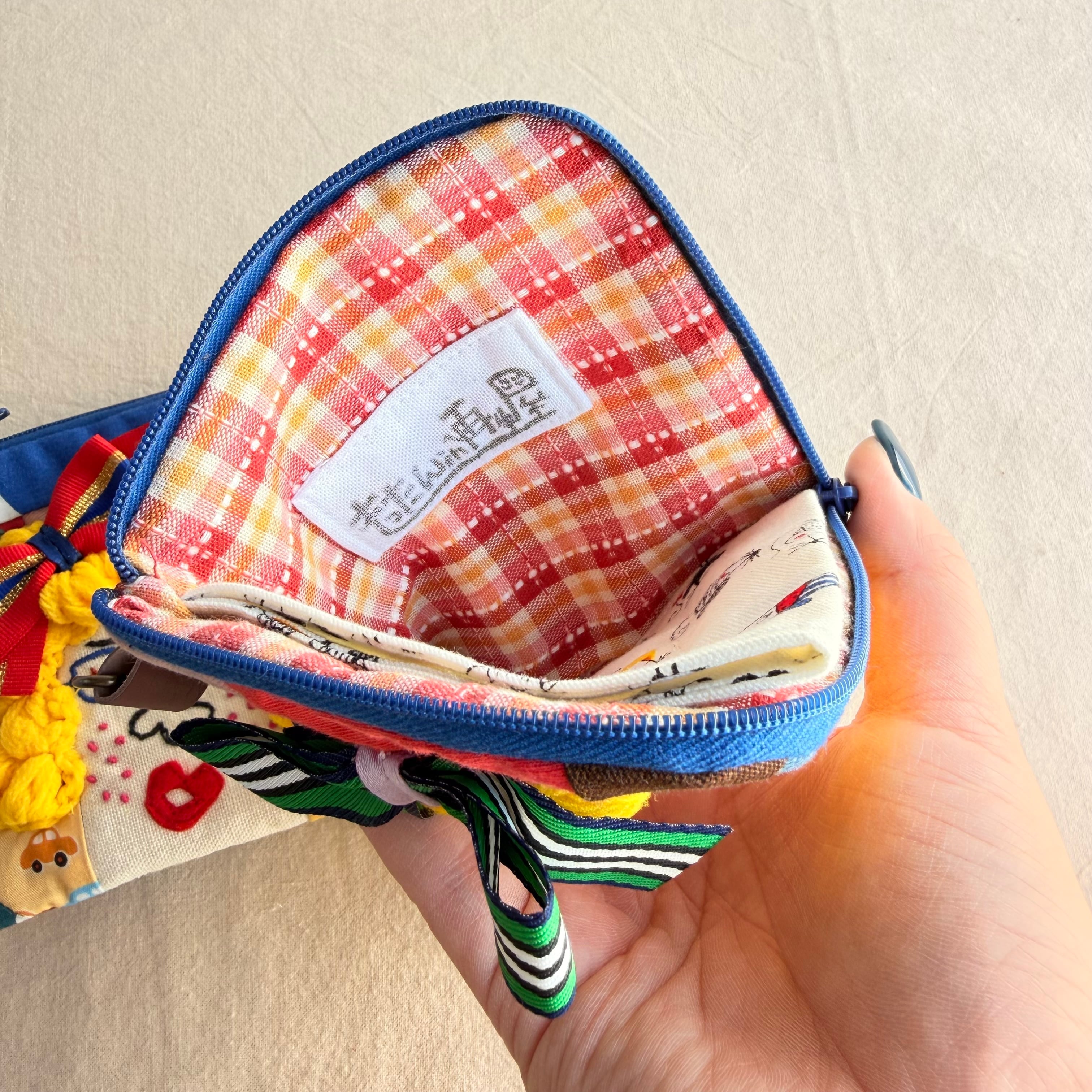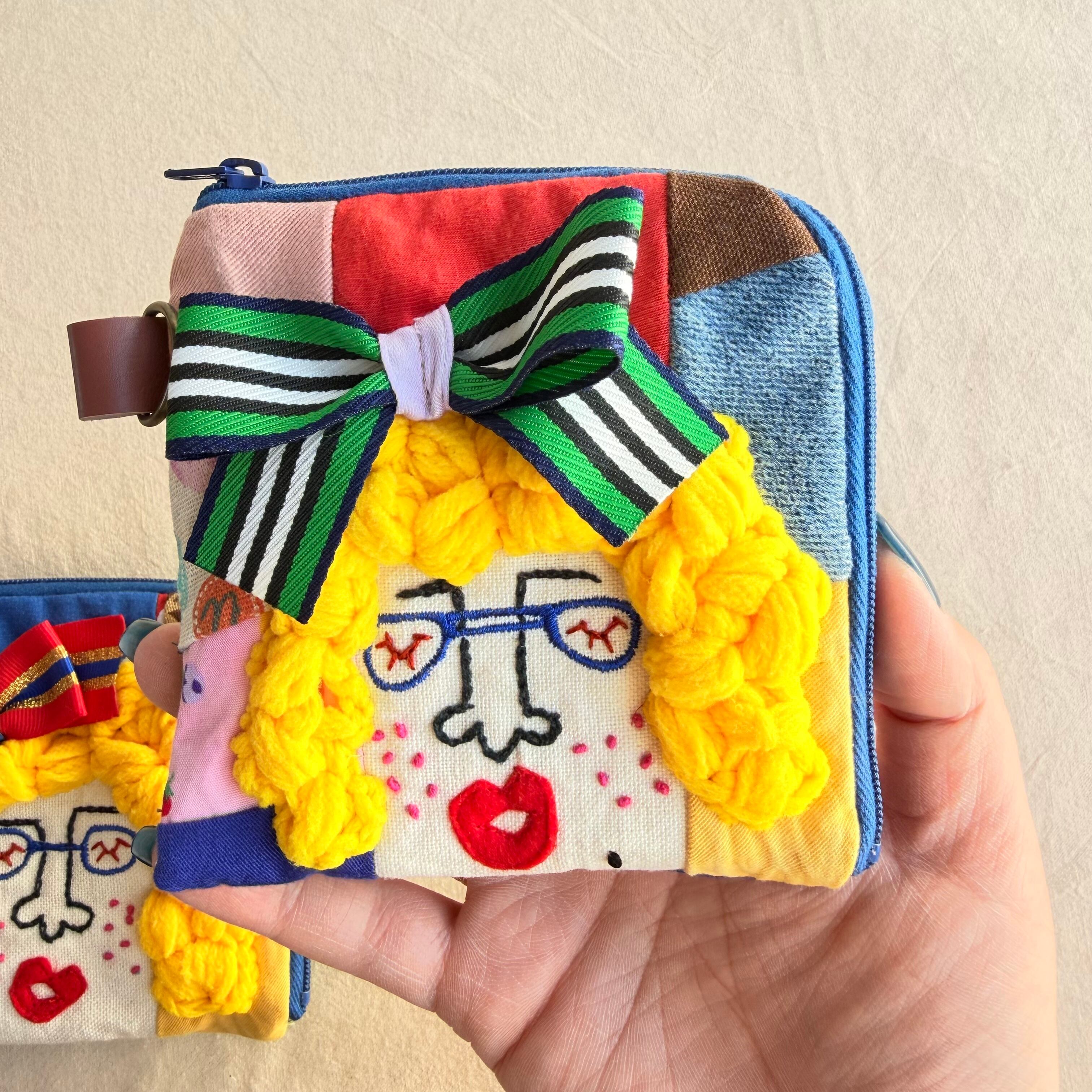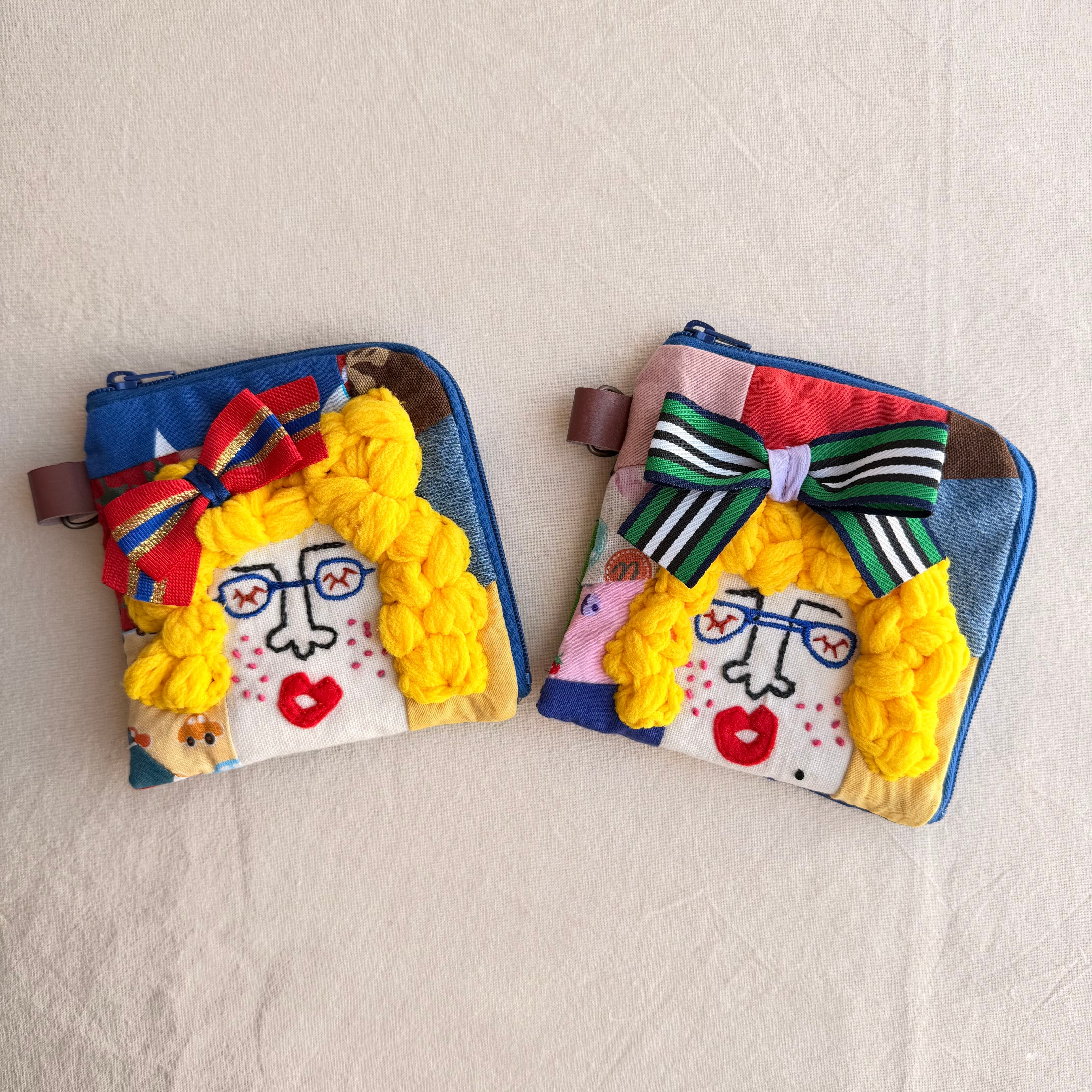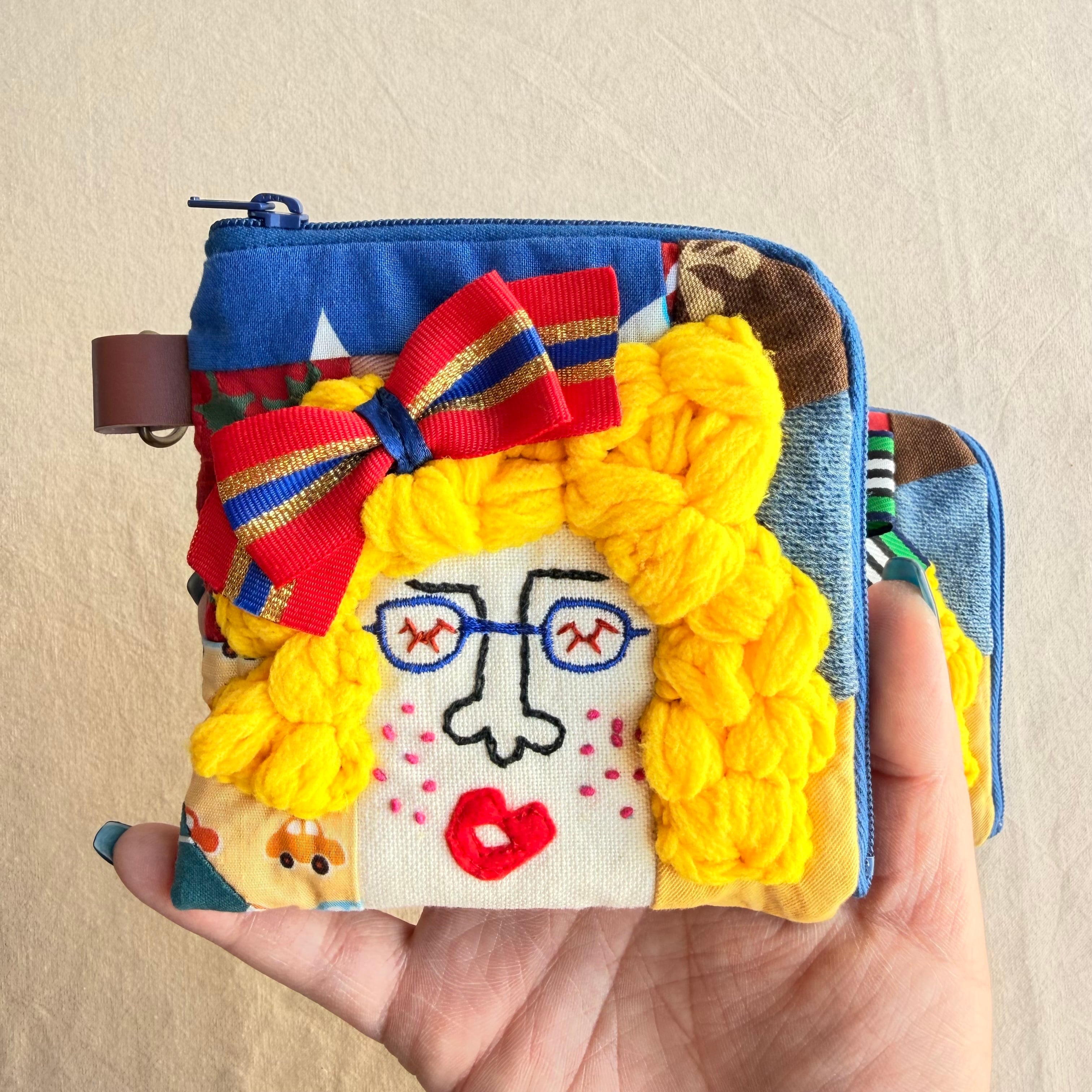 121-122 カオ刺繡のL字ジップお財布ポーチ 121-122