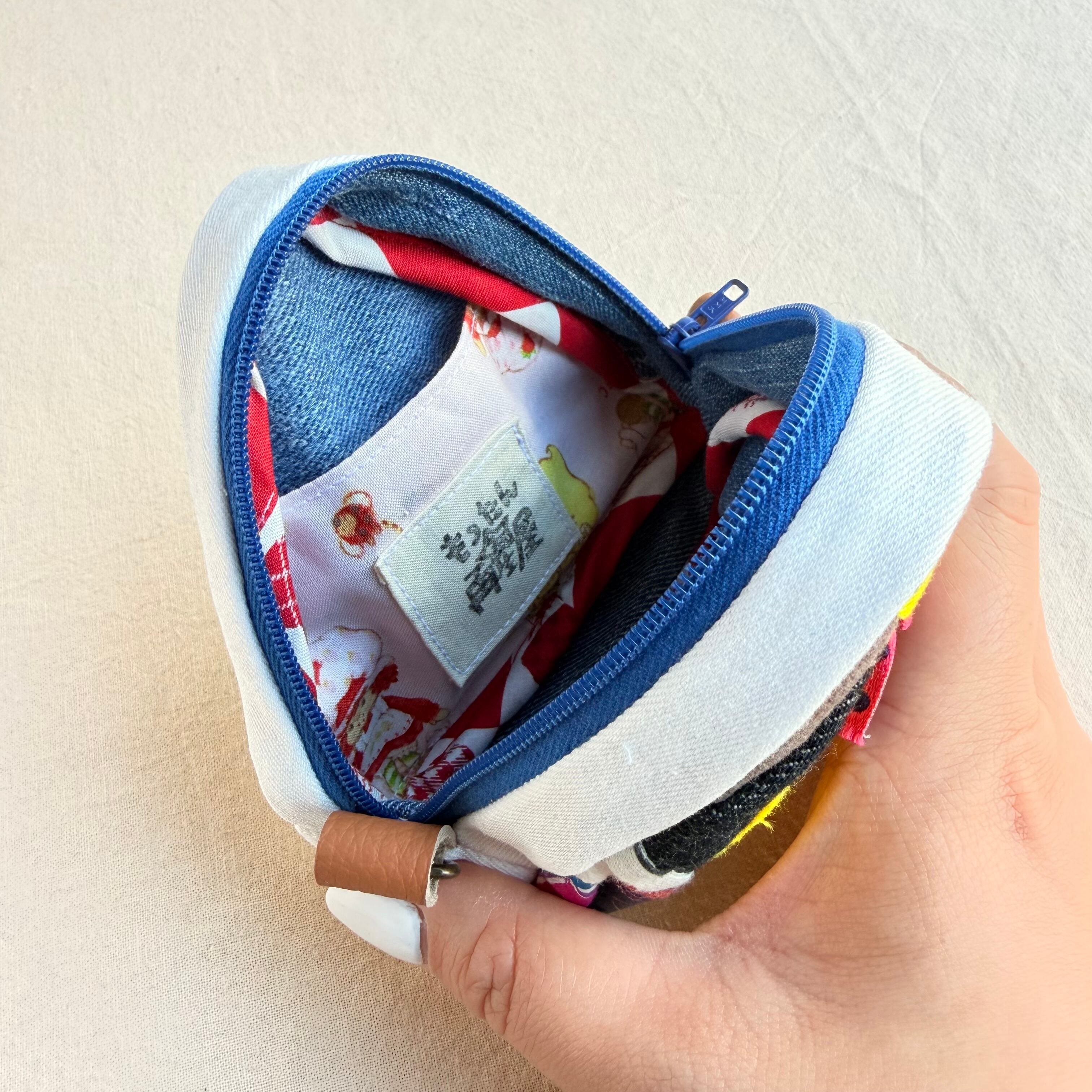【受注生産No.3】カオ刺繍のおにぎりポーチ