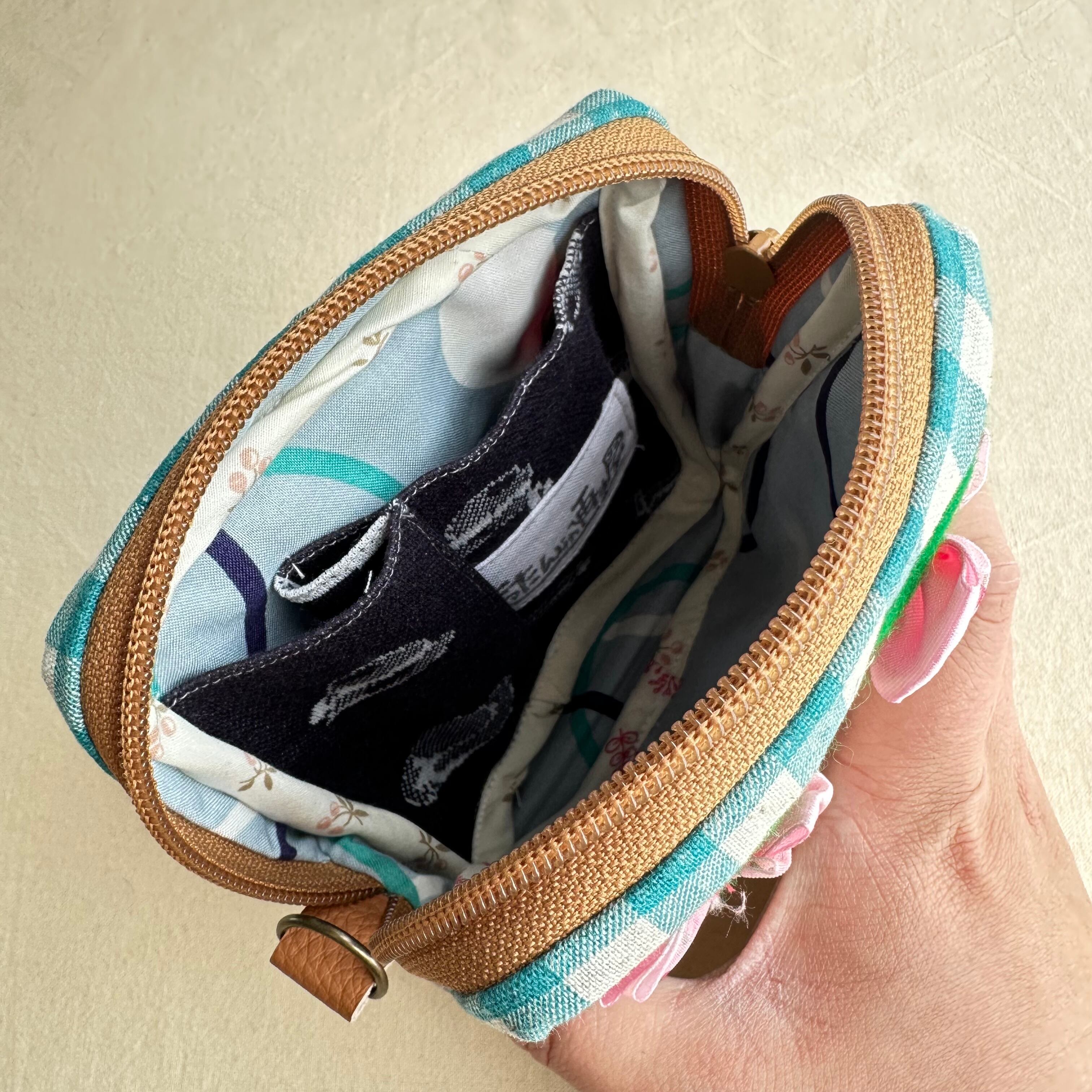 内部にはしっかりとした収納スペースがあり、小物や化粧品をすっきり整理できる内ポケット付きです!ファスナーで入れ口が大きく開くので、出し入れも簡単♪