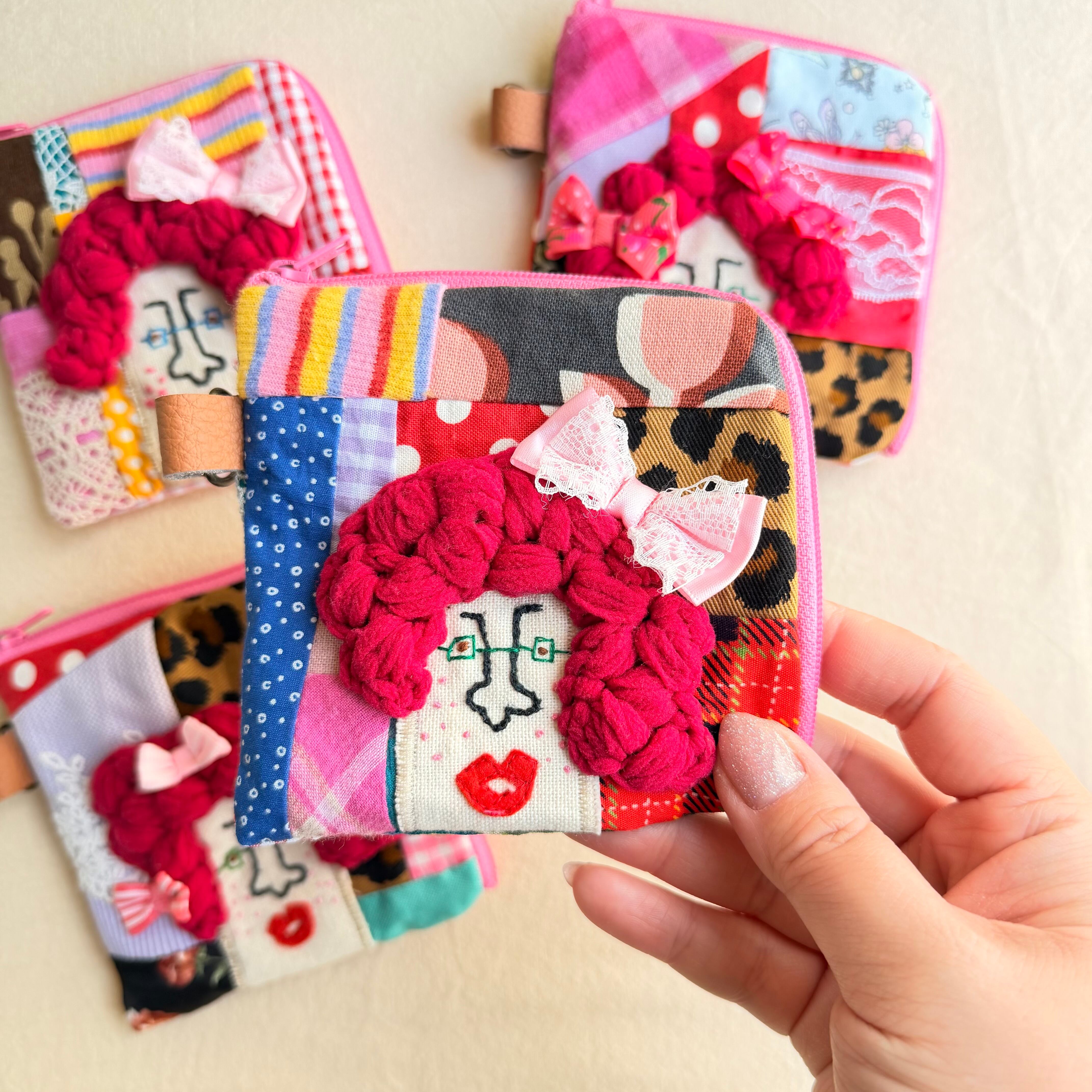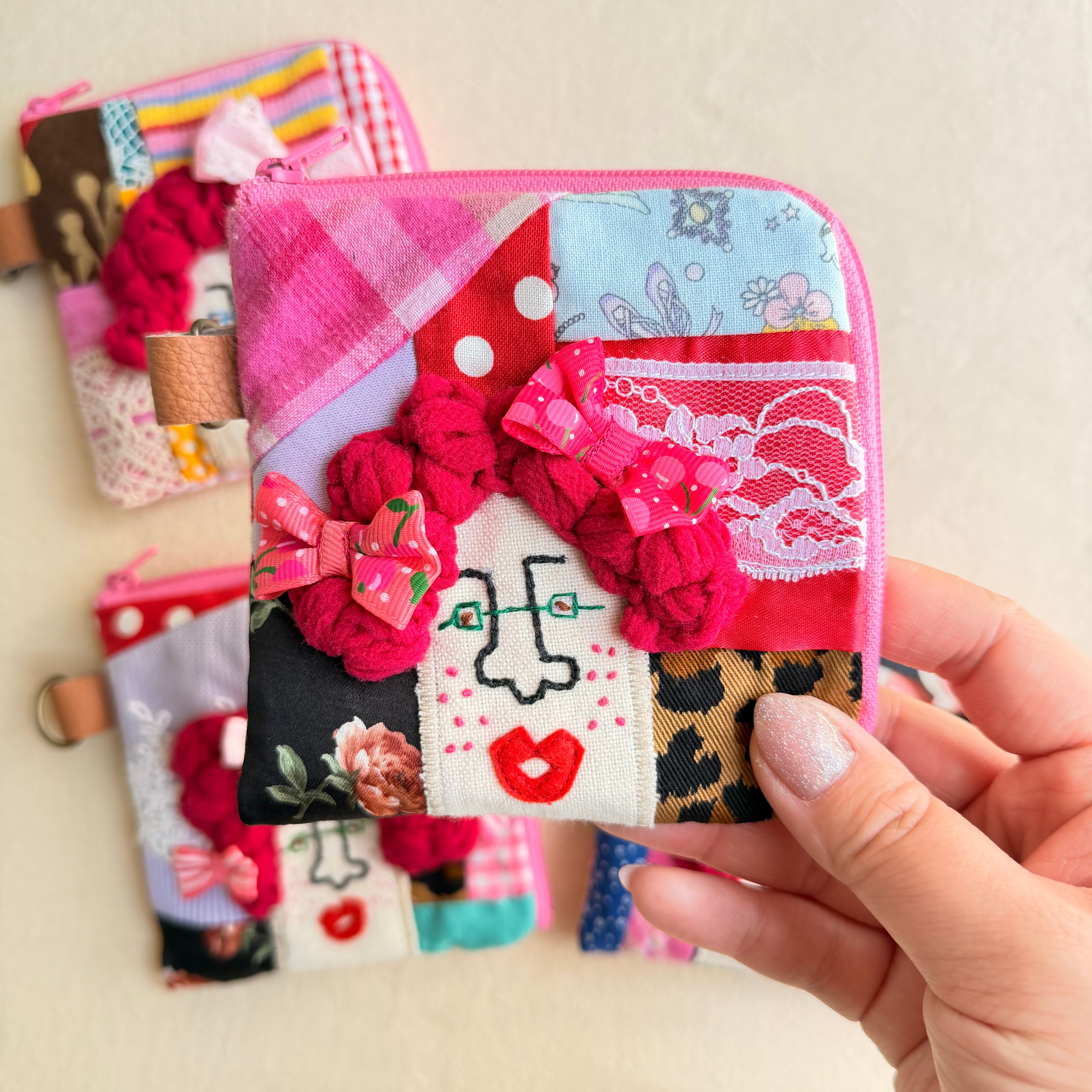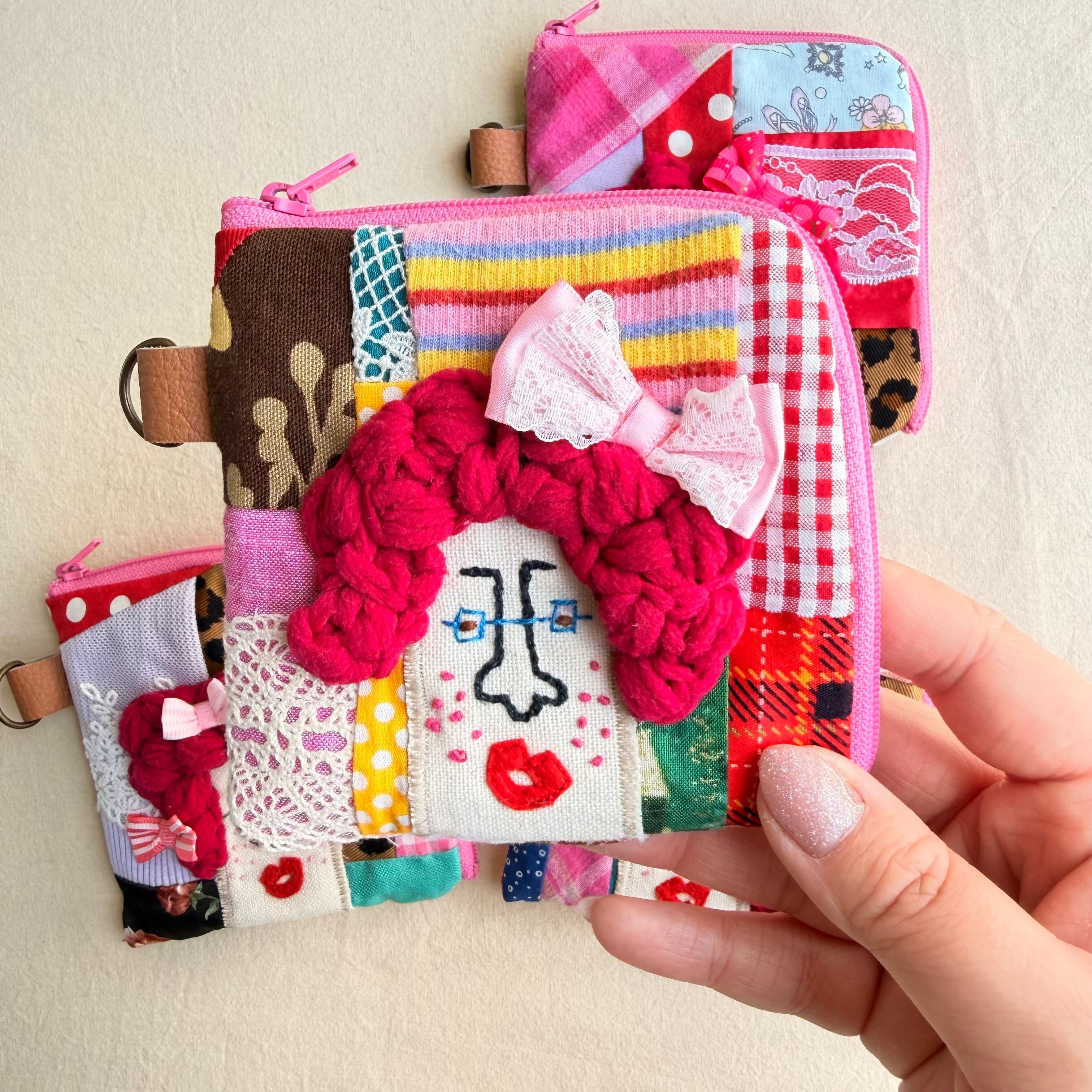 141-144 カオ刺繡のL字ジップお財布ポーチ 141-144