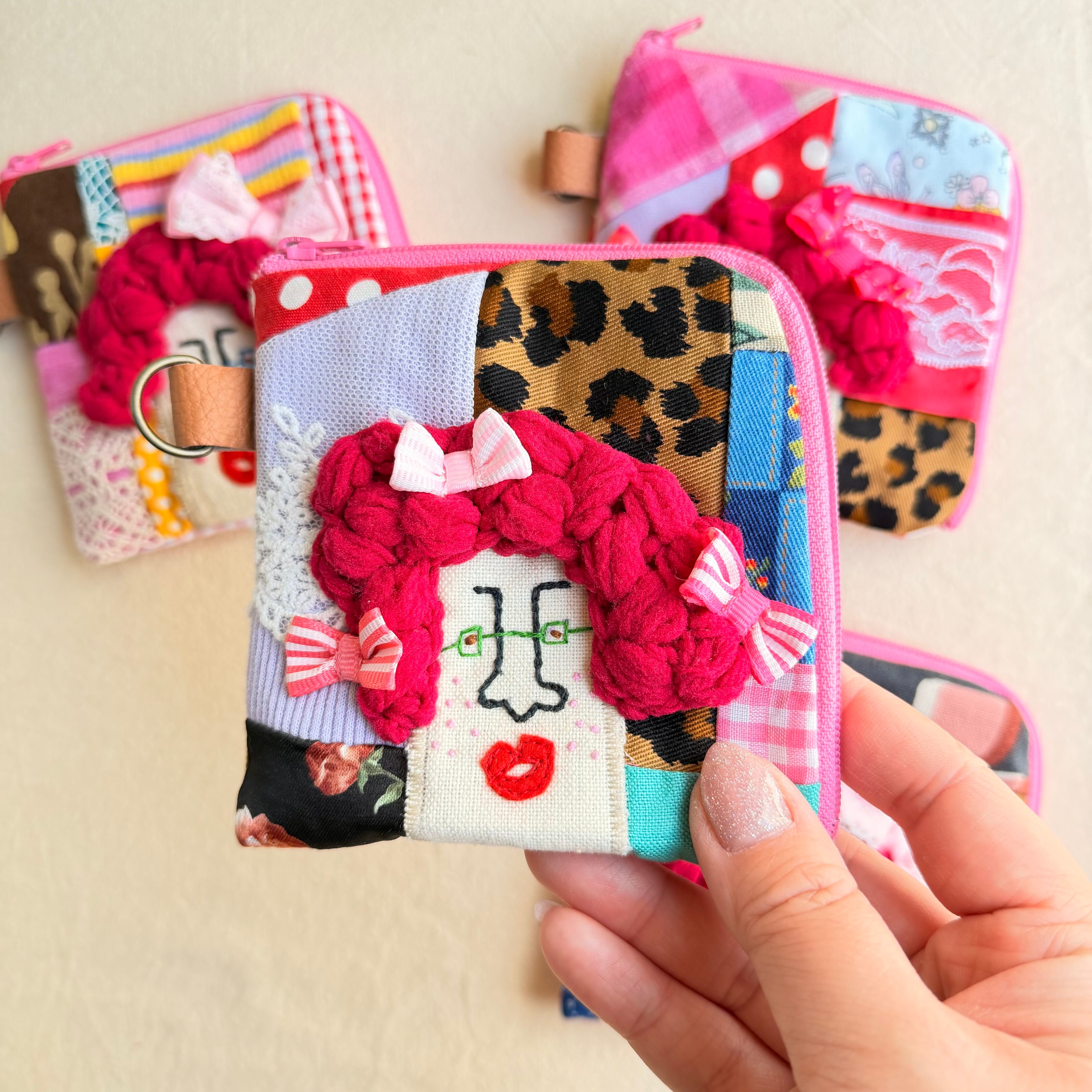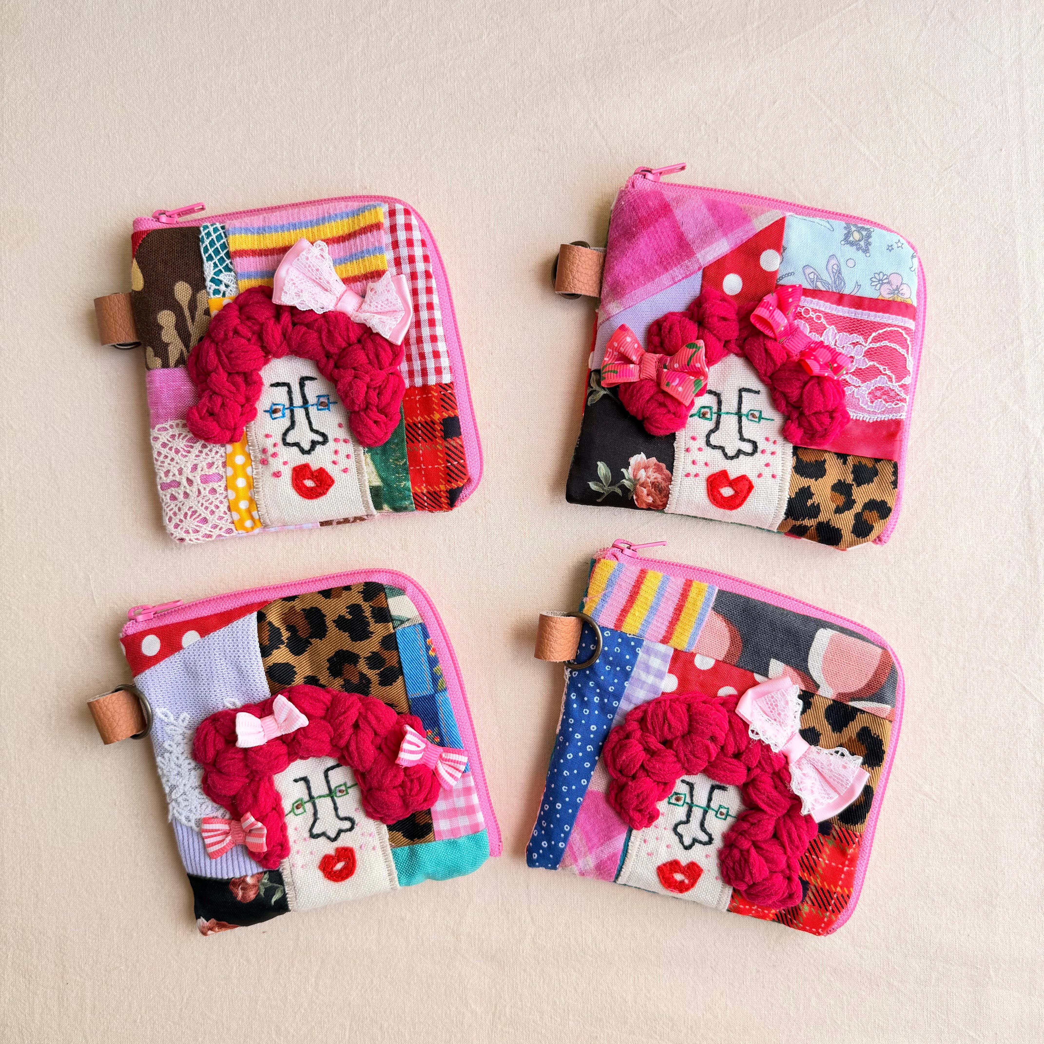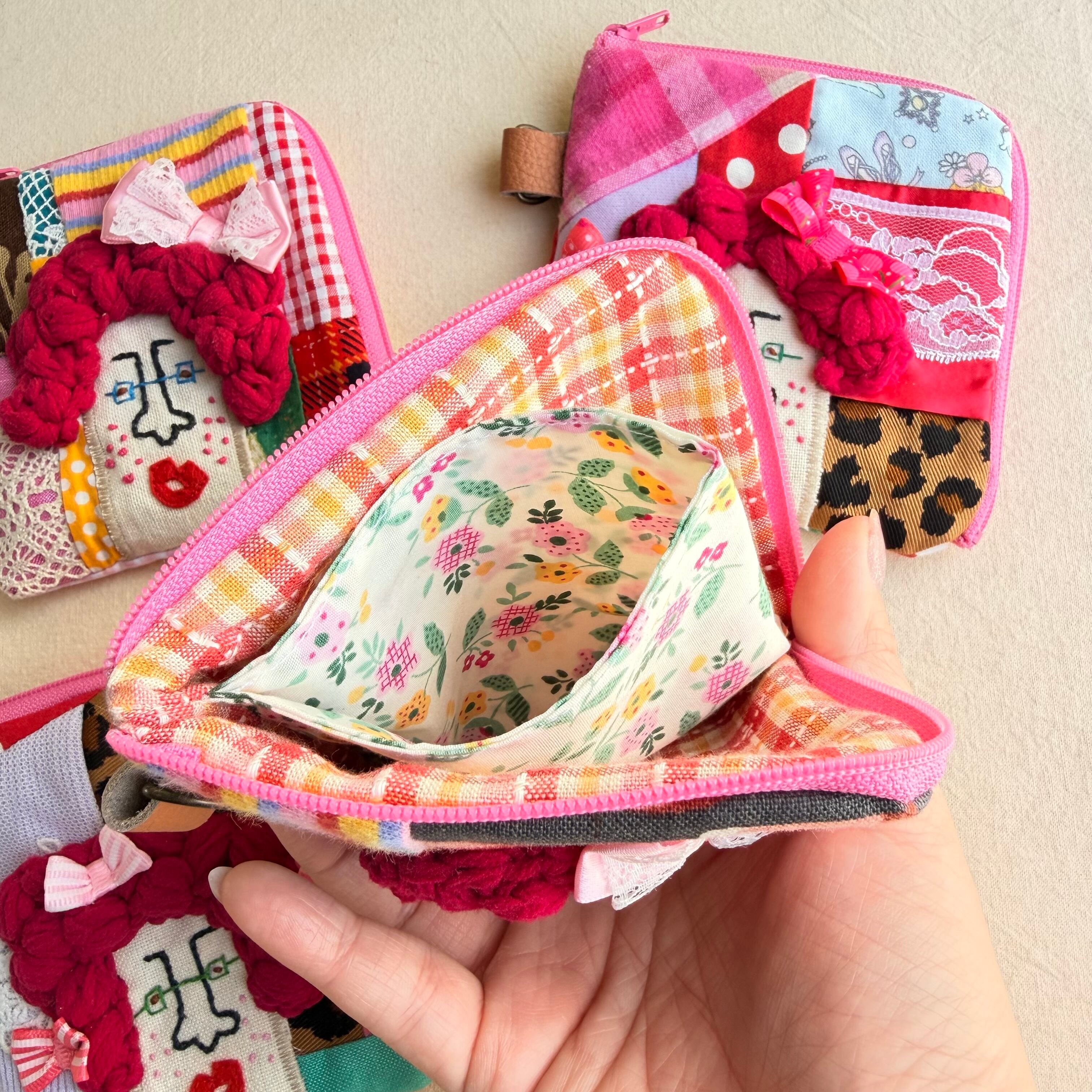 141-144 カオ刺繡のL字ジップお財布ポーチ 141-144