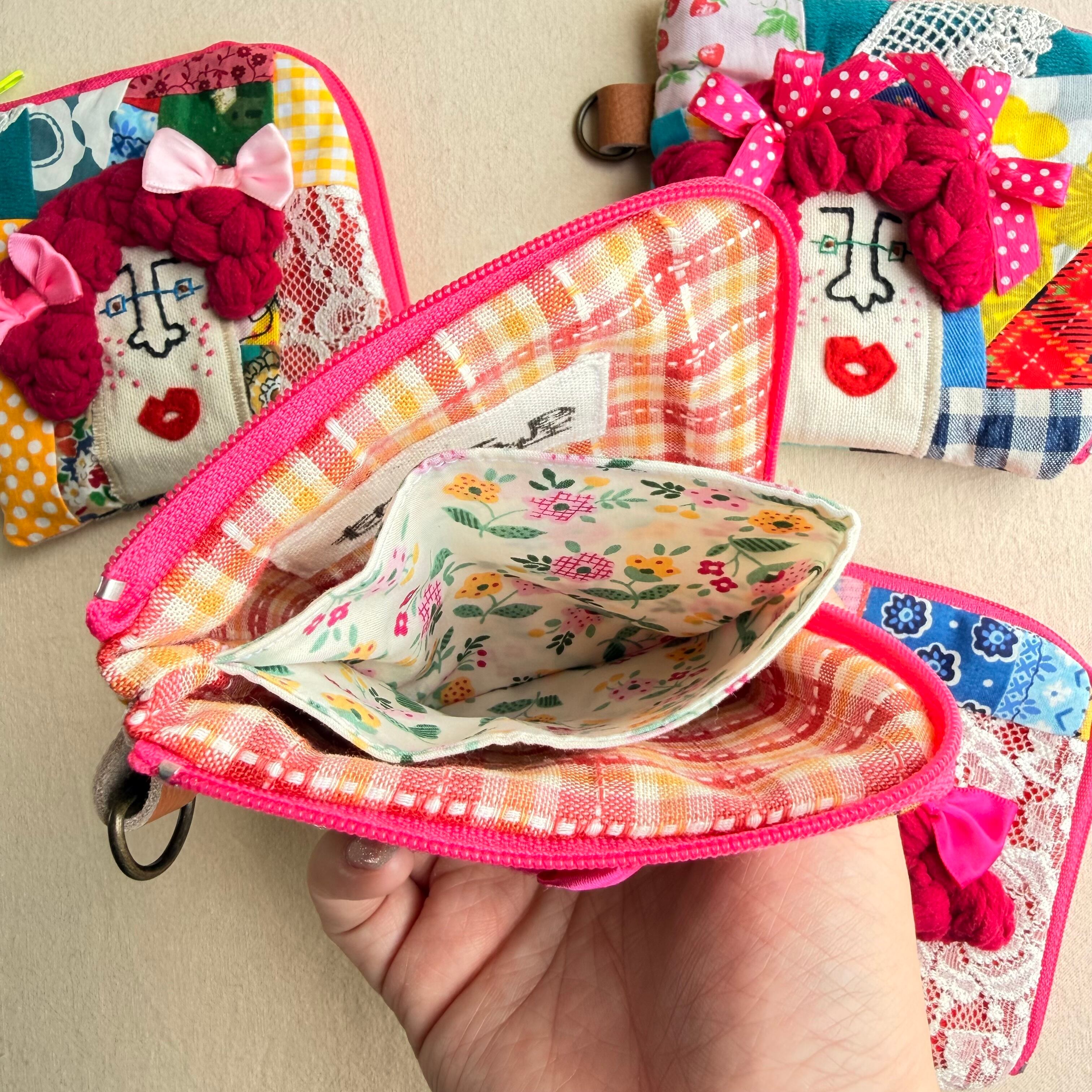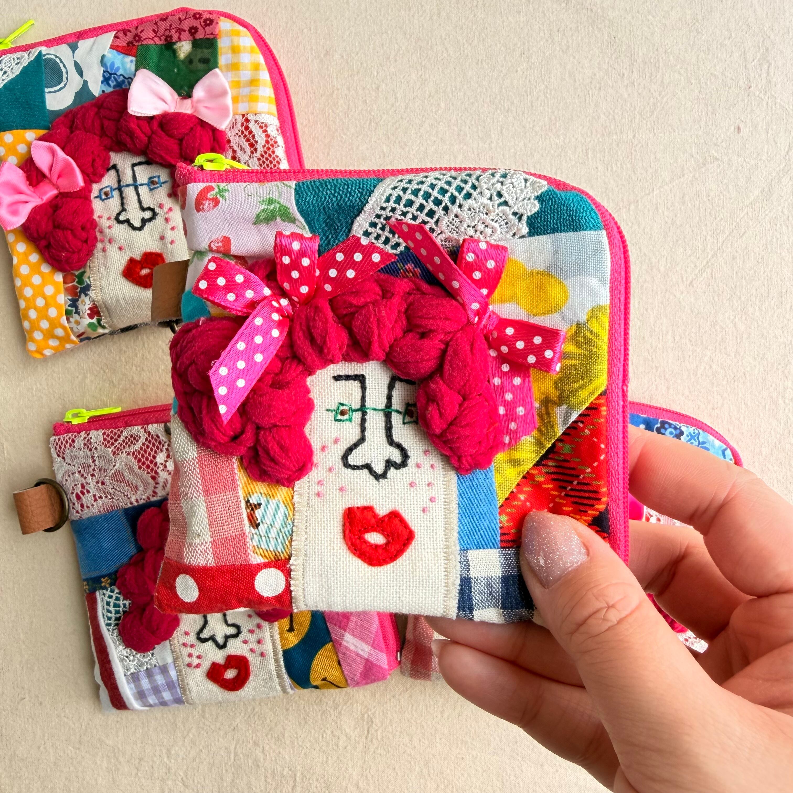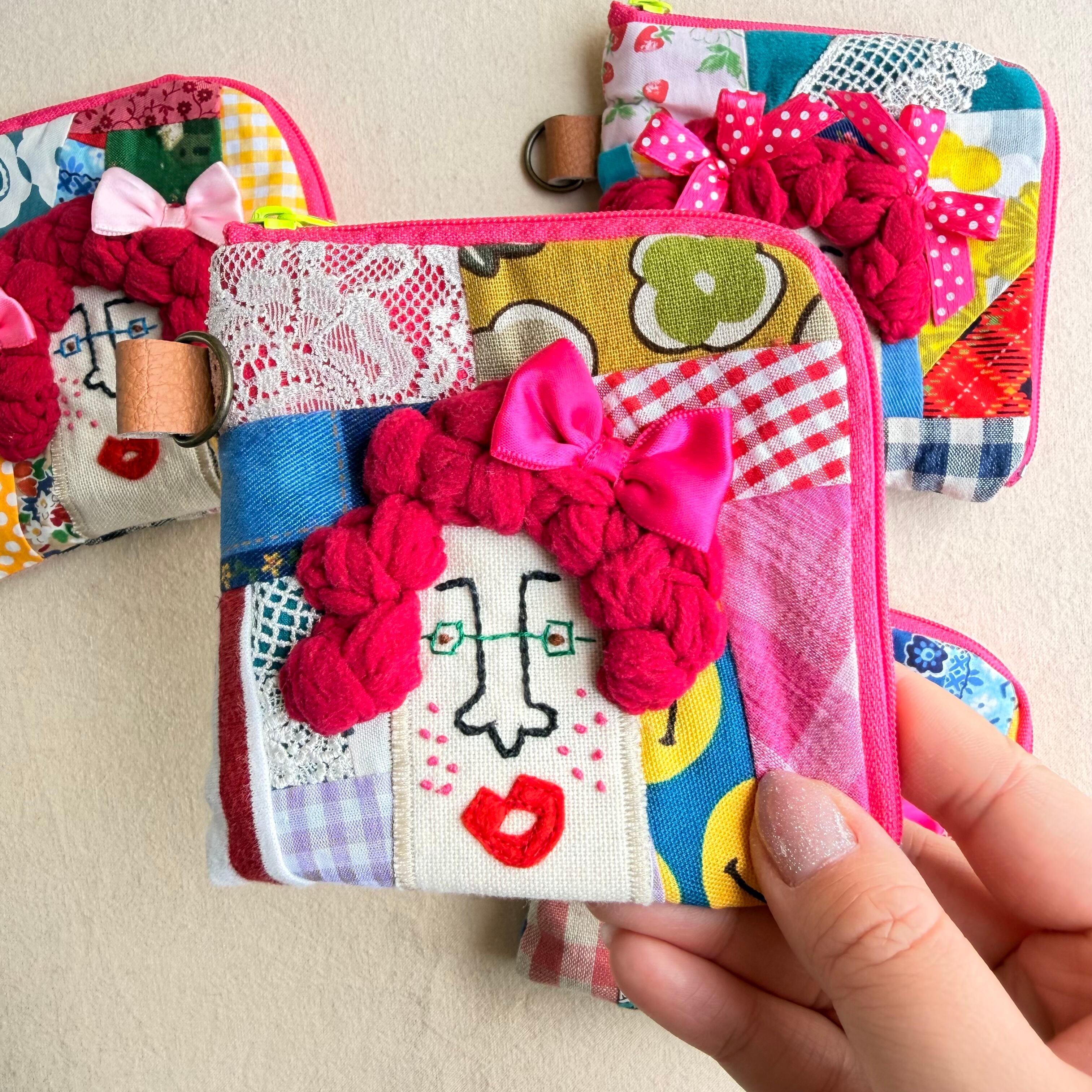 157-160 カオ刺繡のL字ジップお財布ポーチ 157-160