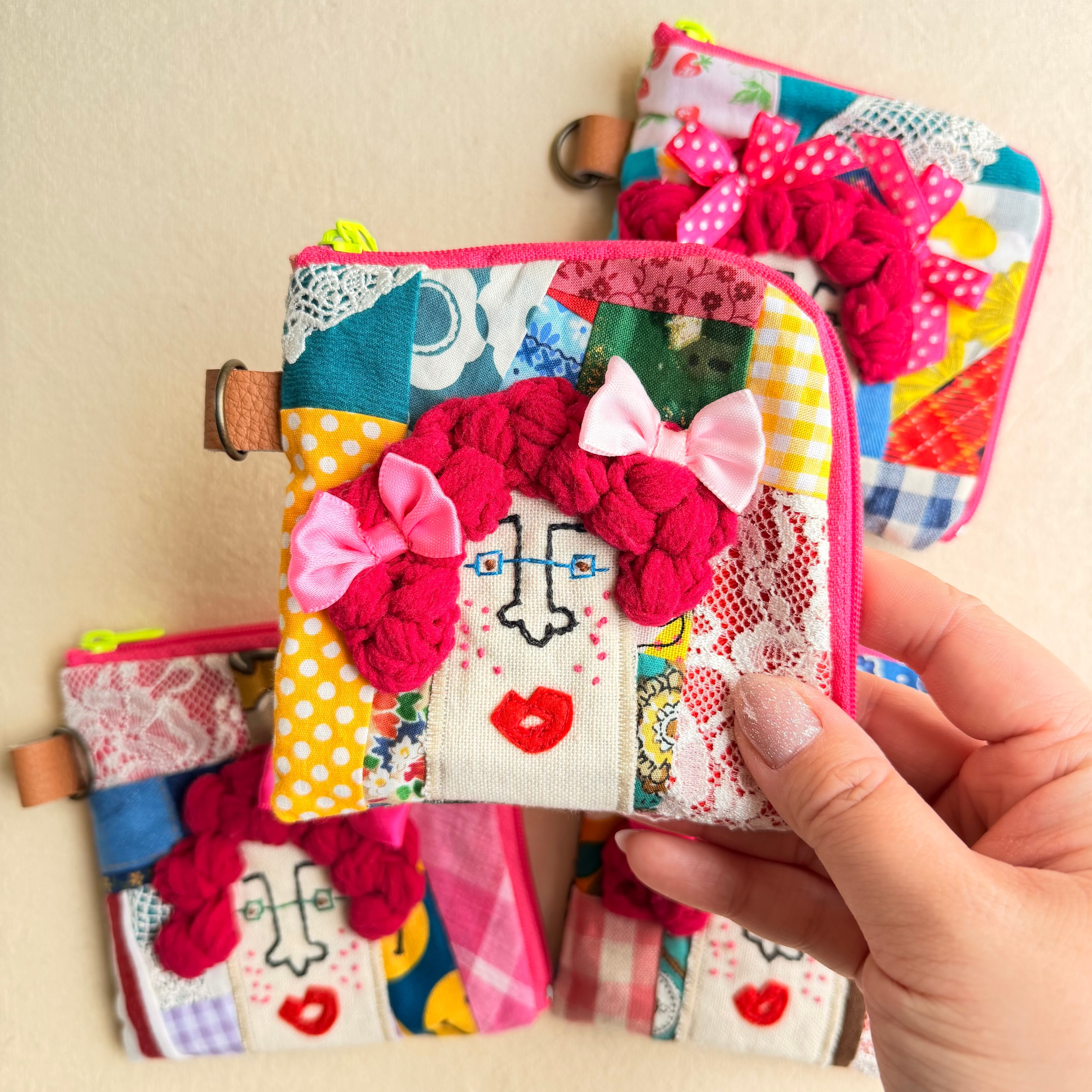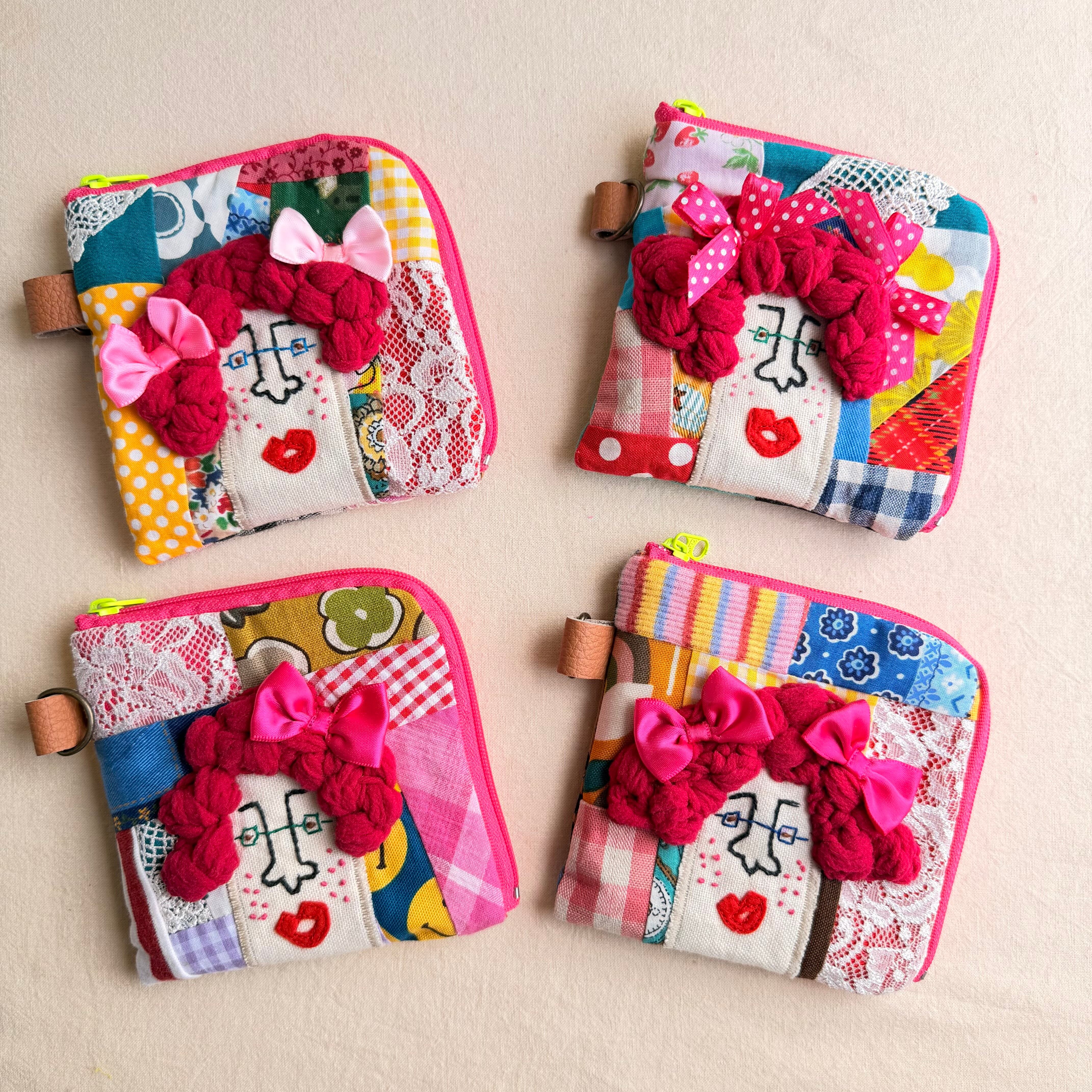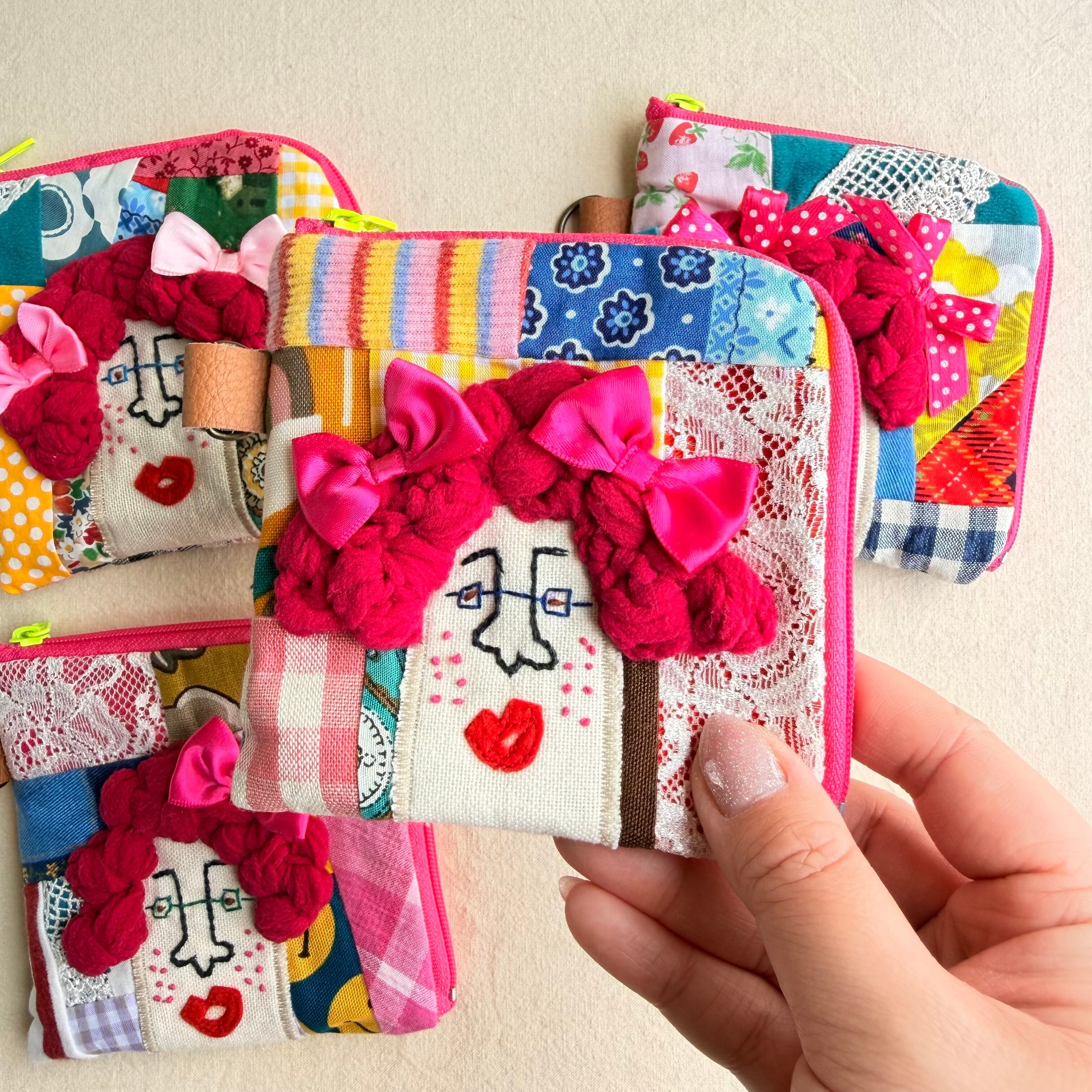 157-160 カオ刺繡のL字ジップお財布ポーチ 157-160