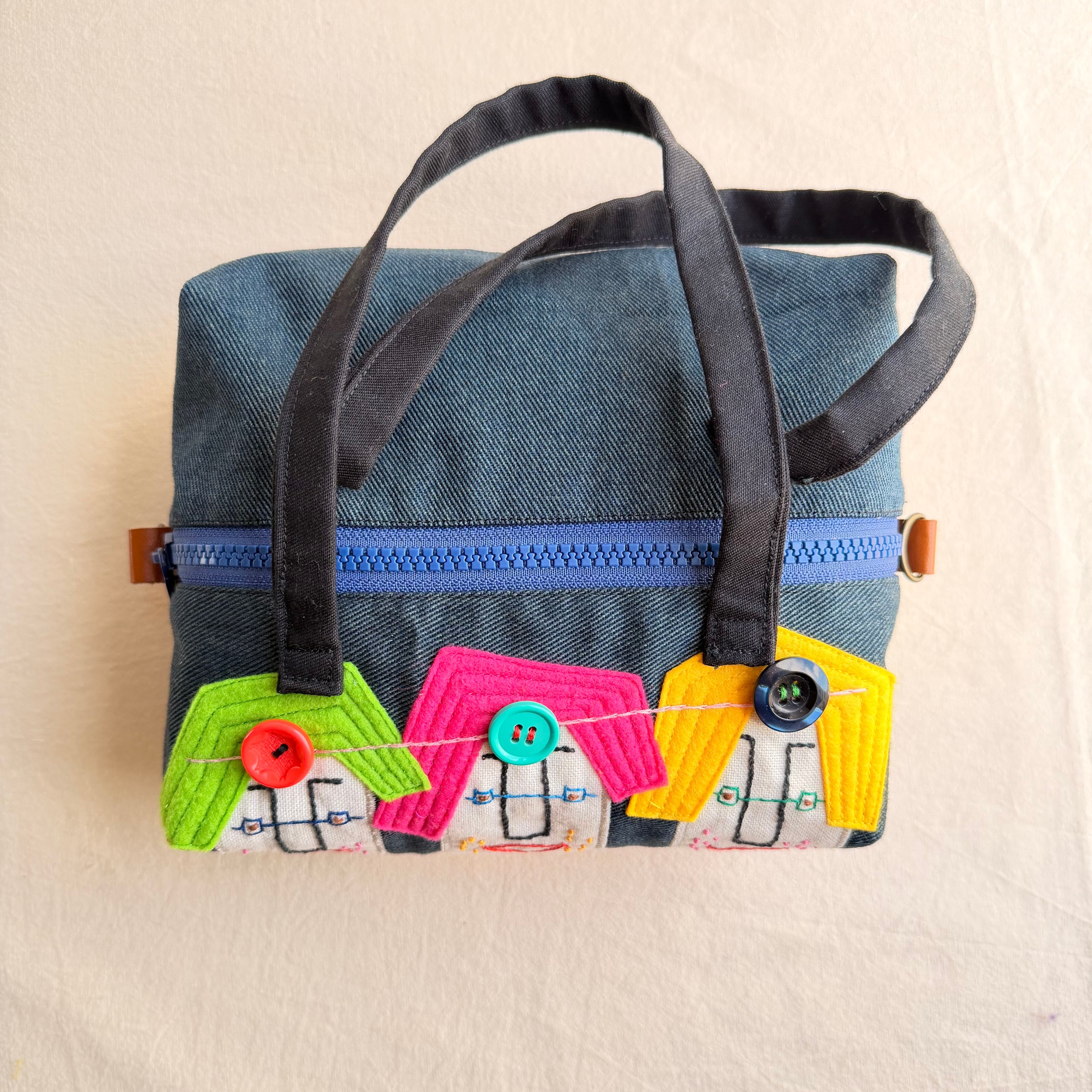 持ち手付きでお財布とスマホを入れてお出かけもできちゃいます♪