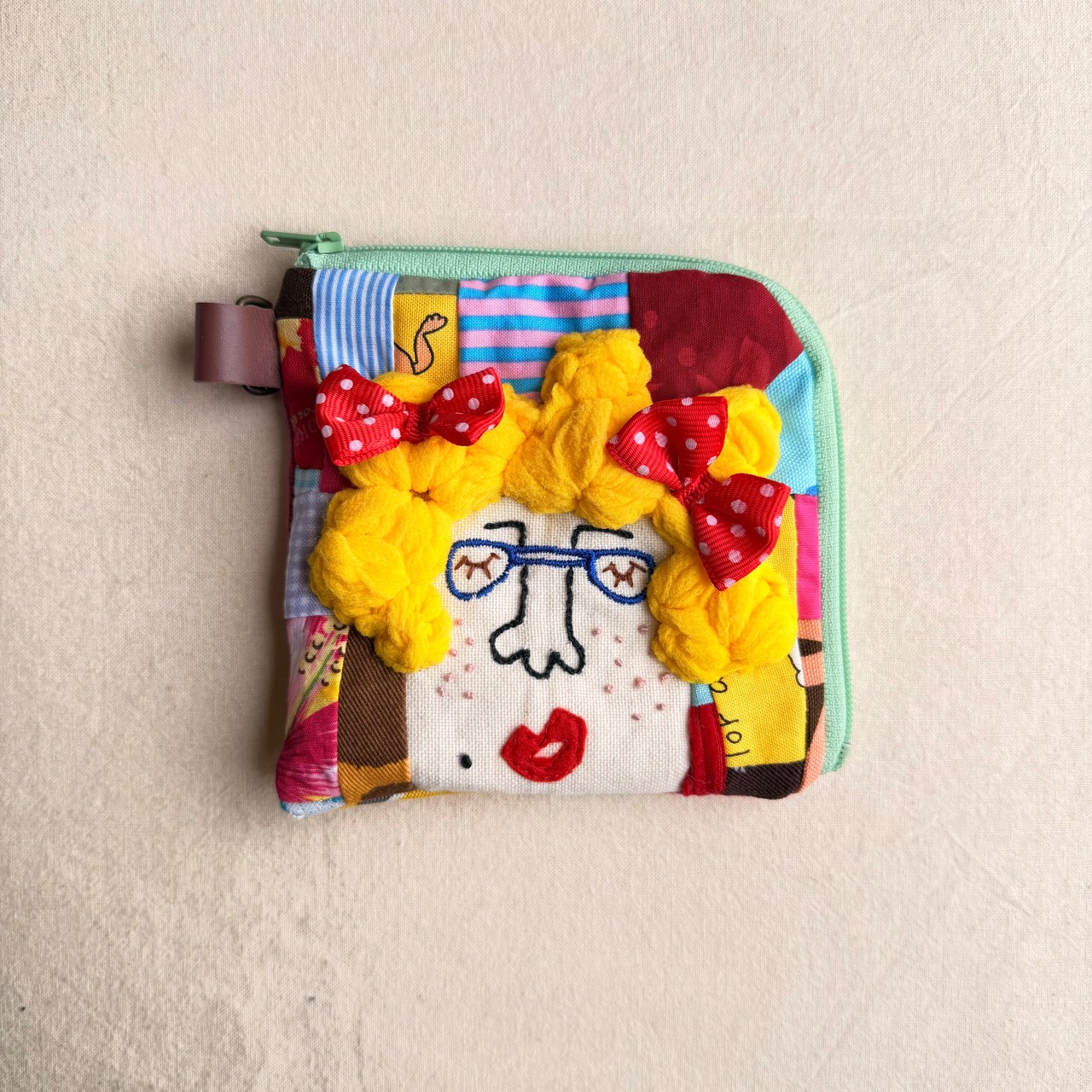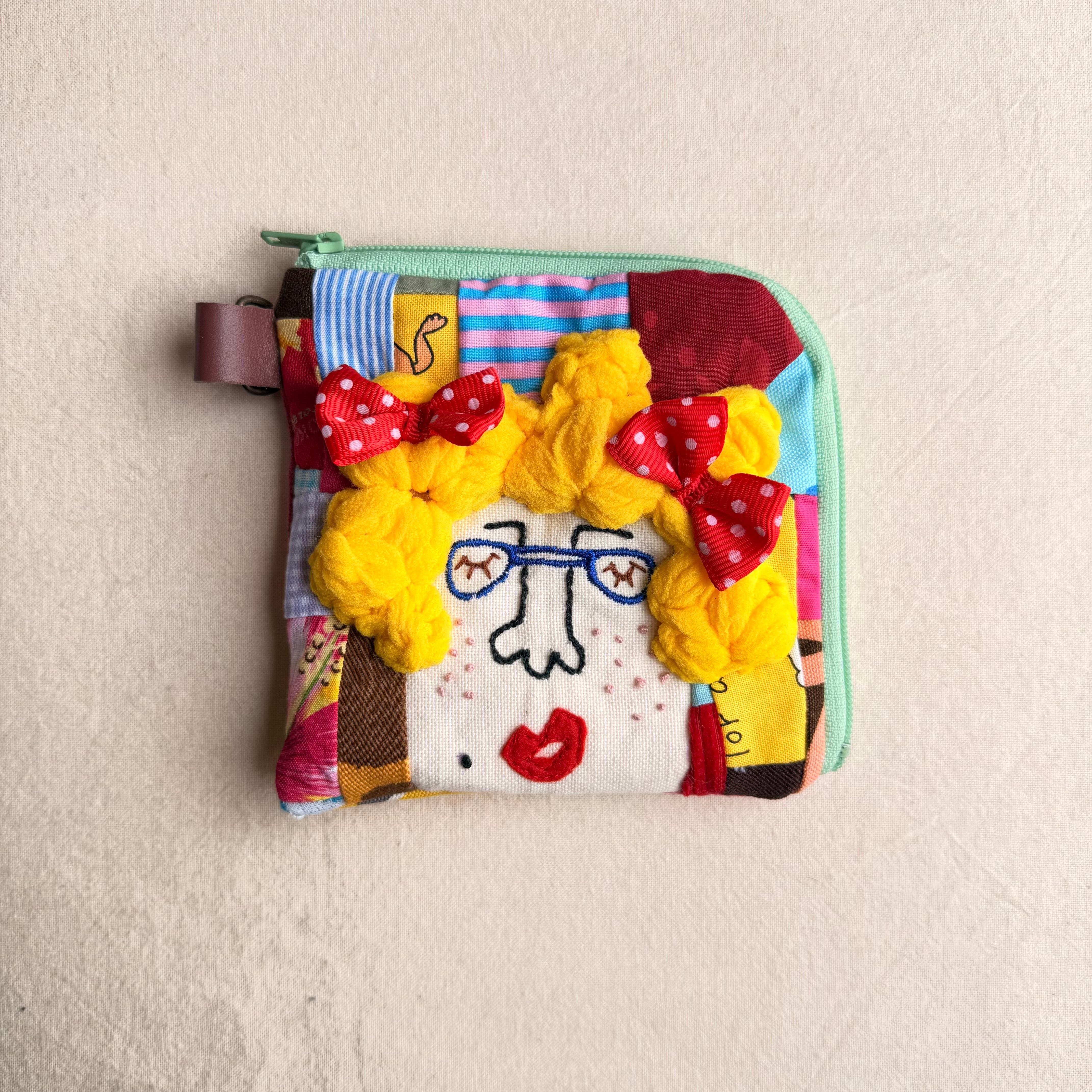 169 カオ刺繡のL字ジップお財布ポーチ 169