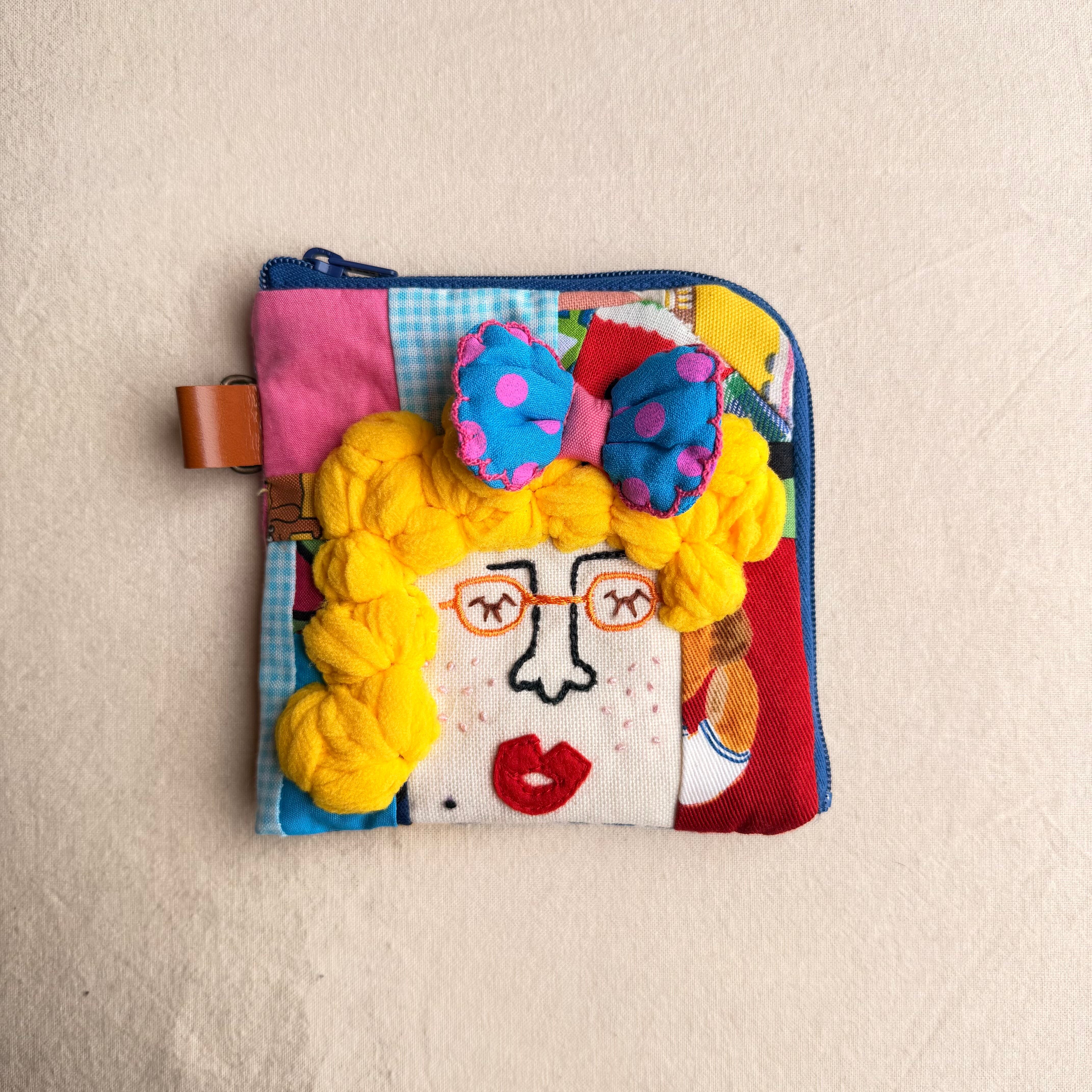 171 カオ刺繡のL字ジップお財布ポーチ 171