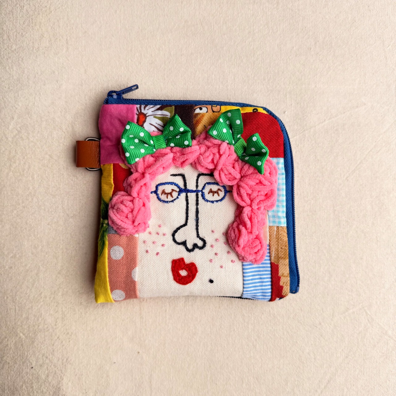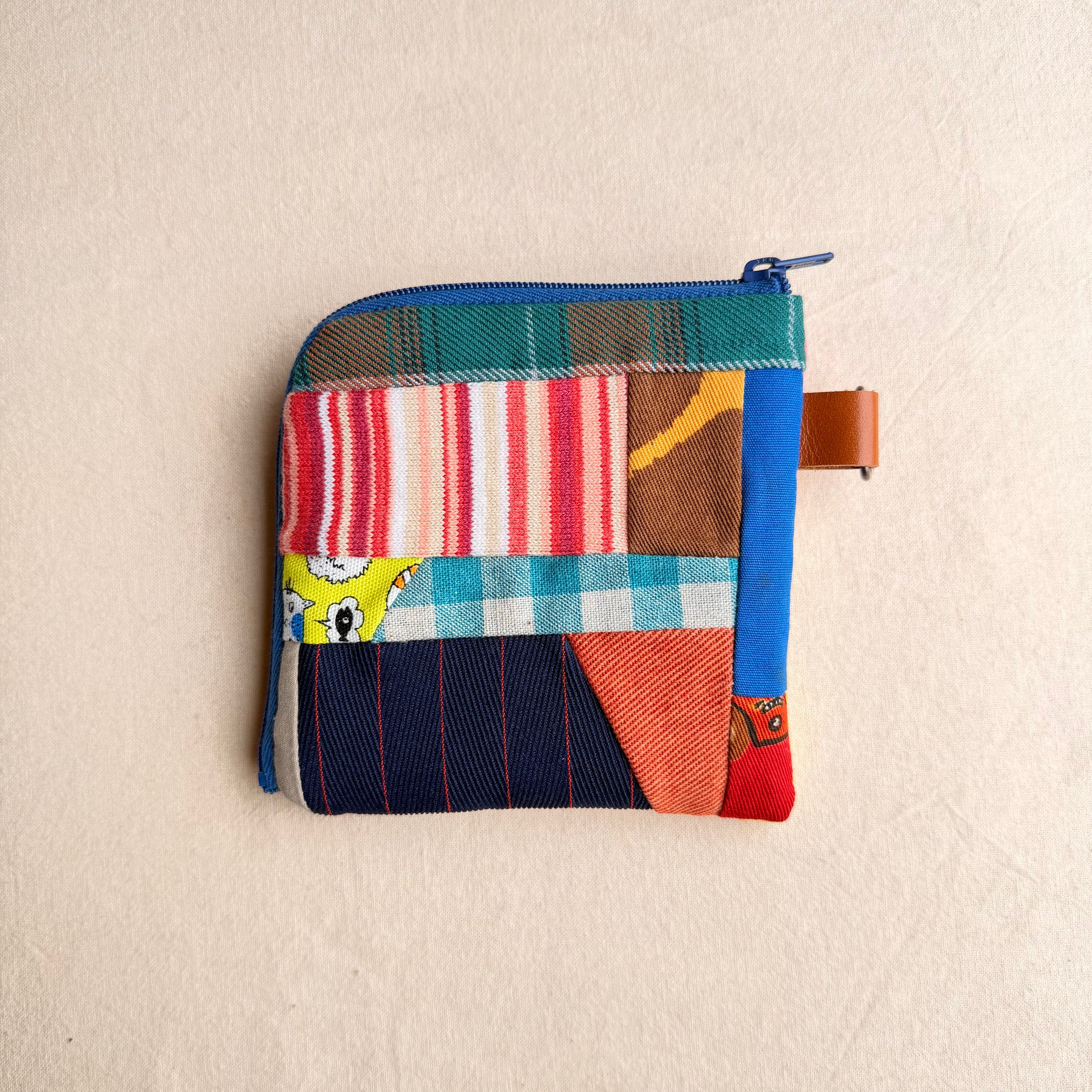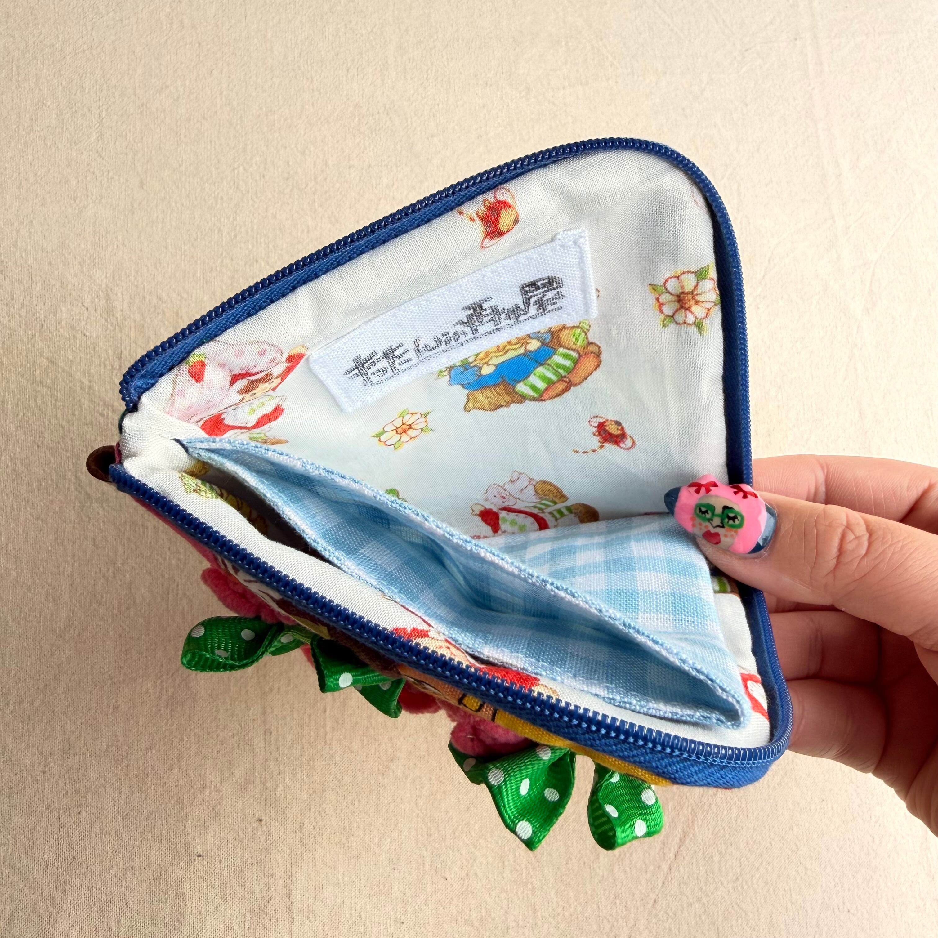 174 カオ刺繡のL字ジップお財布ポーチ 174