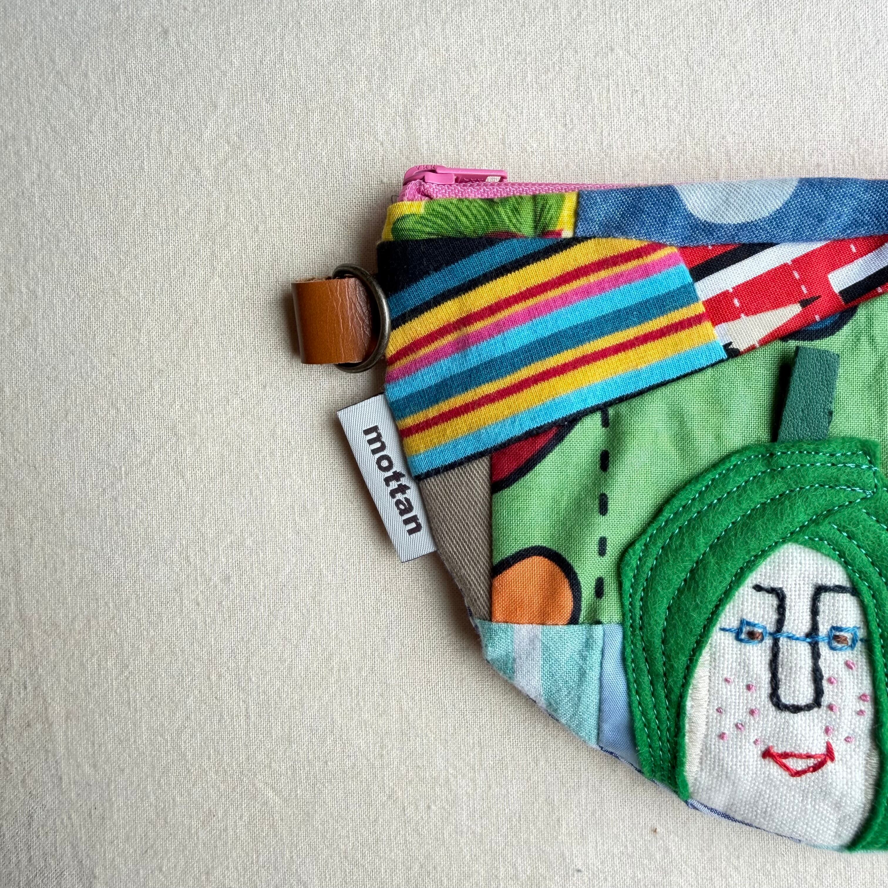 お顔刺繡が施された魅力的な半月ポーチです!個性的なデザインが、持つ人のセンスをより際立たせ、日常のファッションに遊び心をプラスします。コンパクトなサイズながら、お札や小銭、カードをしっかり収納できるジッパーポケット付き。このポーチは普段使いにも、特別なお出かけにもぴったりです!さまざまなスタイルに合わせて楽しむことができるおしゃれなアイテムです!
