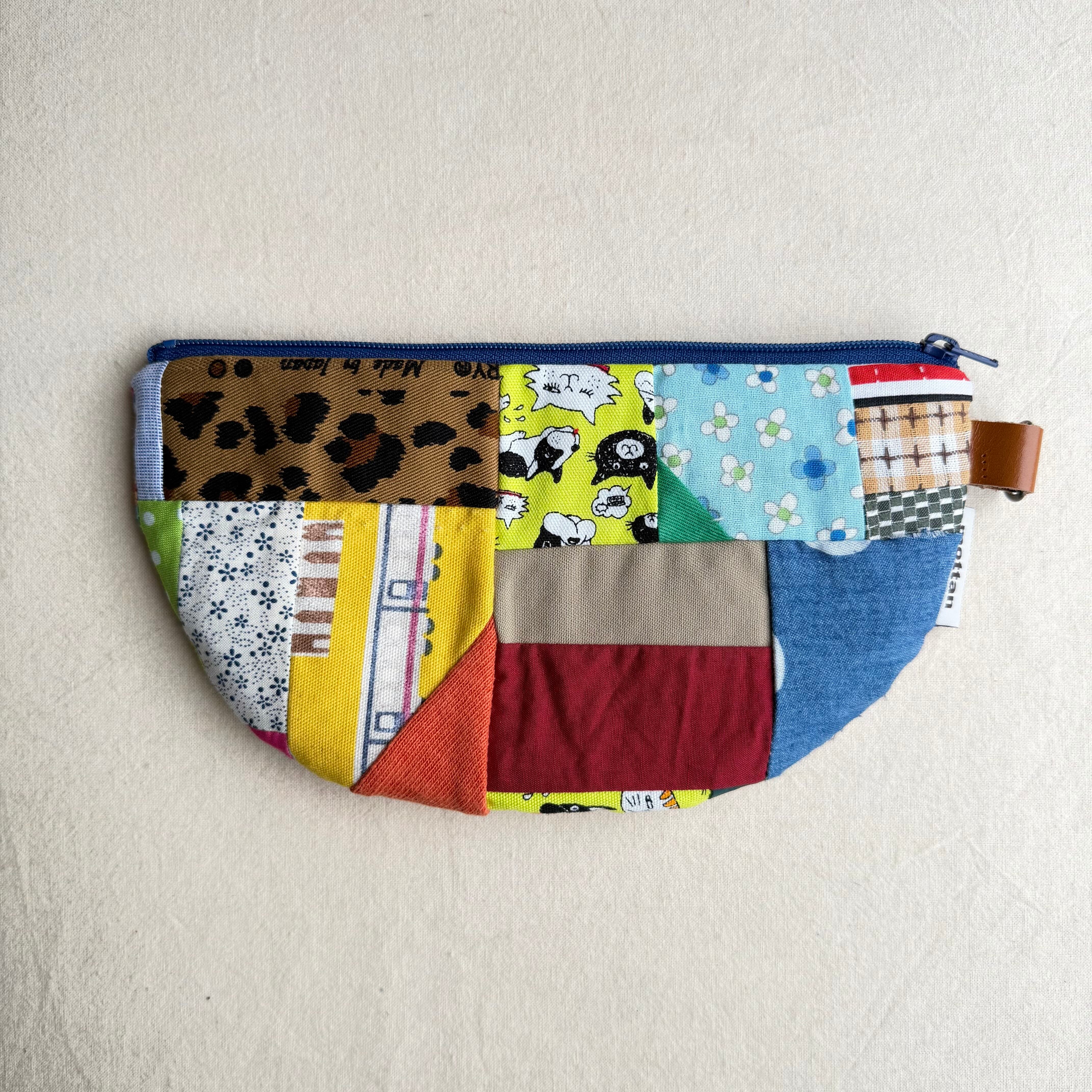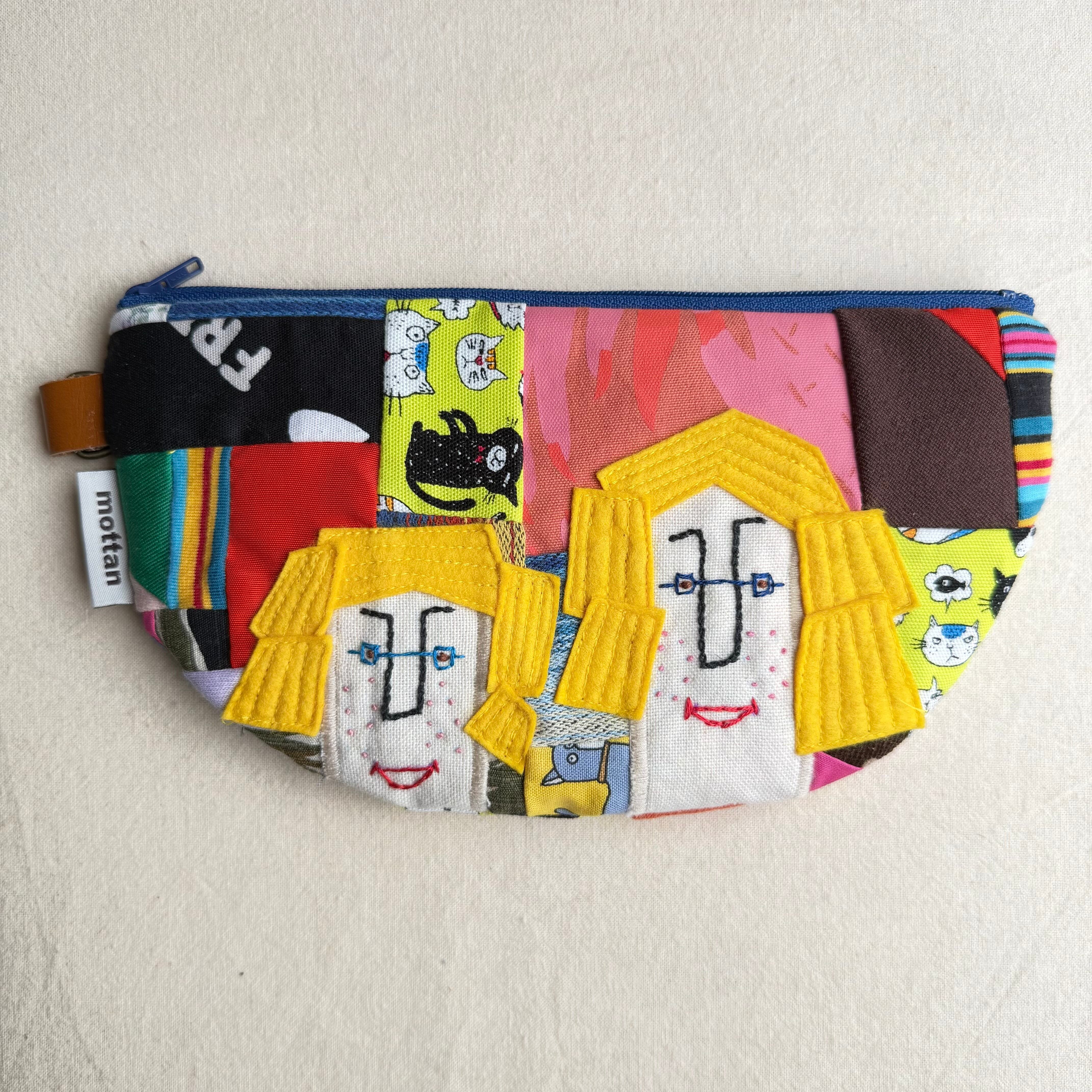 お顔刺繡の半月ポーチ