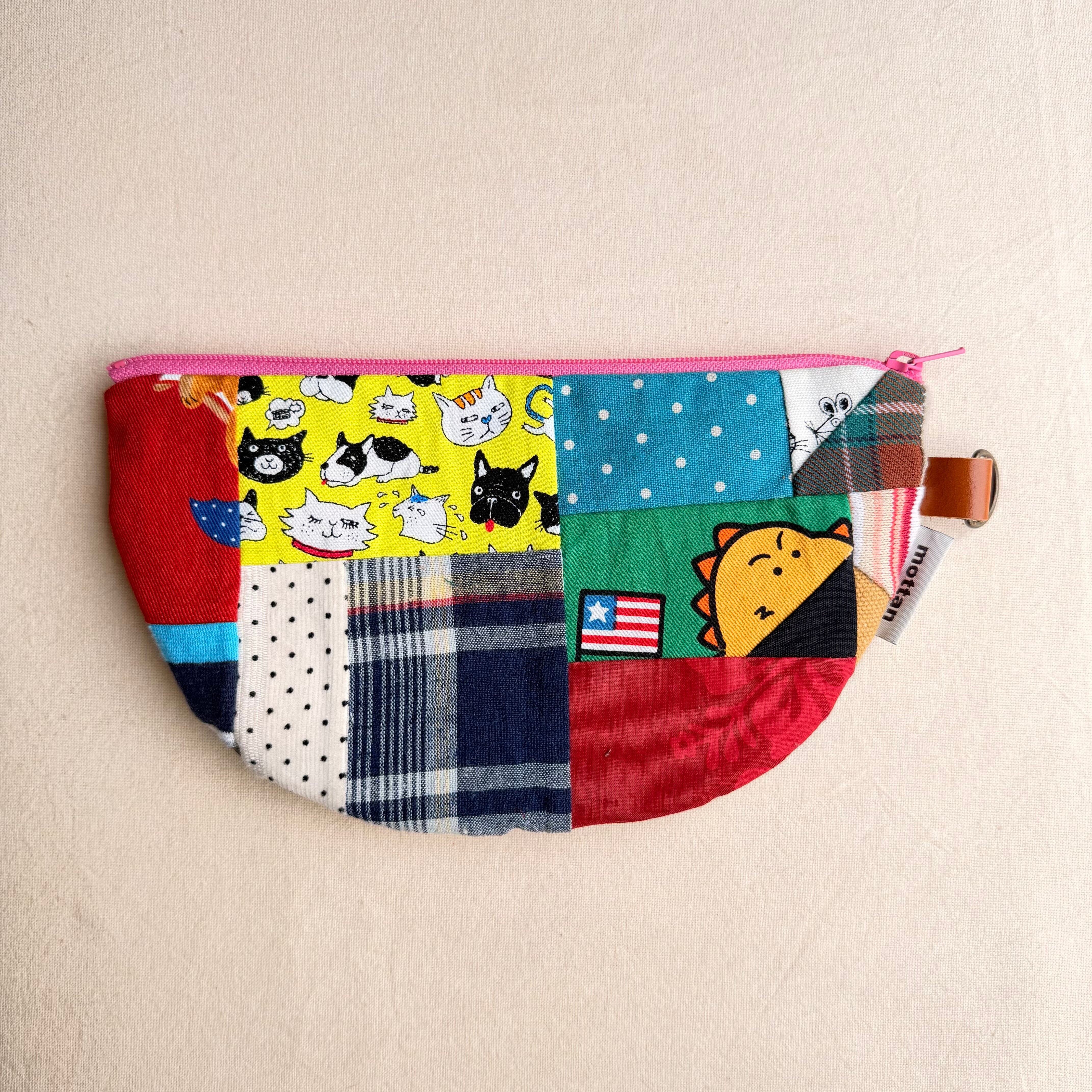 カオ刺繡の半月ポーチ
