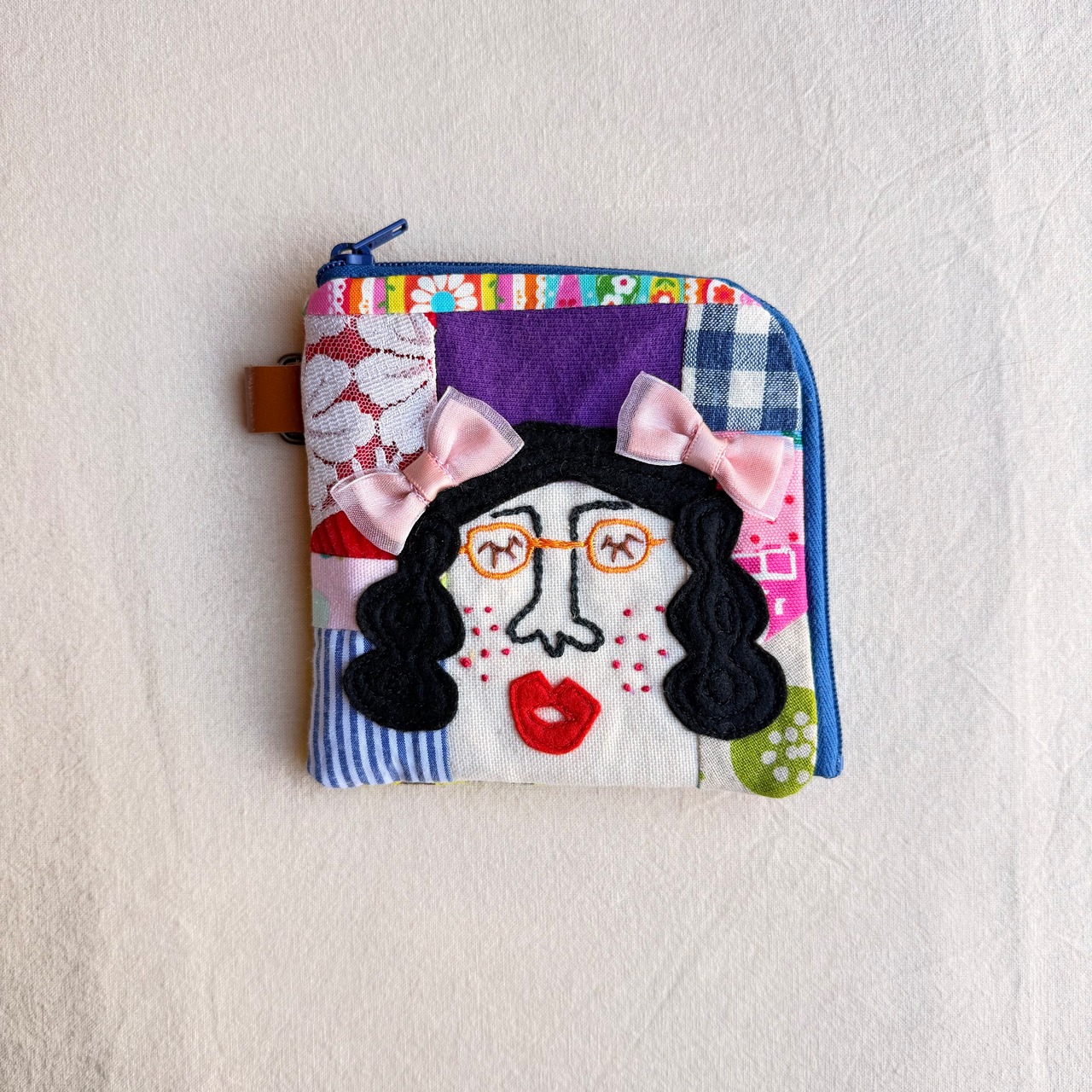 175 カオ刺繡のL字ジップお財布ポーチ 175