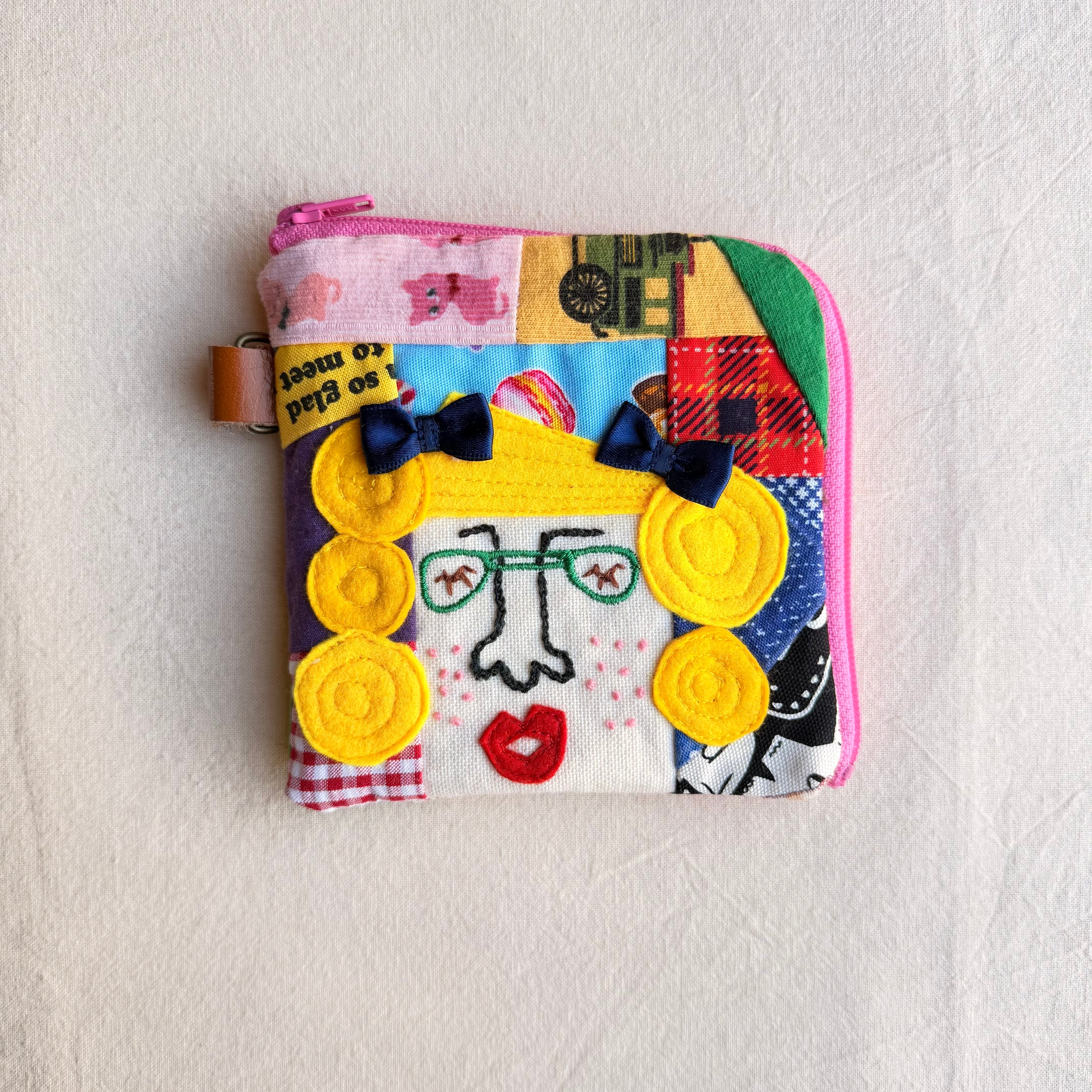 176 カオ刺繡のL字ジップお財布ポーチ 176