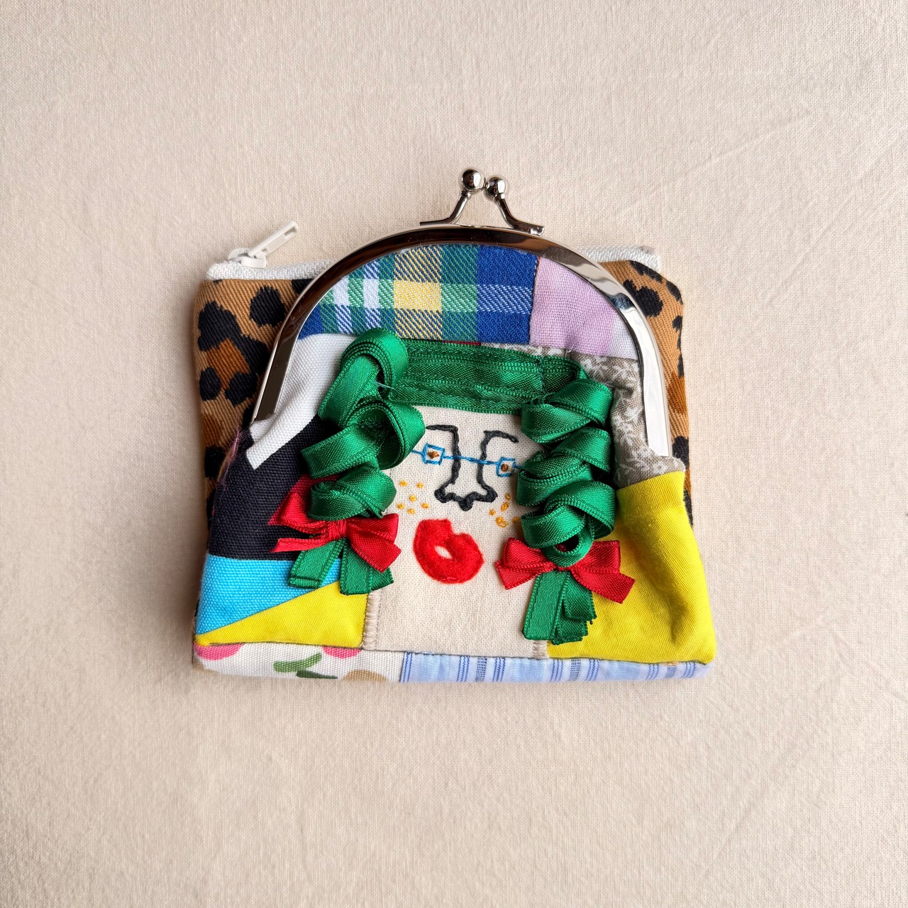 52 カオ刺繍二つ折りがま口財布 52