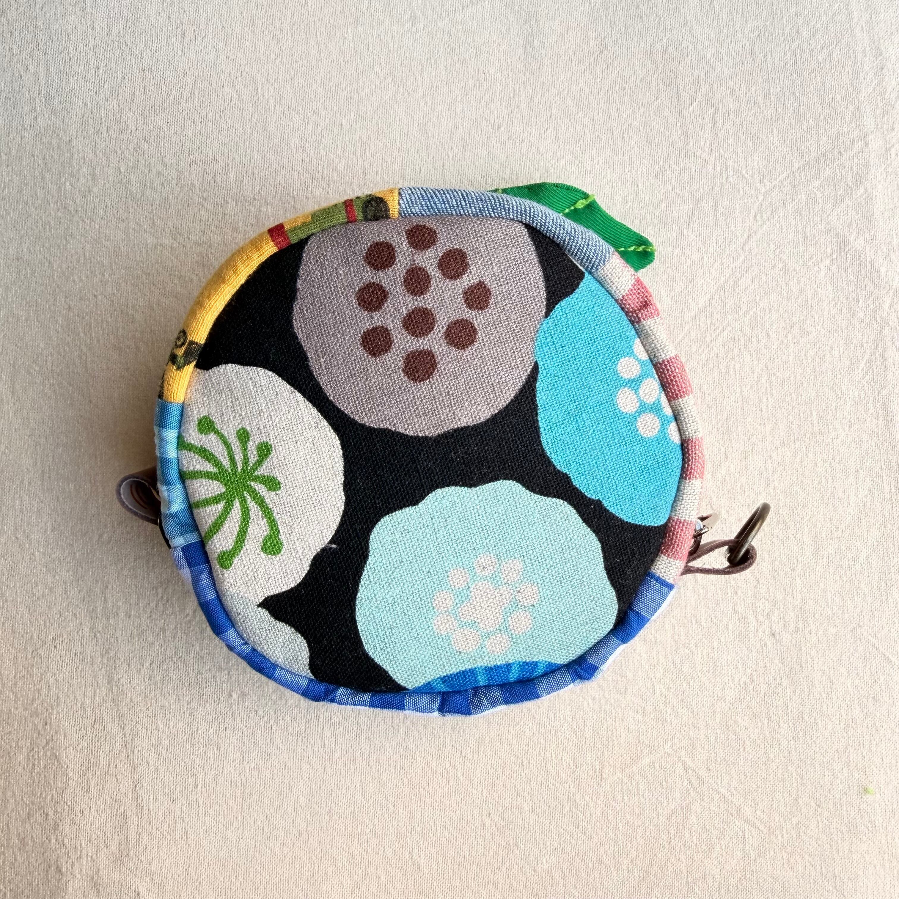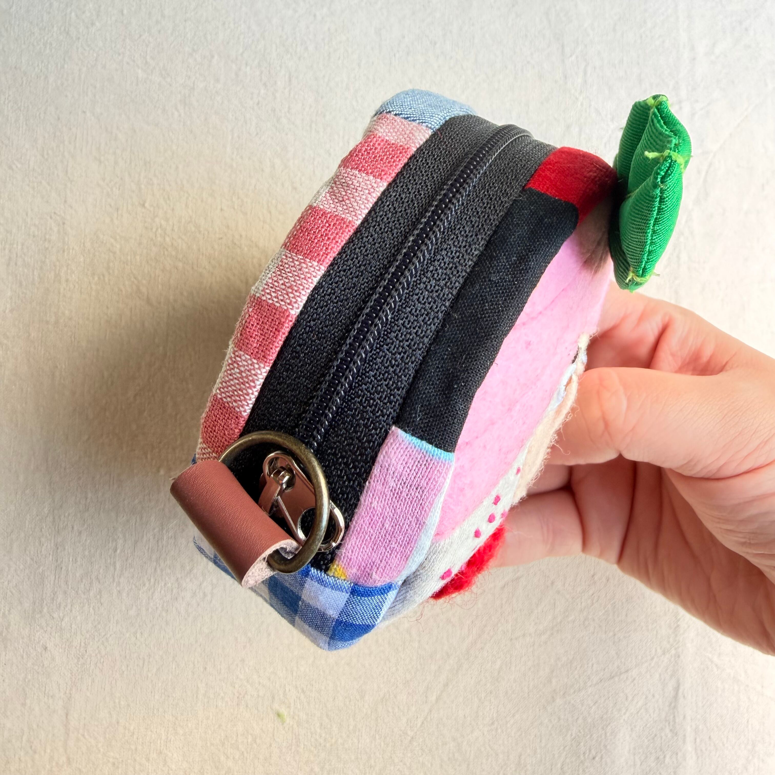 顔刺繍デザインが魅力的な丸っとポーチ。