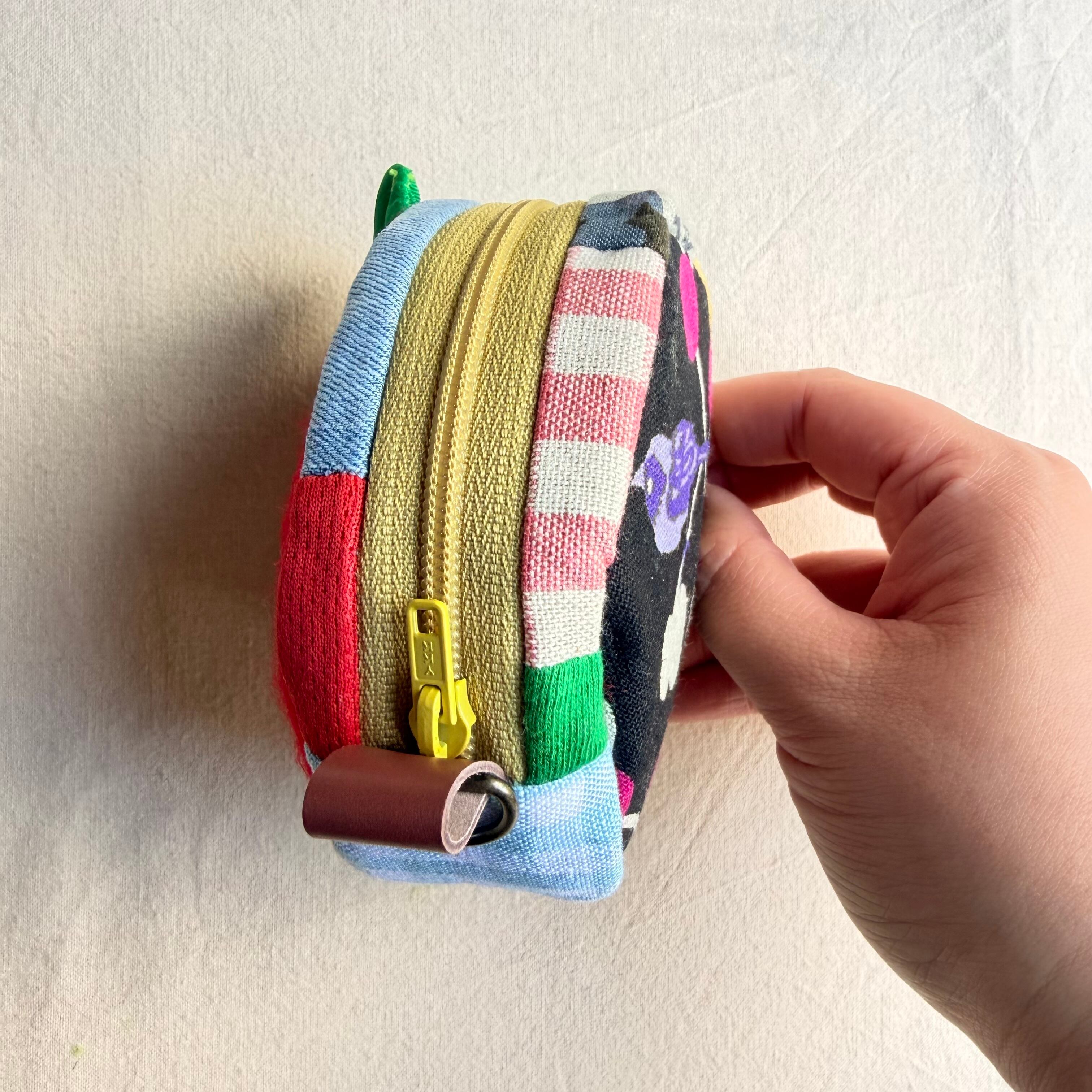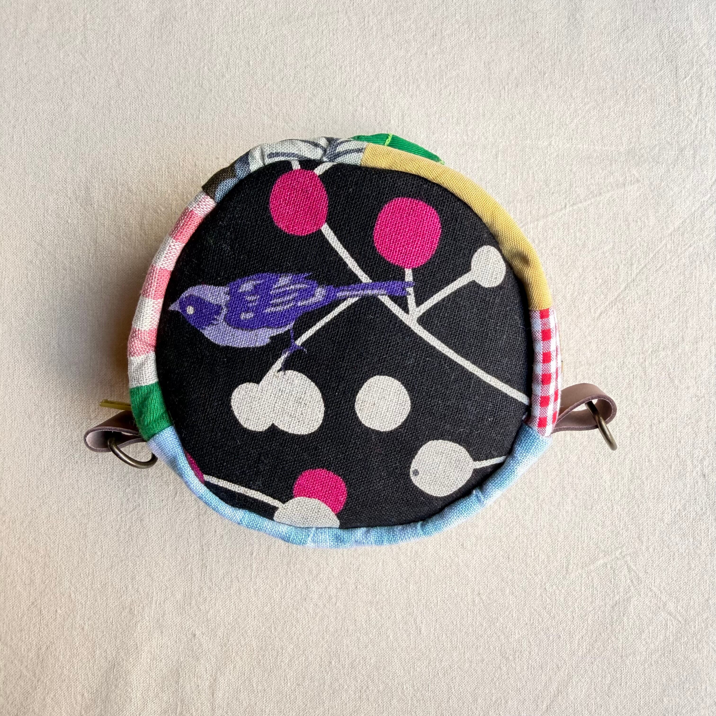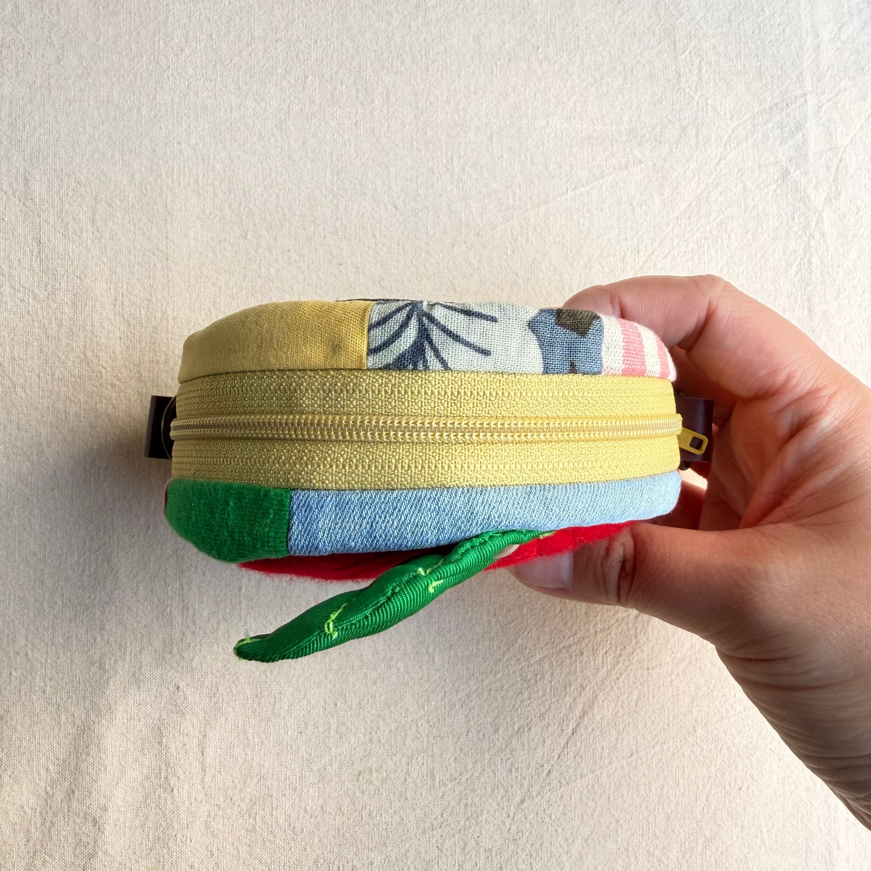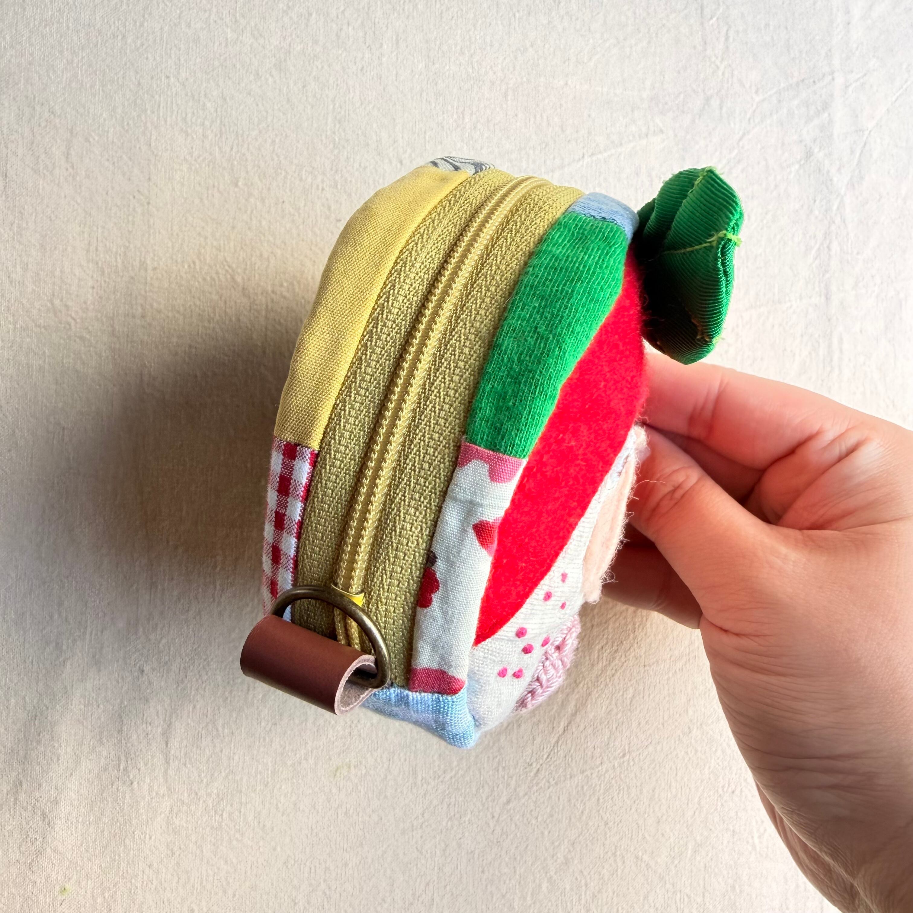 顔刺繍デザインが魅力的な丸っとポーチ。